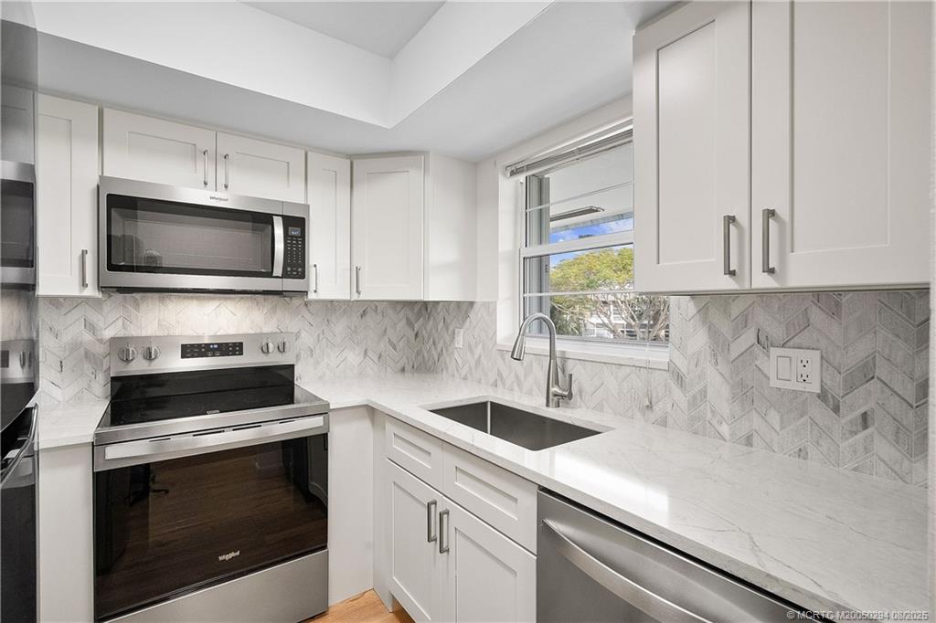 Beautiful, Light & Bright, 2nd Floor Unit Completely remodeled just waiting for your final touches. New kitchen Countertops, sink, backsplash, kitchen cabinets, appliances, water heater, updated bathrooms and showers, light fixtures, doors, ceiling fans w/remotes, window blinds, paint, NO POPCORN Ceilings, and is complete with Accordion shutters. The building has a beautiful garden view in the front and is surrounded by fruit trees and native plants and Trucks allowed up to 18 ft. The complex is well kept, 2 miles from the beach, and very close to restaurants and shopping. Association fees include H20, Sewer, Trash, Building Insurance, Cable/internet, Roof maintenance, Exterior and Common area maintenance, pool, painting, all of those things you are sick of doing. Time to relax and go to the beach, your new Home in Sunny Florida awaits. This is an Active 55+ Community.