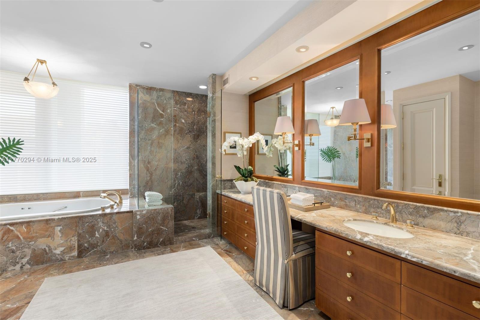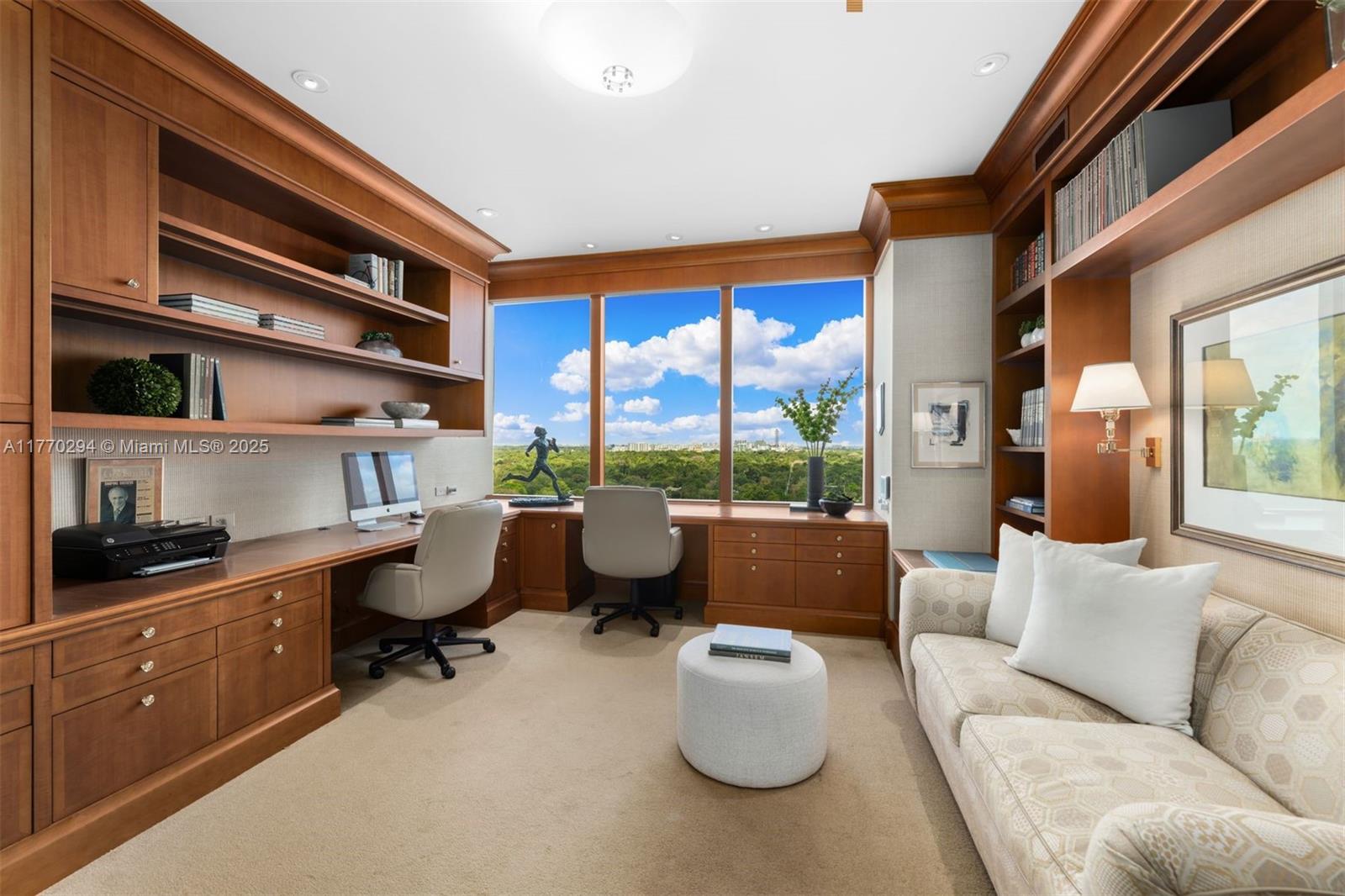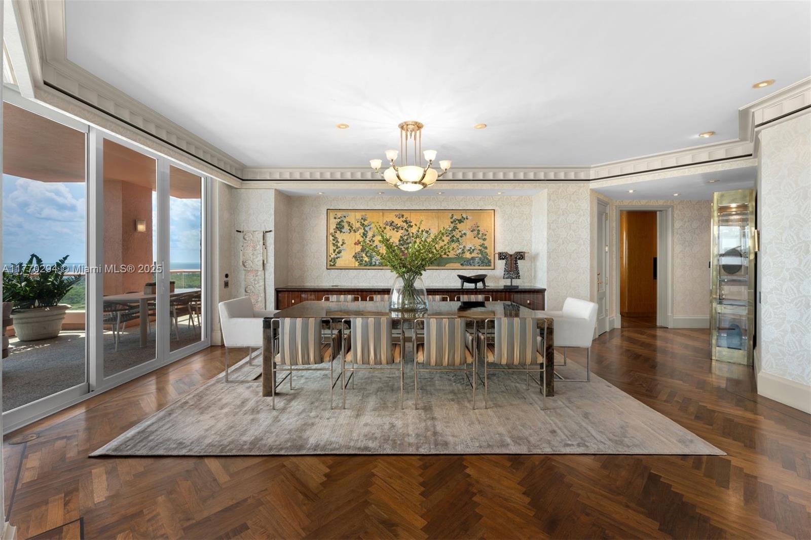 Discover refined elegance in Unit 16K of the Gables Club, a 5, 230 SF masterpiece designed by Holmes Newman. Enjoy panoramic views of Biscayne Bay from two open balconies in this 3-bedroom, 4. 5-bath residence, with an office, an additional room that can be turned into a fourth bedroom, a recreation room, a private elevator, grand foyer with custom dome ceiling, and expansive living areas adorned with herringbone wood floors. The gourmet kitchen boasts a center island, Sub-Zero and Miele appliances and a butler’s pantry, and the primary suite has dual marble bathrooms and walk-in closets. Gables Club amenities include 24-hour concierge, heated pools, spa, fitness center, tennis courts, marina, and a private restaurant. Includes two assigned parking spaces and private storage.