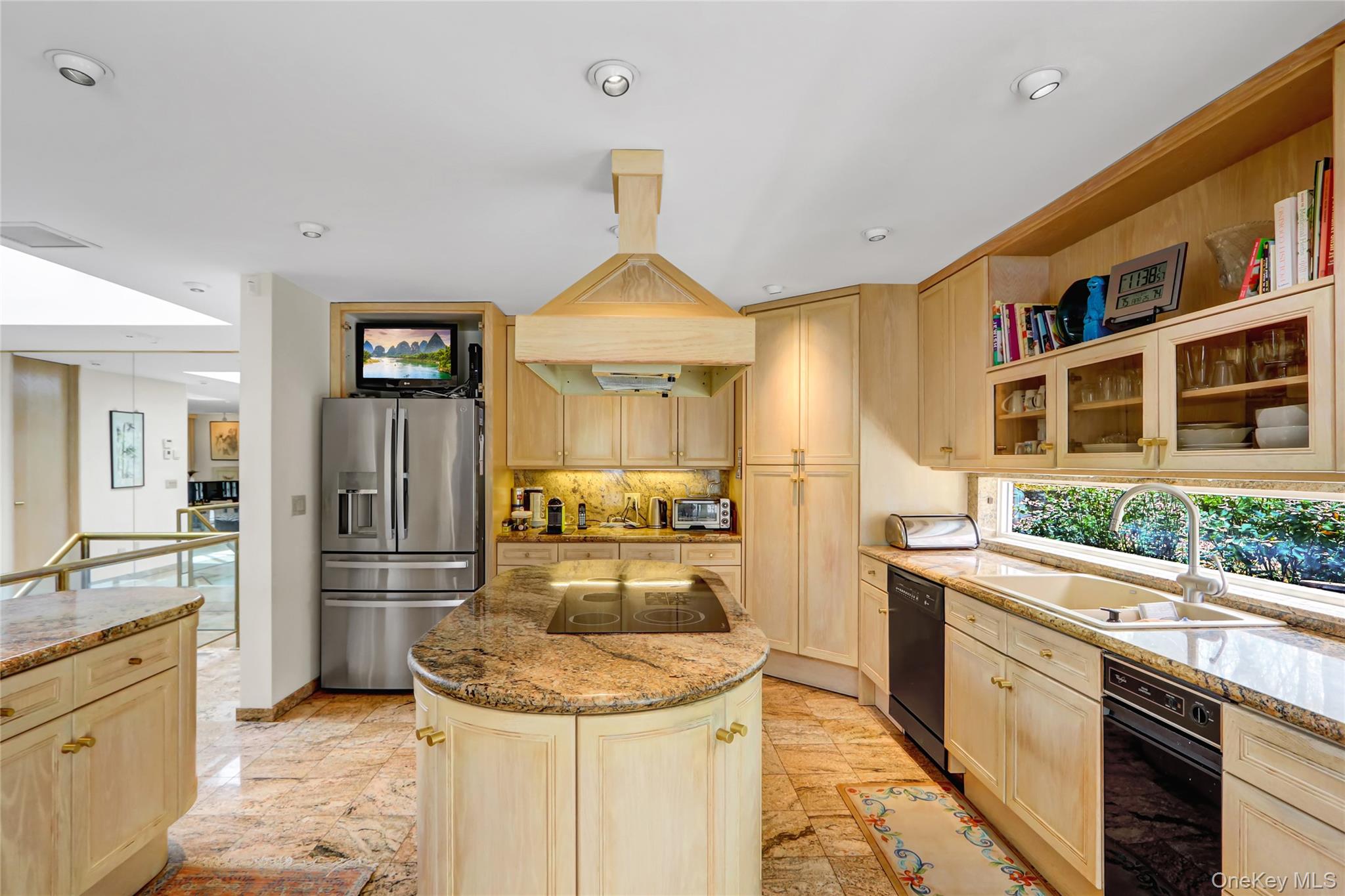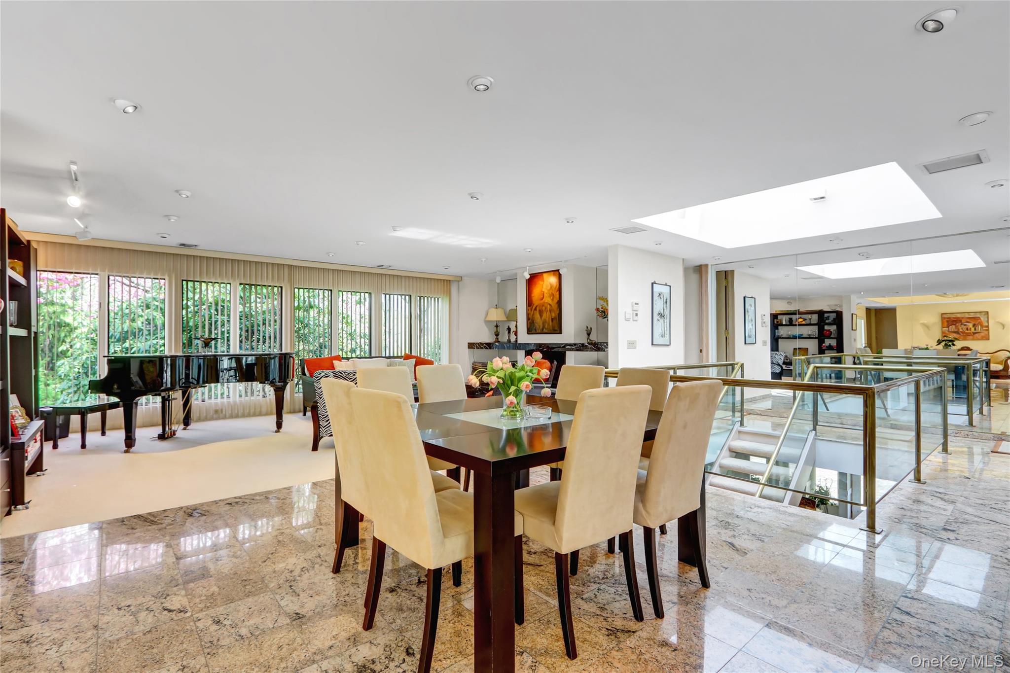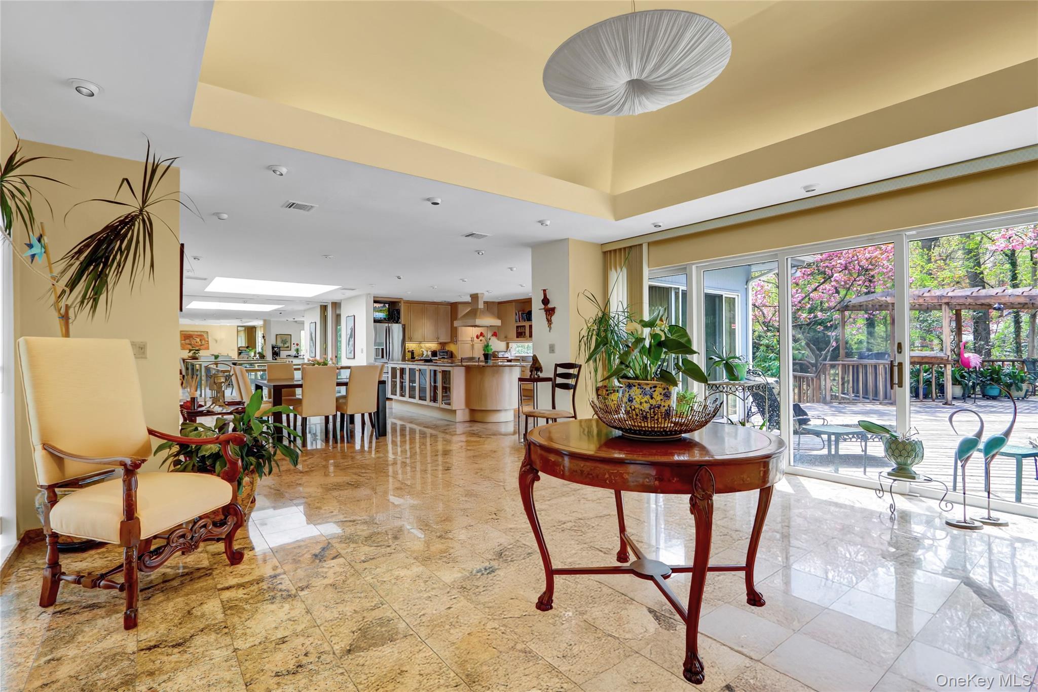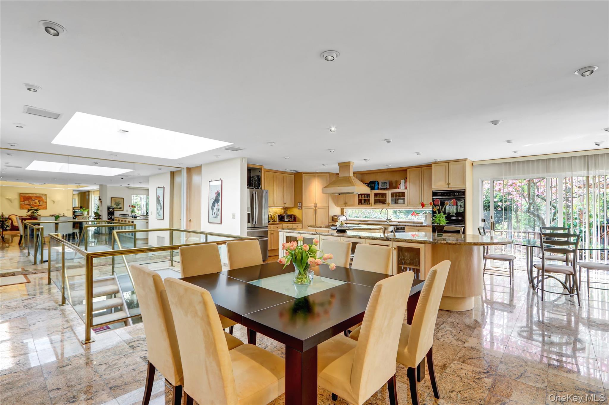 Set on 1. 2 beautifully landscaped acres in the sought-after Village of Belle Terre, this one-of-a-kind 3, 300 sq ft home features a dramatic entry with granite floors and a soaring atrium dome, leading to a sun-drenched open layout with a glass-and-brass floating staircase as its centerpiece. The custom European chef’s kitchen includes dual granite islands and opens to a 1, 200 sq ft multi-level deck with gazebo—perfect for entertaining. The main level offers a spacious great room, banquet-sized dining room with marble gas fireplace, and a luxurious primary suite with cathedral ceiling and updated marble bath. A second en-suite bedroom, powder room, and attached two-car garage complete the level. The expansive lower level includes a full butler’s kitchen, oversized media room, third en-suite bedroom, and private walk-out to a large brick patio—ideal for guests or professional use, thanks to its separate entrance. Additional highlights include a new roof, 2-zone central air, gas heating, in-ground sprinklers, and energy-efficient windows. Located just minutes from Port Jefferson Village, beaches, shops, and ferry/train access, with exclusive Belle Terre amenities such as private beaches, parks, and security. Village taxes: $3, 617. 37.