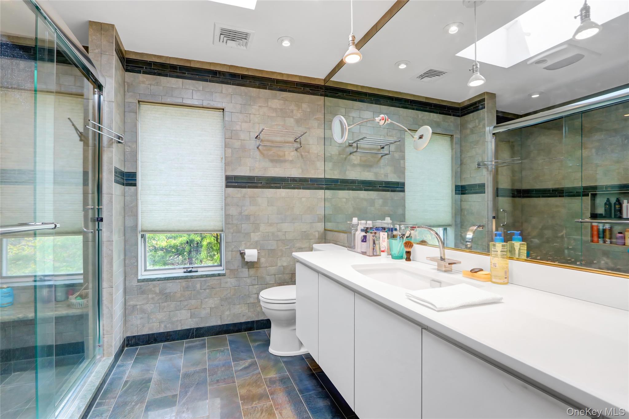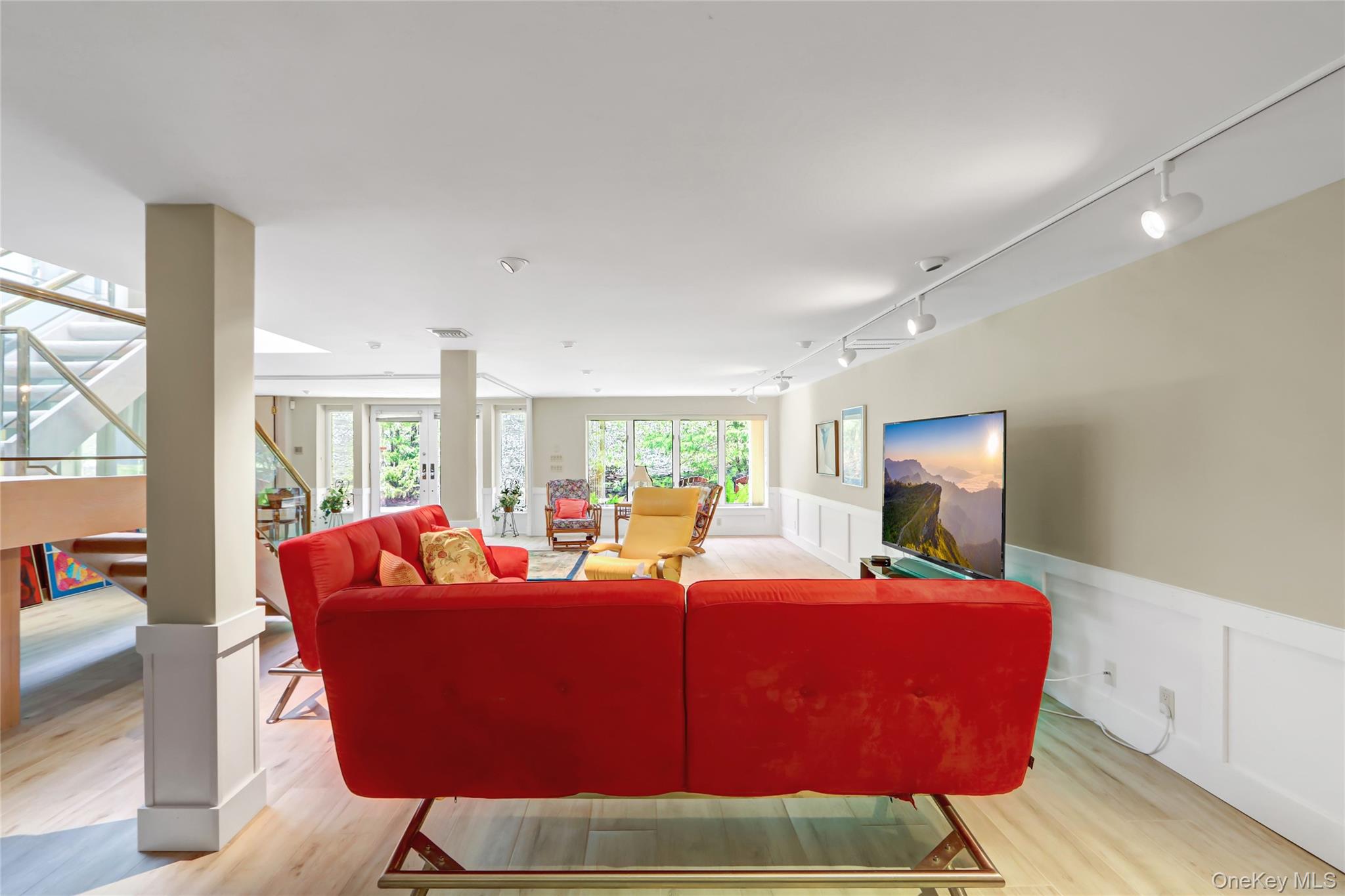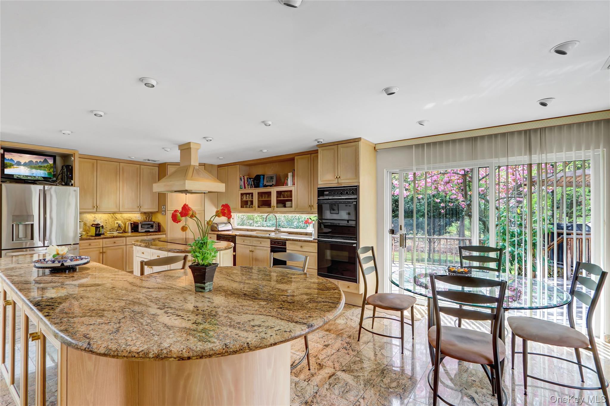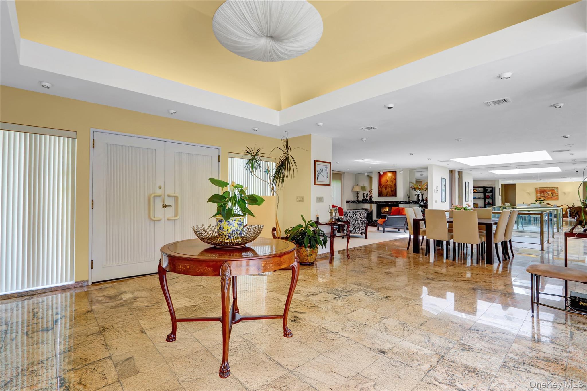 Set on 1. 2 beautifully landscaped acres in the sought-after Village of Belle Terre, this one-of-a-kind 3, 300 sq ft home features a dramatic entry with granite floors and a soaring atrium dome, leading to a sun-drenched open layout with a glass-and-brass floating staircase as its centerpiece. The custom European chef’s kitchen includes dual granite islands and opens to a 1, 200 sq ft multi-level deck with gazebo—perfect for entertaining. The main level offers a spacious great room, banquet-sized dining room with marble gas fireplace, and a luxurious primary suite with cathedral ceiling and updated marble bath. A second en-suite bedroom, powder room, and attached two-car garage complete the level. The expansive lower level includes a full butler’s kitchen, oversized media room, third en-suite bedroom, and private walk-out to a large brick patio—ideal for guests or professional use, thanks to its separate entrance. Additional highlights include a new roof, 2-zone central air, gas heating, in-ground sprinklers, and energy-efficient windows. Located just minutes from Port Jefferson Village, beaches, shops, and ferry/train access, with exclusive Belle Terre amenities such as private beaches, parks, and security. Village taxes: $3, 617. 37.