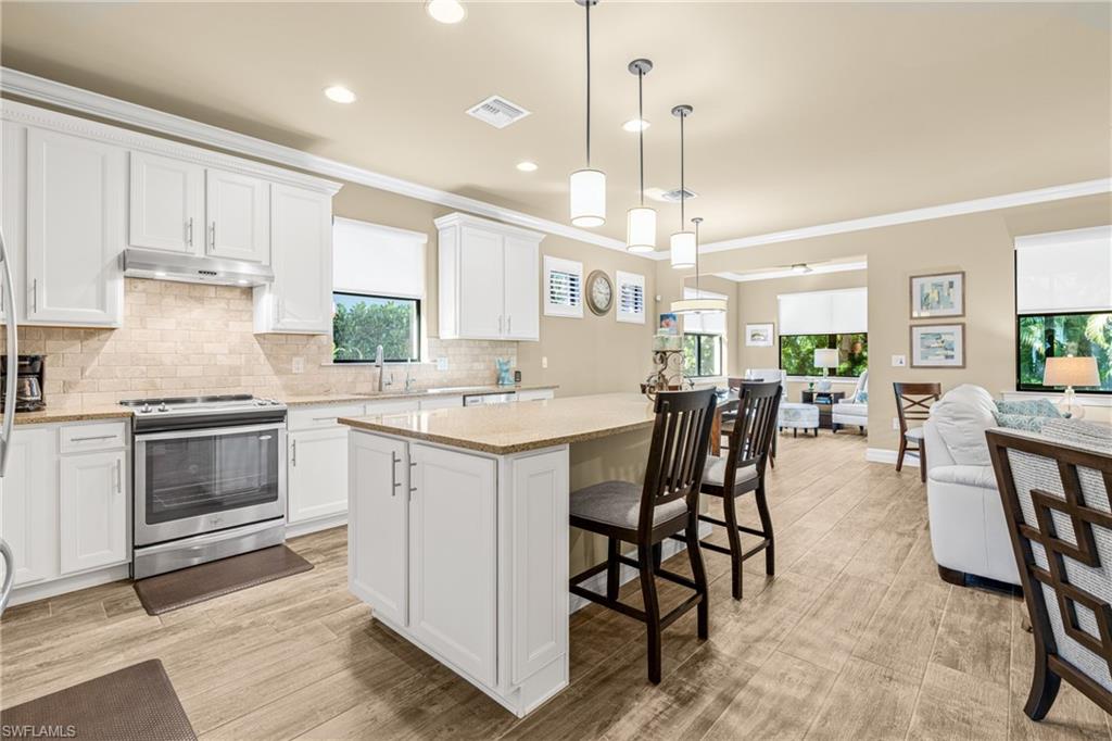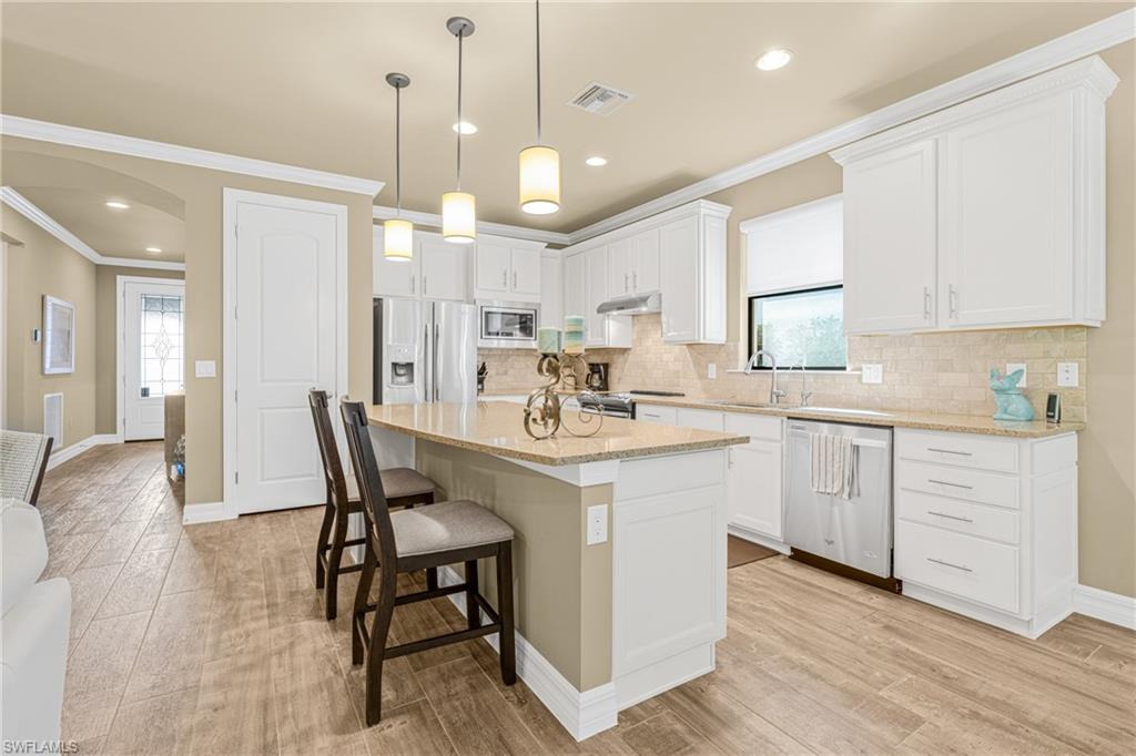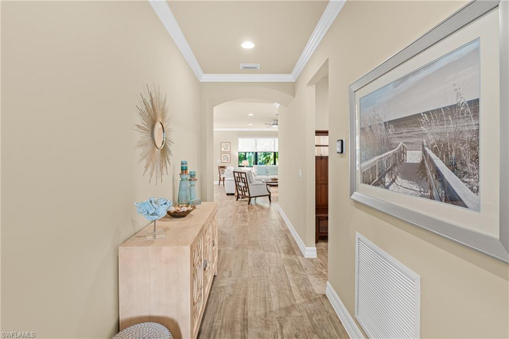 The gourmet kitchen is a showstopper, featuring a striking central island with quartz countertops, luxurious cabinetry, high-end stainless steel appliances, beautiful backsplash, and modern lighting that enhances the home's elegance throughout. The living room immediately impresses by its furnishings, decor, high end blinds and smooth flow to the kitchen and formal dining area, again boasting the most exquisite furnishings and lighting accents. Luxury tile flooring throughout, complemented by carefully curated furnishings and abundant natural light. Custom laundry room with high end appliances and cabinetry. Retreat to the serene "master suite" that already stands out by its amazing lighting fixtures, beautiful tray ceilings, design and comfort, completed with a spa-like ensuite featuring a gorgeous shower, dual sinks, and a spacious walk-in closet. A private water closet enhances comfort and privacy. This exceptional home is loaded with upgrades, please see the attached upgrade sheet for a full list. All impact glass windows and doors add to comfort. ***** AMENITIES *****