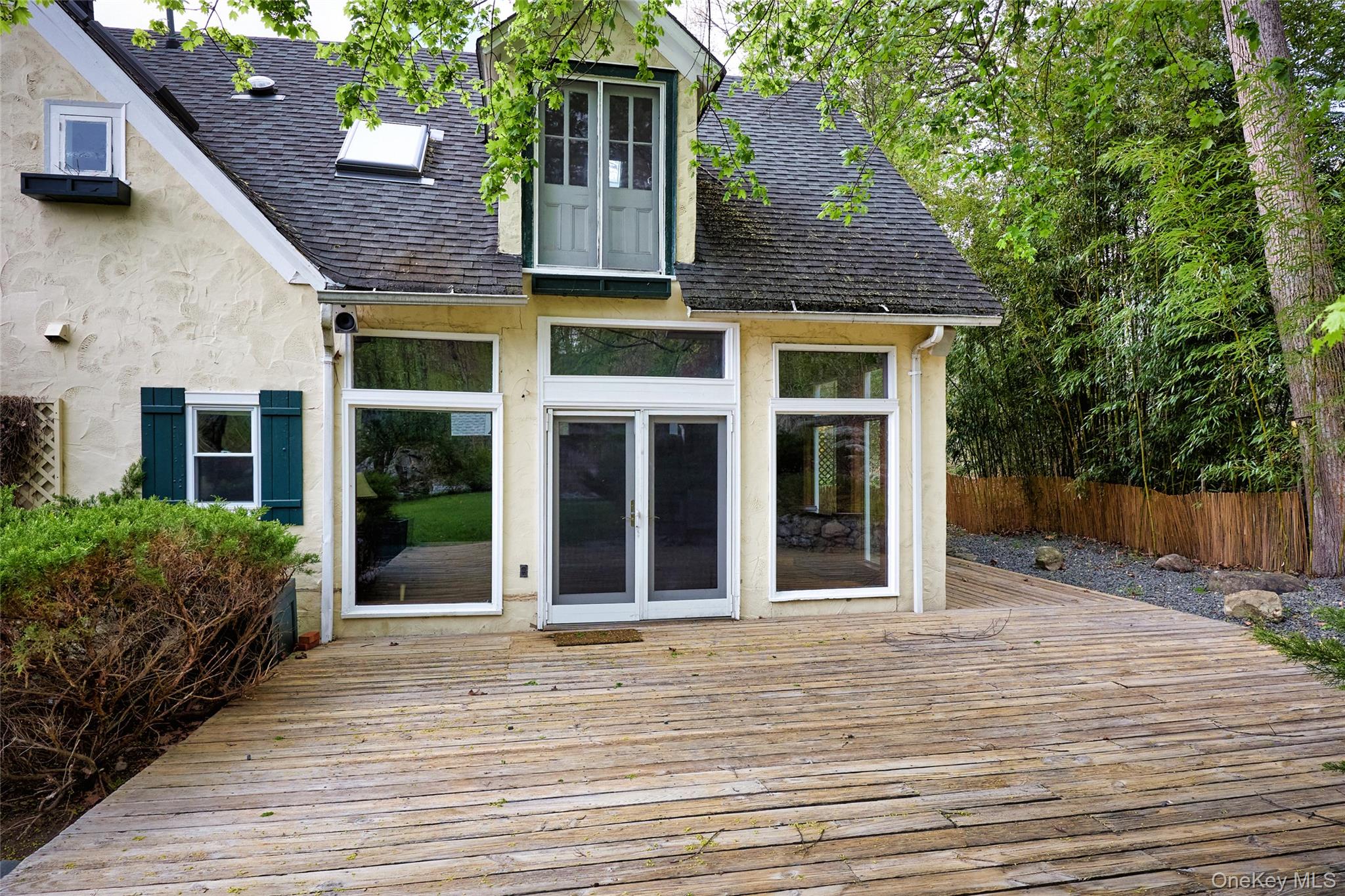 Historic 1890 carriage house set back on a corner lot with lush lawn, mature plantings, trees and other natural fencing. This charming nearly 2, 400 sq. ft. cottage boasts perfect combination of old-world charm with great high ceilings and open space and flow for current desired lifestyle. Exceptional wainscot paneling, original stable wood and wrought iron door, posts and other details transports you back in time. This main level features huge Living Room wood burning fireplace over size window, Dining area, large Kitchen updated stainless steel appliances open family area with wall of floor to ceiling windows and double door to patio and beautiful wide planked flooring throughout. Upper-level features Primary bedroom with high ceiling, ceiling fan and hayloft window starting on the floor open to lawn and deck. Primary bath shower and tub ensuite. Additional 3 bedrooms and full bath also tub and shower. Ideal downsize or weekend retreat. Tuxedo Park is a private 24/7 gate guarded community within an hour's drive to mid-town Manhattan. The village offers swimming, boating, biking, fishing and endless hiking at your doorstep.