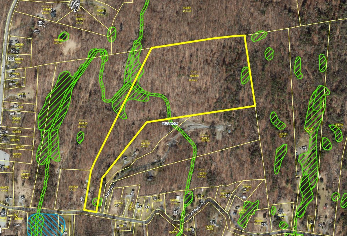 33. 56 and 43 acres (includes parcel# 104952) totaling to 76. 56 acres in the town of Hyde Park. Some engineering already done, possible 26 lot subdivision with town water.