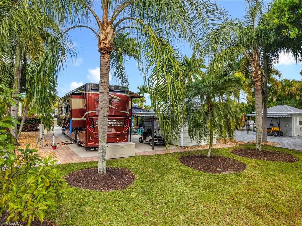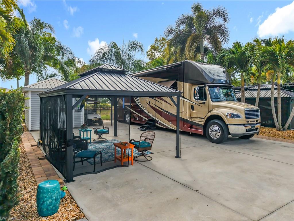 Welcome to your own piece of paradise!! D3 is a low maintenance RV lot that faces a large green common area, that offers a comfortable space for entertaining. The air-conditioned accessory building is finished with shower, toilet, sink, storage and is plumbed for a washer and dryer with an abundance of storage. The additional 7 by 11 awning gives you extra shade on those hot sunny days. The newly painted gazebo with new screens and curtains lets you enjoy the sunny outdoors comfortably. Conveniently located near the Town Center that offers pool, hot tub, shuffleboard, tennis, pickleball, great room, catering kitchen, card room, community room, and much more. The Welcome Center offers an additional card/community room, laundry, library, day spa, and gym. This Luxury ownership community is centrally located to everything that South West Florida has to offer.