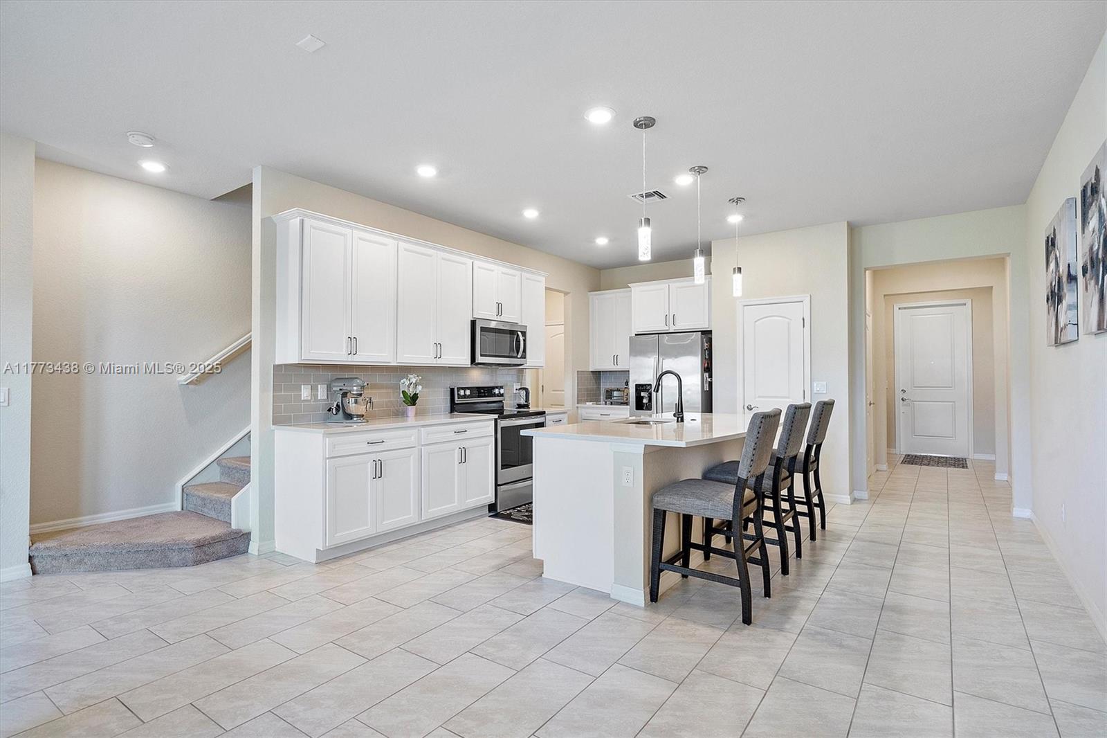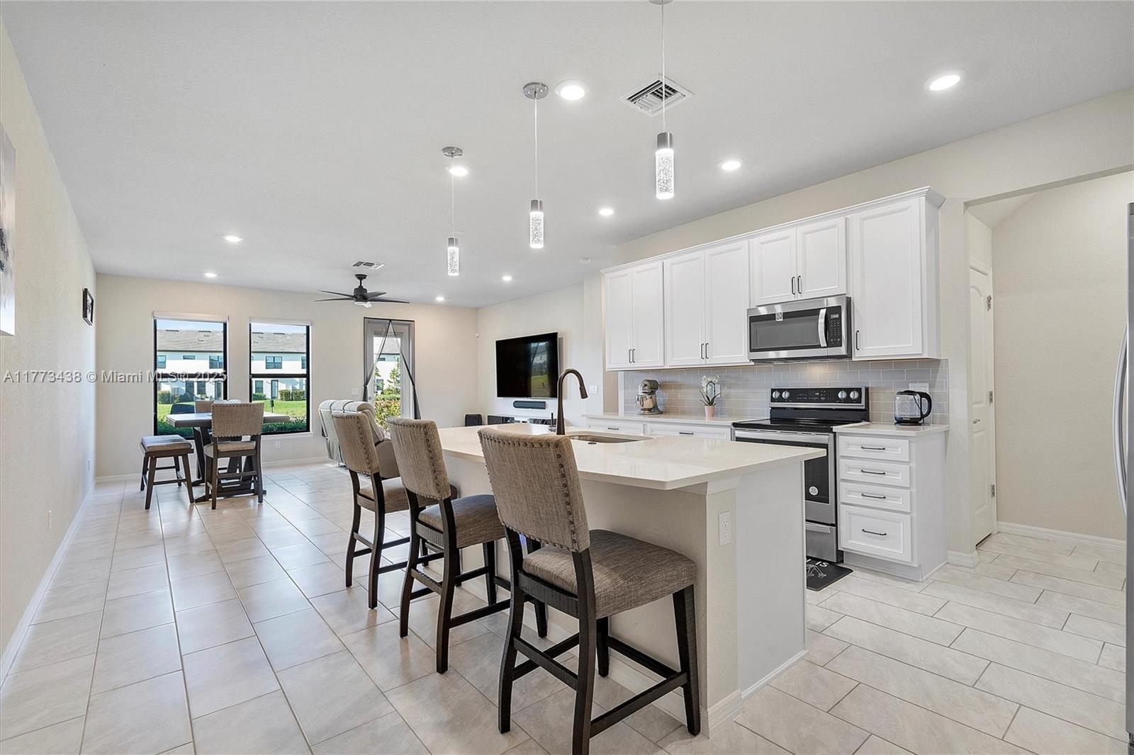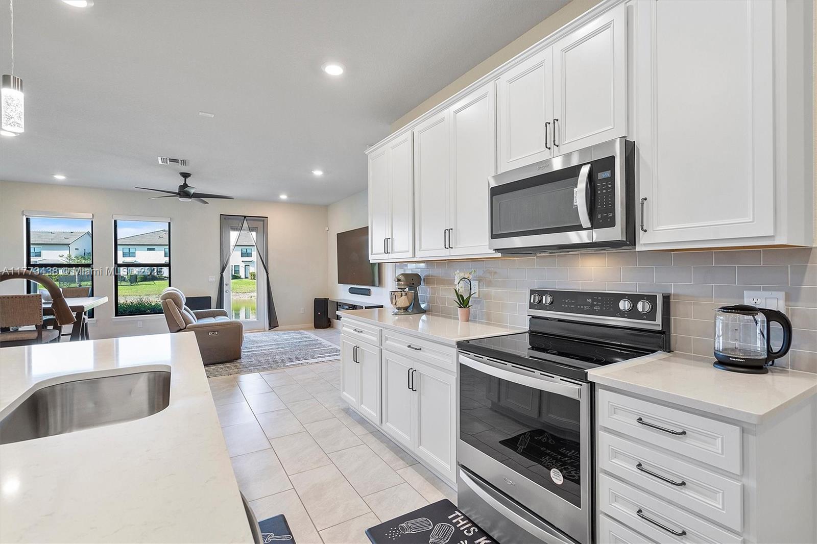 Located in the coveted Oak Tree gated community, this 3BR, 2. 5BA lakefront townhome offers modern living at its finest. Built in 2022, the home features a sleek open layout, impact windows/doors, and a private fenced yard with serene lake views. The gourmet kitchen includes quartz countertops and stainless steel Whirlpool appliances, while the spacious primary suite offers a walk-in closet and spa-inspired bath. Enjoy resort-style amenities: heated pool, gym, pickleball courts, clubhouse, and dog park.