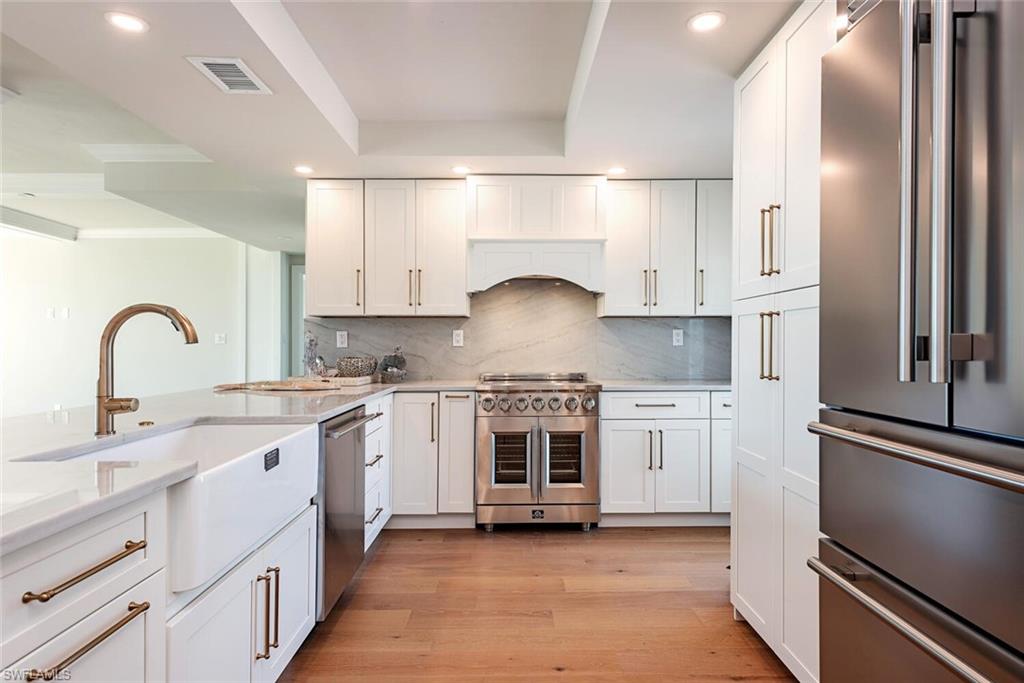 Available Annually ($8500/month) and Seasonally ($16, 000/month). Enjoy luxury coastal living in this recently renovated top-floor, 2-bedroom, 3-bathroom end-unit residence with spectacular views of Venetian Bay, located in the sought-after Park Shore community. Thoughtfully redesigned with high-end finishes throughout, this unfurnished annual rental offers a rare opportunity to live in elegance and comfort. The spacious living room features stunning European wide plank white oak flooring and two floor-to-ceiling windows that fill the space with natural light. The bright, open-concept kitchen is a chef’s dream—equipped with premium appliances, Quartzite countertops, custom cabinetry, a wall oven, generous storage, and convenient counter seating. Retreat to the expansive primary suite, where a private lanai invites the outdoors in, creating the perfect space to unwind. The luxurious en-suite bathroom features dual vanities and a walk-in shower. A sizable guest bedroom with an en-suite bath and walk-in shower offers comfort and privacy for visitors. As a resident, you’ll have exclusive access to the Park Shore Association Beach Park—gated, guarded, and one of Naples' most desirable beachfront experiences. Colony Gardens boasts nearly 400 feet of west-facing bayfront, a serene community pool, and an unbeatable location between the Ritz-Carlton and downtown Naples. Live exceptionally in Park Shore.