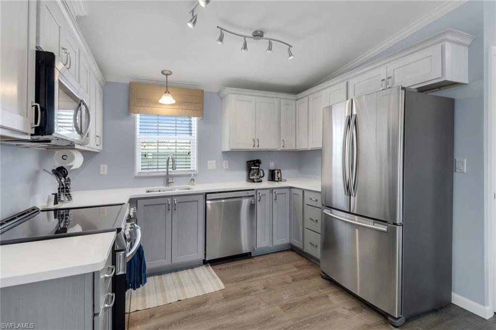 Come see this beautiful property with Gulf access water view and turnkey furnished. This unit has been fully updated. All new appliances (except frig 2018). New flooring, washer and dryer. AC. Hot water tank 2017, roof in 2019. Close to all amenities pool, clubhouse, shuffleboard and a boat launch leading to Estero Bay and the Gulf of America. Large glass porch adds an extra living space. Very tastefully decorated. Relax and enjoy the Florida lifestyle in your new home.