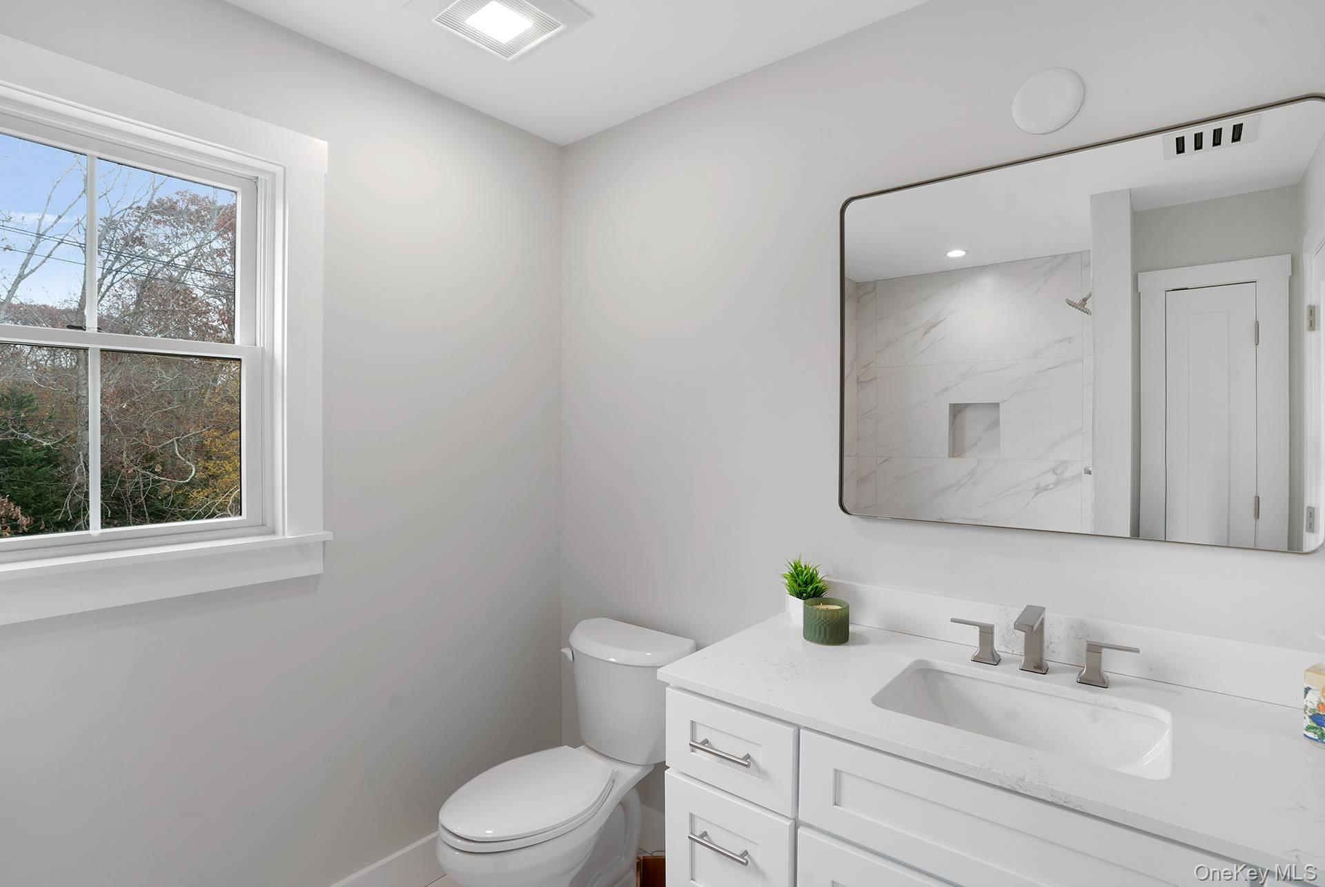 Welcome to a brand-new, meticulously crafted home in the heart of Hampton Bays. This spacious 4-bedroom, 2-full and one-half bathroom residence offers the perfect blend of modern elegance, comfort and style. Sited in a prime location, on a private drive, south of Montauk Highway near all the desired amenities. The open floor plan with spacious living areas feature plenty of natural light and hardwood floors throughout. A chef-inspired eat-in kitchen is fully equipped with stainless steel appliances, center island, and sleek quartz countertops. The delightful mahogany front porch, 2-car garage and full basement with egress complete this brand-new offering. Ready for immediate occupancy.