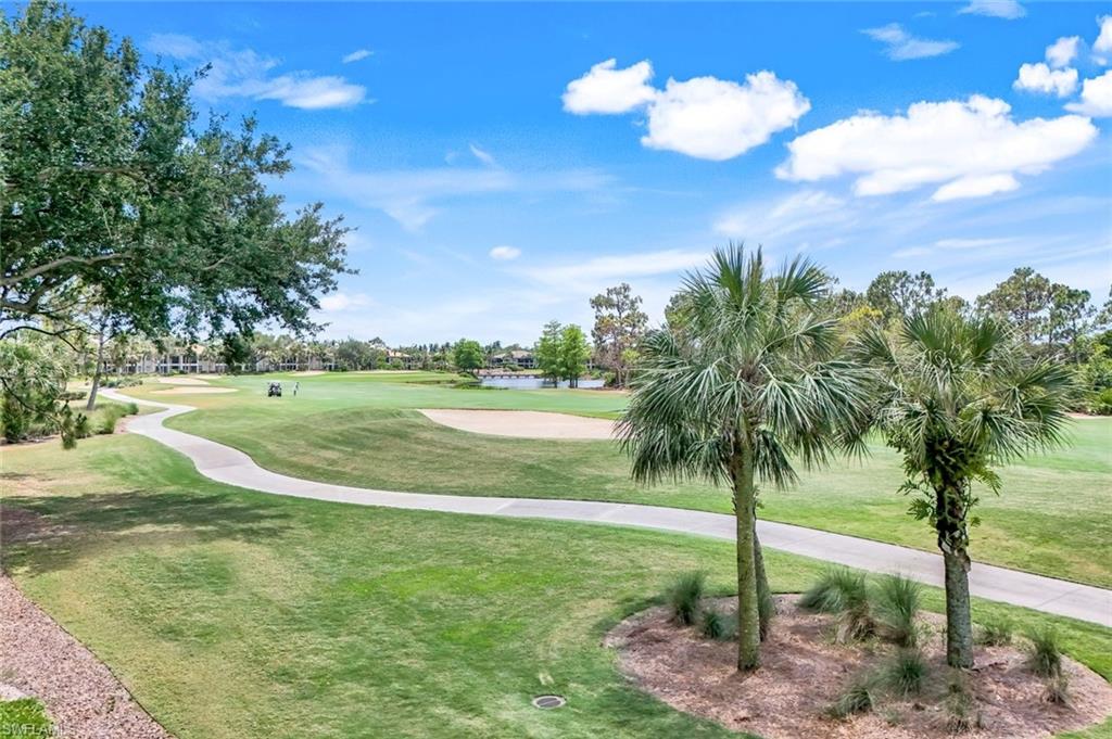 Bright southwest facing, top floor end unit home with an incredible panoramic view of golf, lake and quaint wooden bridge in the distance.