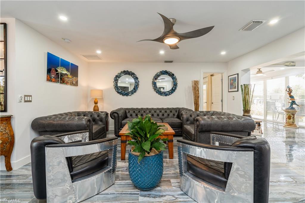 Welcome to your slice of paradise located in the heart of vibrant Marco Island. This beautifully maintained 3-bedroom, 2-bath home offers the perfect blend of classic Florida charm and modern comfort. From the moment you step inside, you'll appreciate the bright, open floor plan that invites natural light to flow throughout the living spaces — a timeless design that feels just right. Boaters, take notice: this property offers IDEAL DIRECT BOATING ACCESS to the Gulf of Mexico, located just one canal from the Marco River! With no bridges to delay your adventures, you'll be out on open waters in minutes — fishing, exploring, or chasing the sunset. Inside, the home features volume ceilings, neutral porcelain tile flooring throughout, impact windows, and a newer roof for peace of mind. The kitchen and main living areas are designed for easy entertaining, while the bedrooms provide a quiet retreat after a day on the water. Enjoy a spacious backyard framed by tropical landscaping, with plenty of room to add a pool or create your private oasis. An oversized two-car garage and a large driveway offer ample parking and storage space. All of this is set in a quiet, desirable neighborhood with no HOA fees, giving you the freedom to enjoy true island living without unnecessary restrictions.