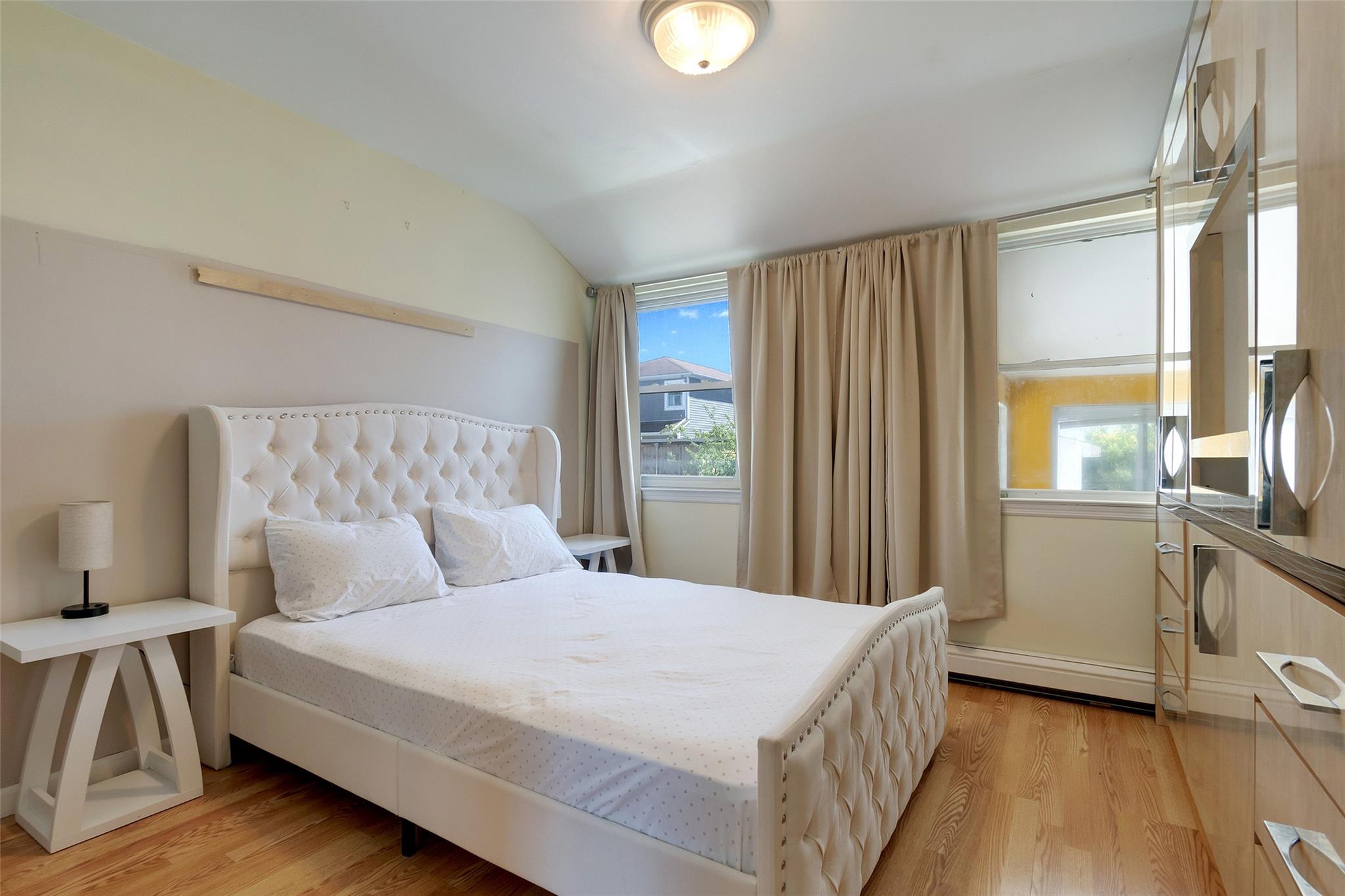 Welcome to 62-35 Burchell Avenue, a charming corner property located in the vibrant Arverne community of Rockaway Beach. This well-maintained two-family home offers a spacious 3-bedroom, 2-bathroom owner's unit on the first floor, featuring built-in closets throughout, central air conditioning, a private en-suite master bedroom, and a bright sunroom that leads to a large backyard complete with a shed, a functioning sprinkler system for the lawn, and gated parking for two cars. The home is equipped with solar panels, helping reduce electricity costs for the first floor. The second-floor unit includes 2 generously sized bedrooms and 1 full bathroom, along with its own kitchen, dining room, and living room—perfect for rental income or extended family living. This property presents a wonderful opportunity for both homeownership with income potential or as an investment. Professional photos coming soon!