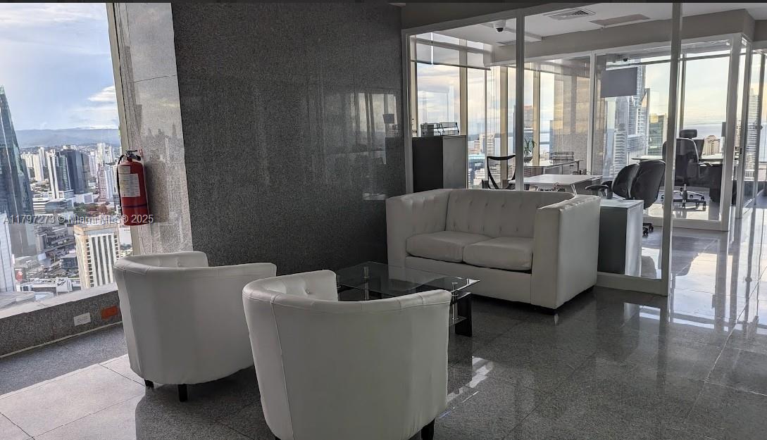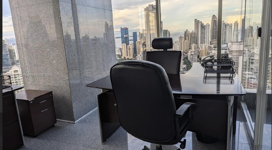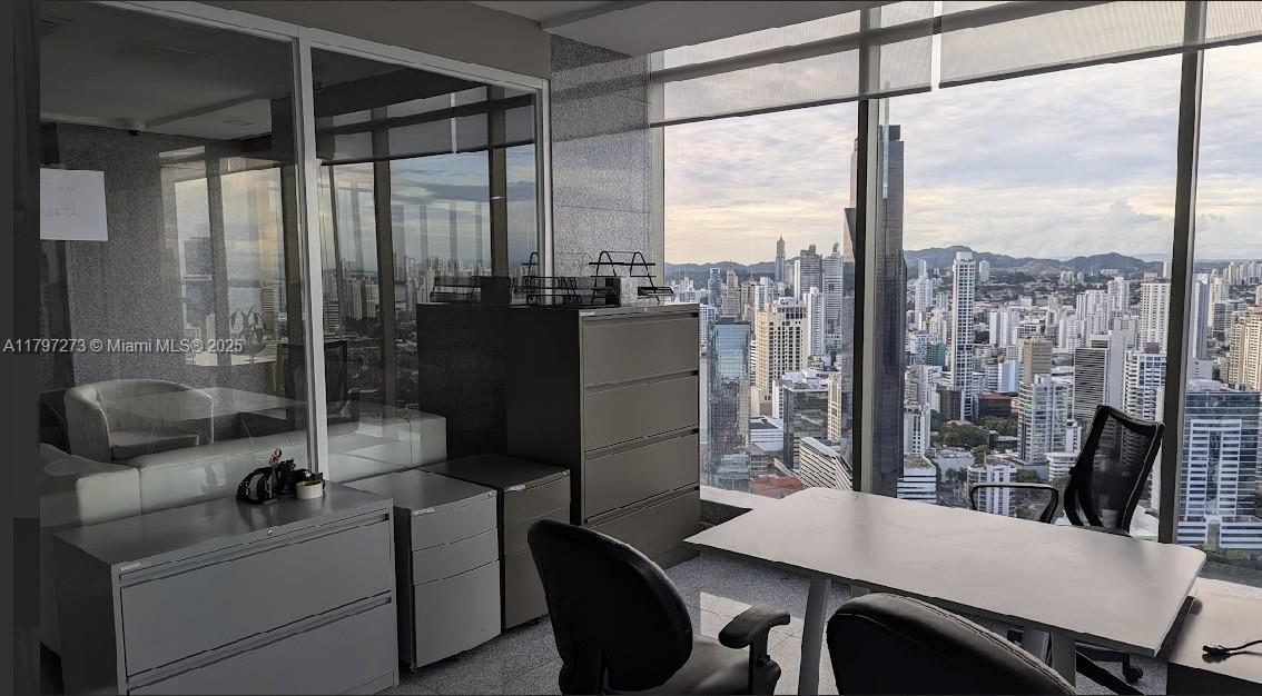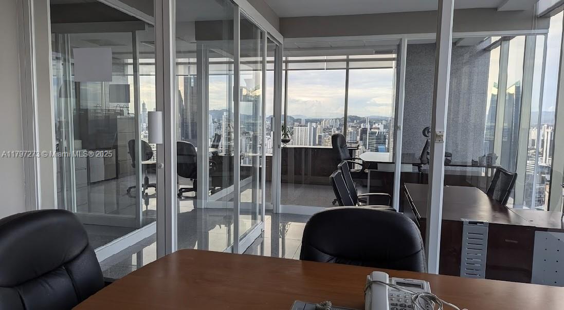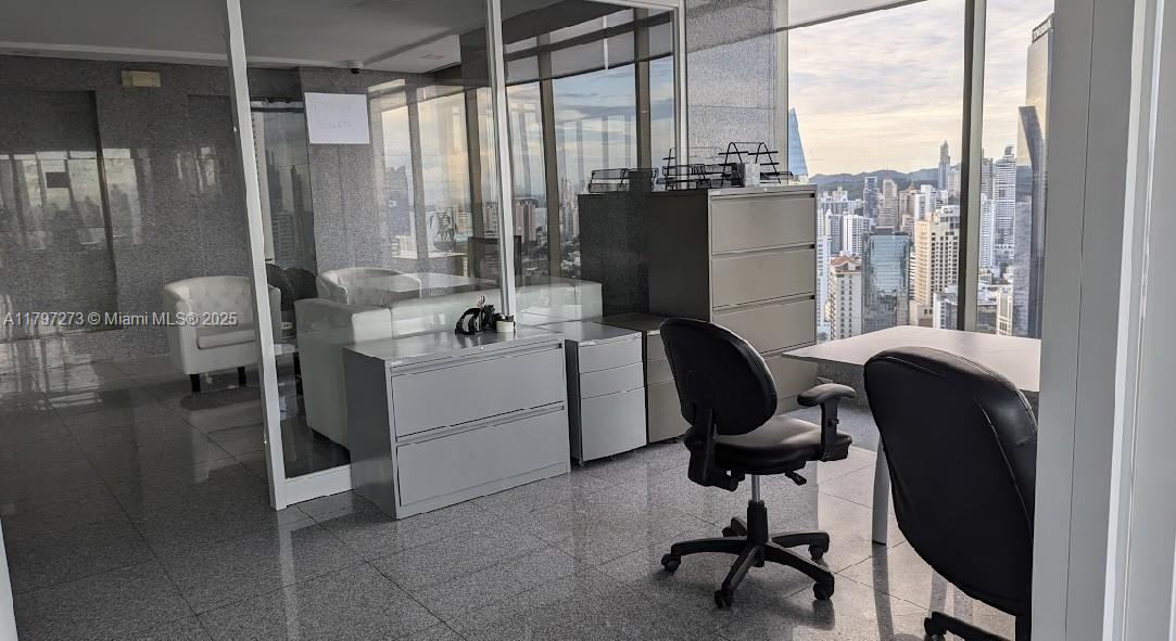 Located in the prestigious Bicsa Tower next to the Hilton Hotel, this 1, 345 sq ft executive office features six glass-partitioned compartments + reception and offers stunning views of Panama City and the bay. The office is fully finished with high-end materials. Built in 2013, Bicsa Tower is a landmark building in the heart of the financial district. Available also for sale!