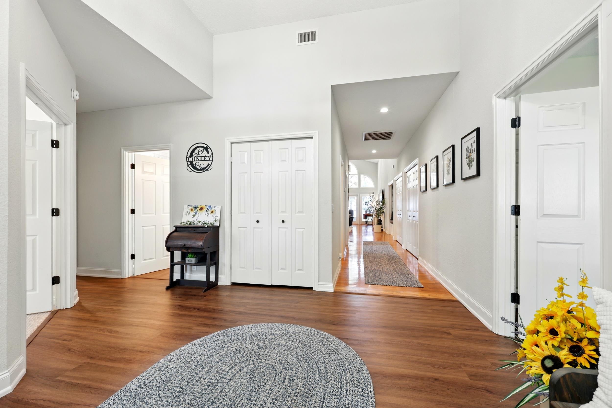 Welcome to this extraordinary riverfront estate on 7. 02 Acres with a private dock located in the highly sought-after Federal Point neighborhood of East Palatka. With 308 feet of serene direct riverfront and no HOA restrictions, this meticulously renovated property offers the perfect blend of privacy, space, and direct waterfront access. The estate features a 4-bedroom, 2. 5-bath main residence plus a fully equipped studio/in-law suite, creating a rare and versatile living opportunity. Originally built in 1991 and extensively renovated in 2022, the 3, 004 sq ft main home boasts many upgrades and improvements. Enjoy panoramic water views from the expansive screened lanai that spans the rear of the home, or relax on the welcoming front porch. Inside, a warm and inviting atmosphere awaits, highlighted by a spacious open-concept living area centered around a charming wood-burning stove fireplace. As you enter the front of the home, you’ll find three bedrooms and a full bath conveniently located toward the front wing. Down the hallway, the home opens into a large living area, dining space, and modern kitchen, all thoughtfully designed to take full advantage of the breathtaking river views. The kitchen features custom wood cabinetry and Quartz countertops, offering both elegance and functionality. The primary suite, located at the back corner of the home along the river, includes a private office nook, walk-in closet, and an oversized bathroom complete with a soaking tub—perfect for relaxation. An impressive 1, 000 sq ft attached garage includes two workshop bays and the additional studio or in-law suite complete with a full bathroom and wet bar, ideal for guests, extended family, or creative workspace needs. The property spans multiple parcels—#48-09-27-1000-0000-0013, #48-09-27-1000-0000-0023, and #48-09-27-1000-0000-0024—offering unique flexibility for agricultural use or future development. Zoned AE (Agricultural Estate) and currently benefiting from an AG exemption, the land supports cows and chickens, which may be included in the sale if desired. The three separate parcels also create potential for additional homes, making this an excellent candidate for a family compound. Additional features include a shared deep well, new septic tank and drain field installed in 2020, and secure access via a private driveway easement from Federal Point Road, with a secondary easement through a neighboring parcel for added convenience. Outdoor amenities include a detached storage building, a shed / chicken coop, and a 208-ft long private dock leading to a 800 sq ft boathouse, offering direct access to the river for boating, fishing, or simply enjoying the natural beauty of the surroundings. This is a truly exceptional opportunity to own a riverfront retreat with unmatched privacy, flexibility, and charm. For additional acreage and structures, please see the neighboring listing at 135 Federal Point Rd.