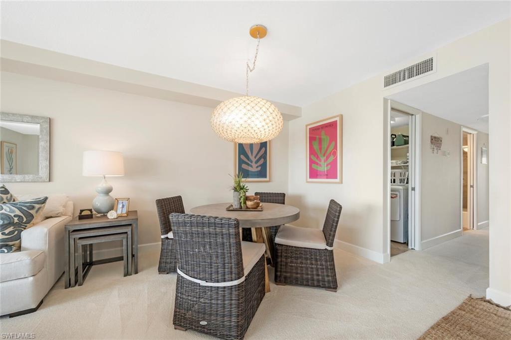 Location at its finest! Uncover the allure of this 2-bedroom, 2-bath condo boasting a stunning view of Naples Bay. The open floor plan seamlessly connects the dining area and cozy living room, creating an ideal space for entertaining or quiet evenings at home. Enjoy the bay view through sliding glass doors and a screened window spanning the entire width of the home, complemented by a beautiful dining room table that seats six. The galley kitchen features stainless steel appliances, vibrant cabinets, a tiled floor, and a breakfast bar. Retreat to the primary suite, complete with a king-sized bed, Smart TV, plantation shutters, large closet and a private balcony. The master bath offers a dual vanity, walk-in shower, and abundant natural light. Guests will appreciate their room with two queen-sized beds, and plenty of natural light. The second bathroom includes a tub/shower combo. Gulf View offers a saltwater pool, charming tiki hut, and a full social calendar. Public beach access is just across the street. Dining and shopping at Venetian Village is just minutes away, and downtown Naples is within a 10-minute drive. Live exceptionally in The Moorings!