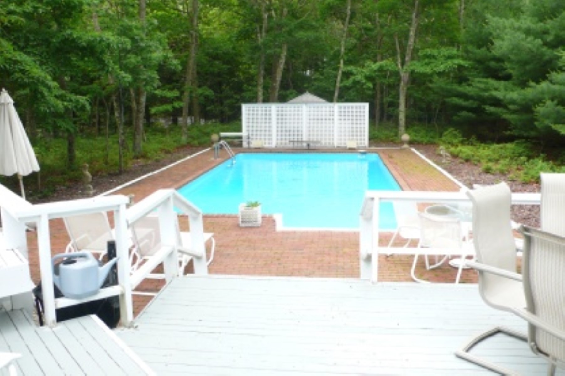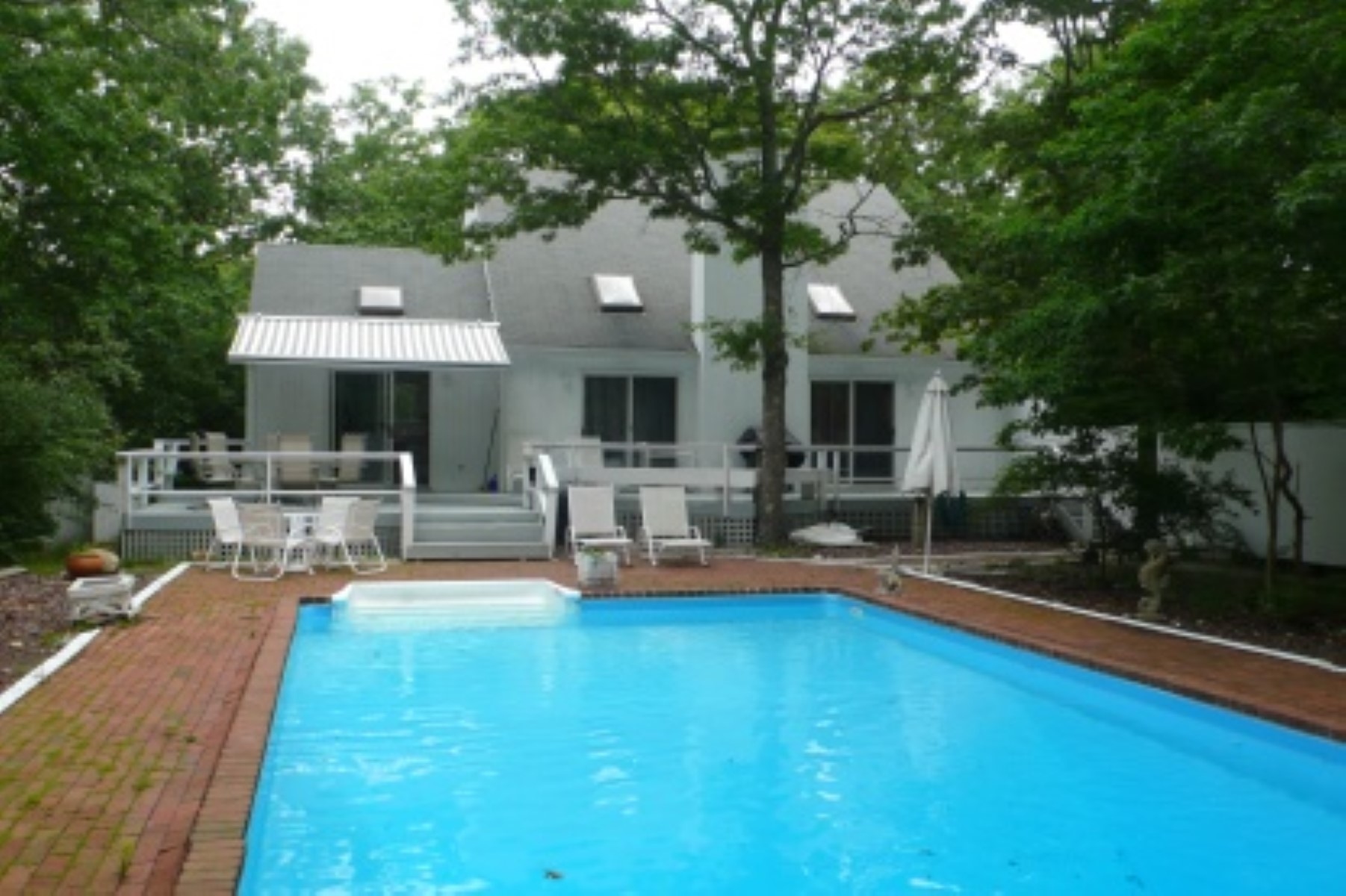 Rental Registration #: 18-709 Bright white contemporary with skylights on a quiet cul-de-sac. Features a living room with fireplace, dining area, eat-in kitchen, den, three bedrooms, two full baths and basement. Additional amenities include central air-conditioning, cable television, outdoor heated shower, retractable awning, large deck, and 18ft. x 36ft. heated pool surrounded by brick terrace. Located one block from Three Mile Harbor. RR#18-709.