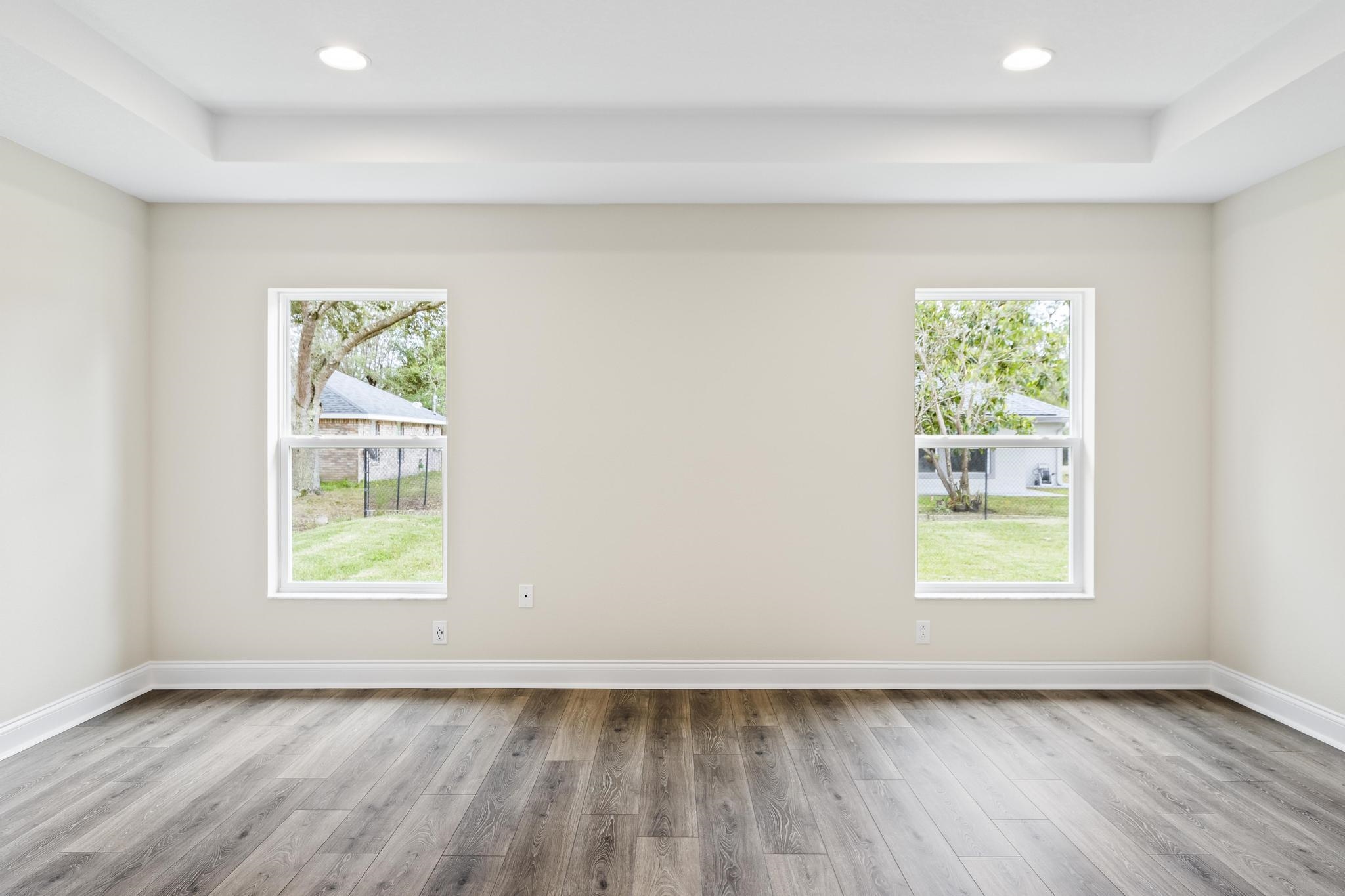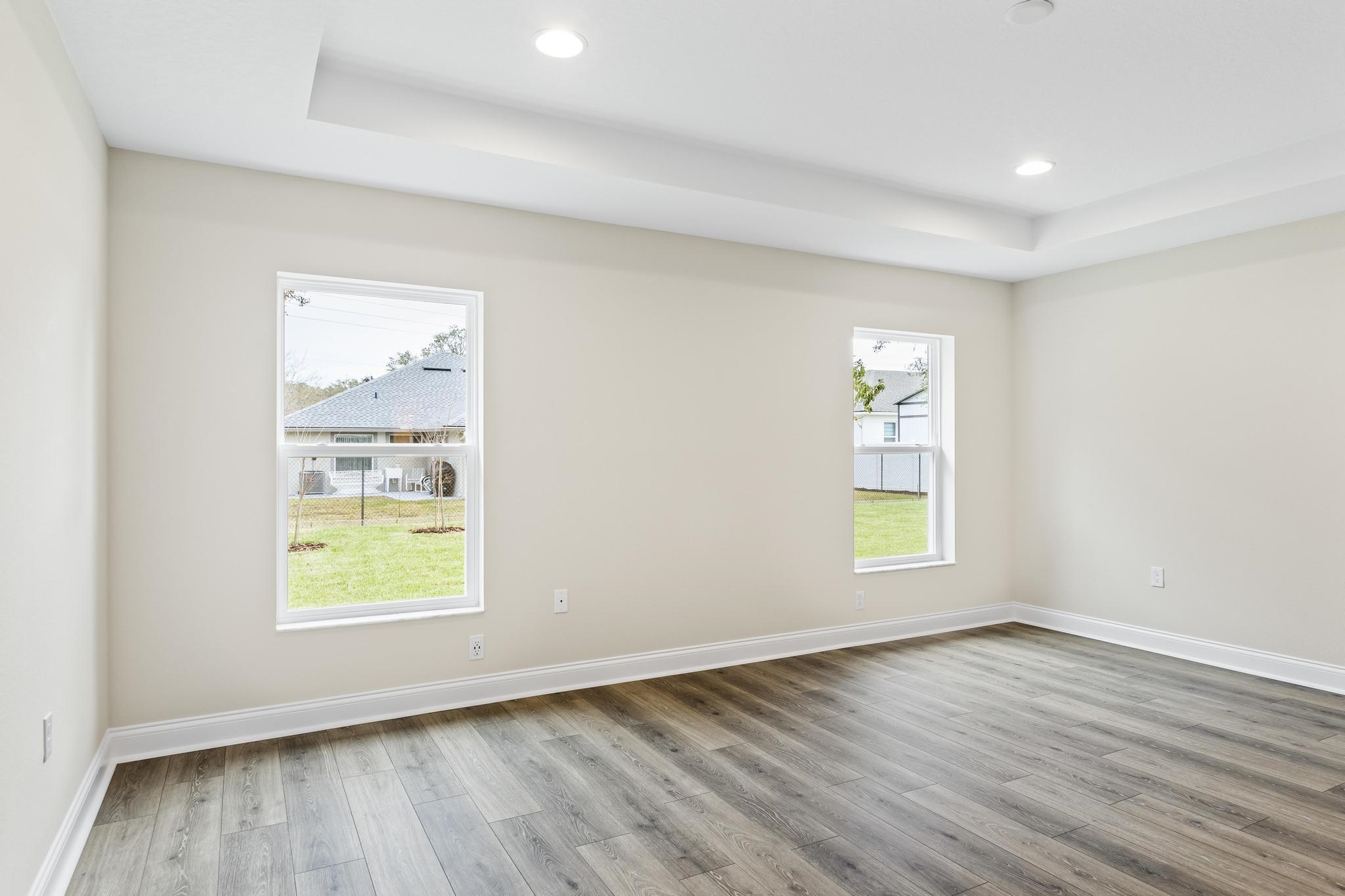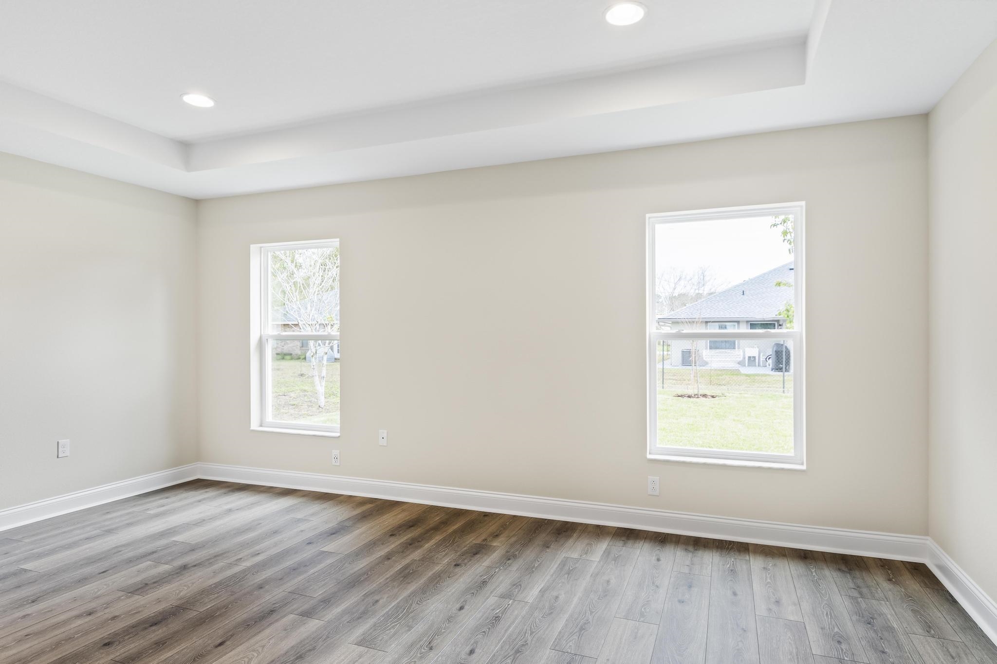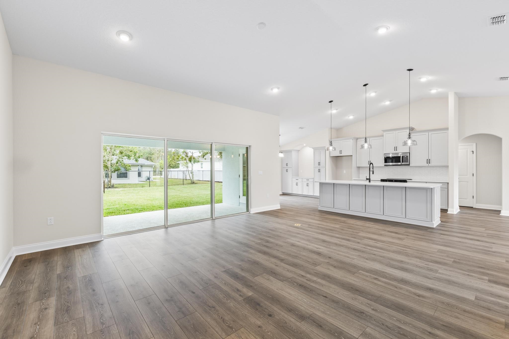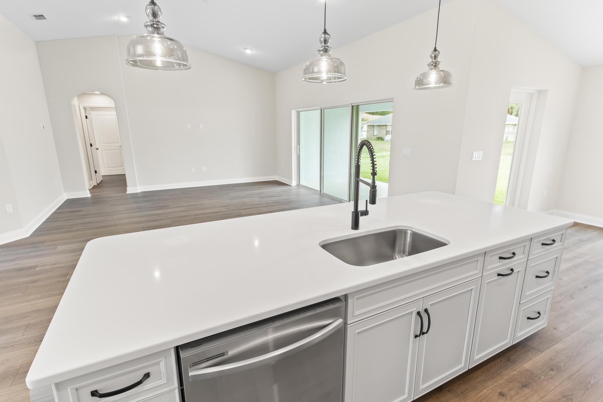 Welcome to the enchanting Willow model, a home that beckons with its warm embrace and thoughtful design. As you step inside, you'll be greeted by a spacious open floor plan adorned with arched entryways and Luxury RevWood seamlessly flowing through the main living areas and into the versatile den/flex room. For the culinary enthusiast, the kitchen is a true masterpiece, featuring quartz countertops, pendant lighting casting a gentle glow over the island bar, designer backsplash, and stainless steel appliances. Stylish hardware accents and 42" cabinets adorned with crown molding extend into the adjacent cafe, creating a perfect blend of functionality and elegance. The private owner's suite is a sanctuary of luxury, showcasing a recessed ceiling detail, two oversized walk-in closets for ample storage, a dual sink vanity offering convenience, and a generously sized walk-in shower for a spa-like experience. Upgraded landscaping and floritam sod.
