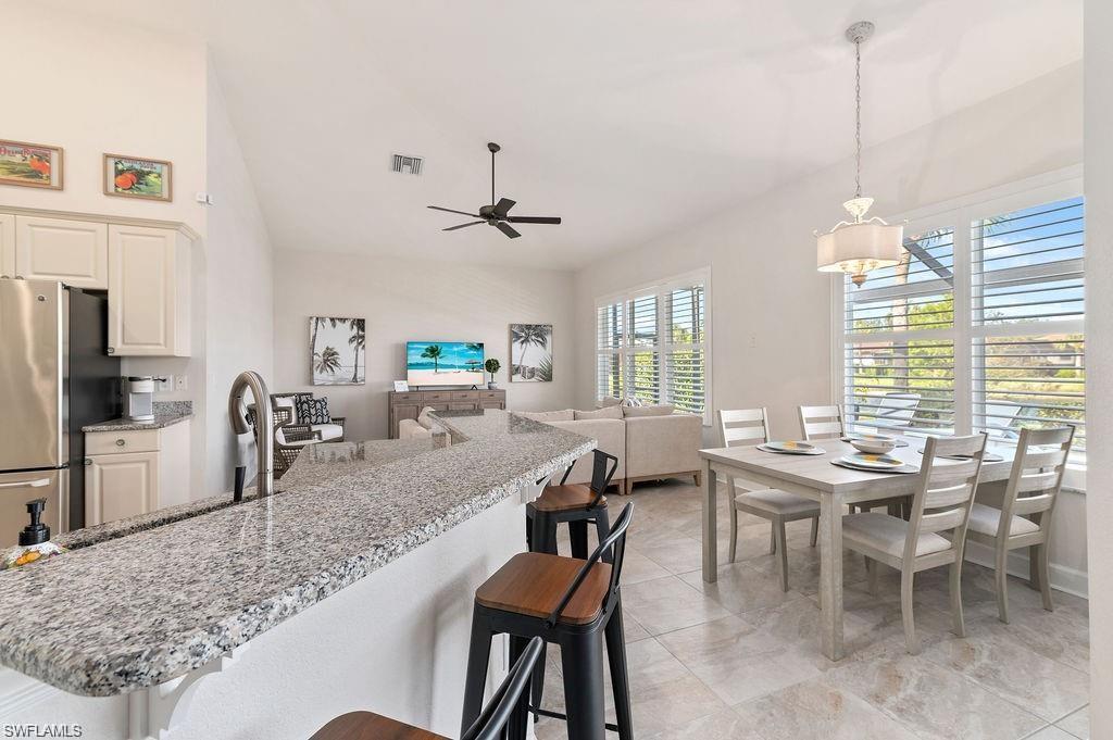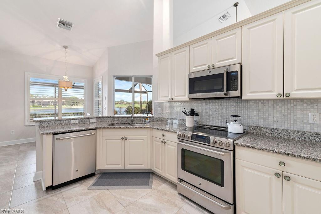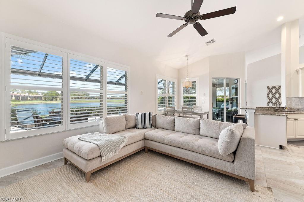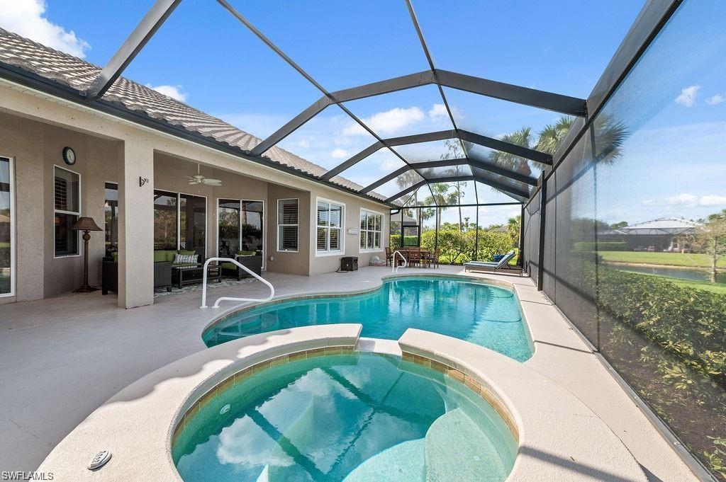 Mustang Island at Lely Resort! Welcome to your perfect seasonal retreat! This beautifully decorated 4-bedroom, 2-bath home is located on a quiet cul-de-sac in the highly sought-after Mustang Island at Lely Resort. Enjoy all-new furniture and stylish décor throughout the home. Take in the stunning water and golf course views from the expanded lanai featuring a heated pool and spa—perfect for relaxing or entertaining.