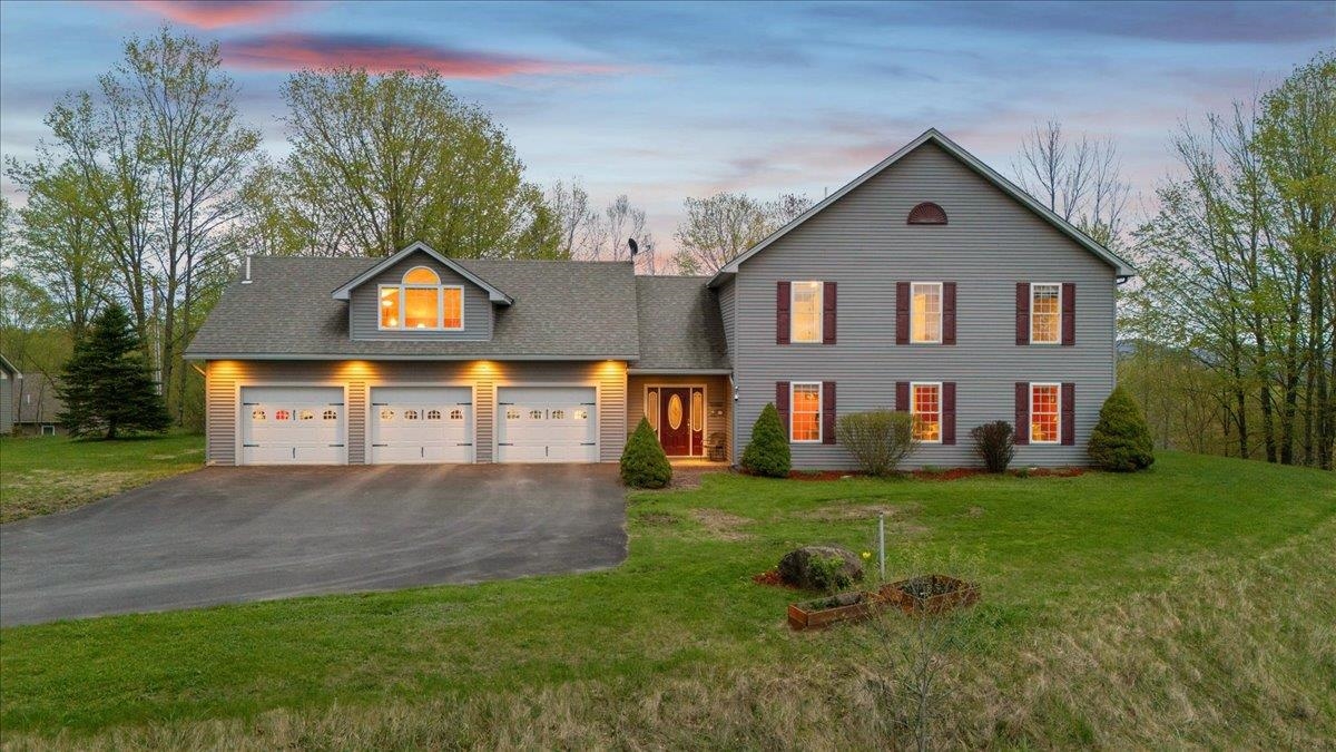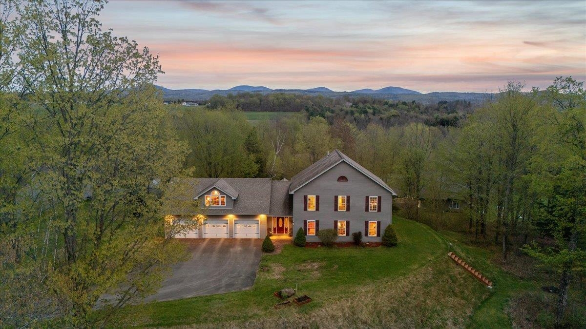 Wake up every morning to sweeping mountain views and the iconic silhouette of Camel’s Hump. Nestled at the end of a quiet 8-home development in Barre Town, this spacious 5-bedroom Colonial pairs privacy with a front-row seat to some of Vermont’s most breathtaking scenery. Inside, natural light pours through oversized windows, framing nearly panoramic views of Barre City and the Green Mountains. An open-concept kitchen with island and breakfast nook flows seamlessly to a formal dining room and cozy living area with a gas fireplace. A sunroom overlooking the hills—complete with a 7-seat hot tub—offers year-round relaxation. The primary suite is set apart in its own wing, above the heated 3-bay garage, creating a true retreat. Upstairs, four additional bedrooms provide abundant space for family, guests, or flexible living. Outside, a stamped concrete patio, large storage shed, and one acre of land complete the setting—feeling even larger thanks to the wooded surroundings. Enjoy close access to Barre Town Forest trails, disc golf, pickleball, and the VAST snowmobile trail network, plus quick drives to Montpelier (15 min), Stowe (40 min), and Burlington or Sugarbush (45 min). A home best experienced in person—where Vermont’s landscape becomes your daily backdrop.