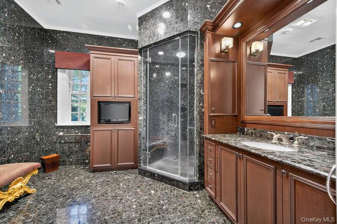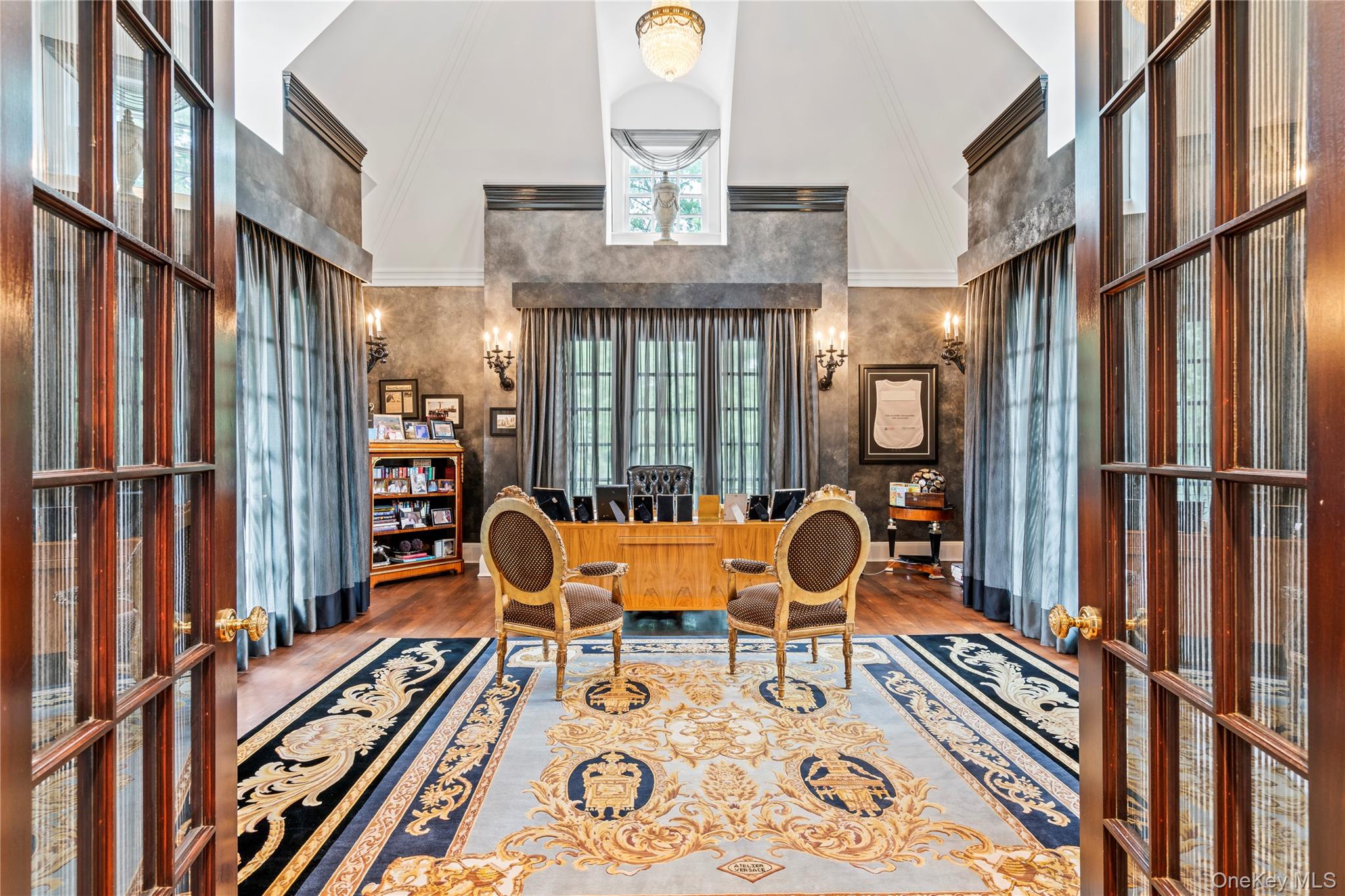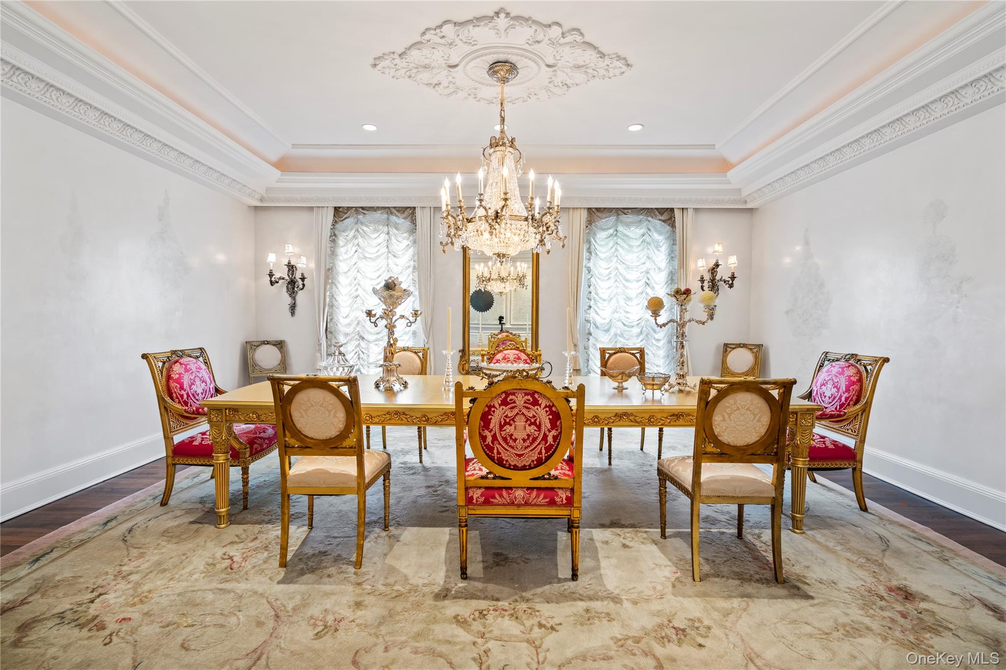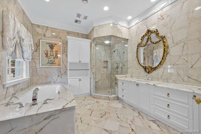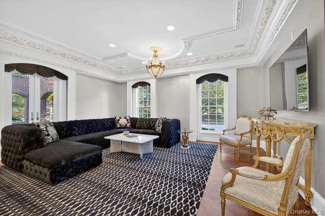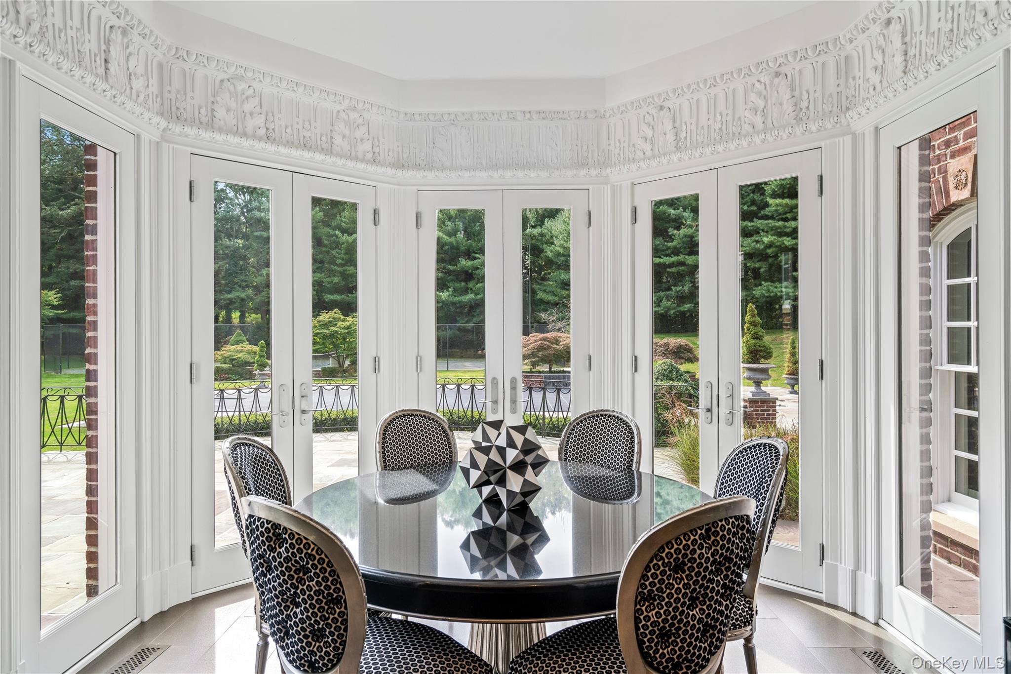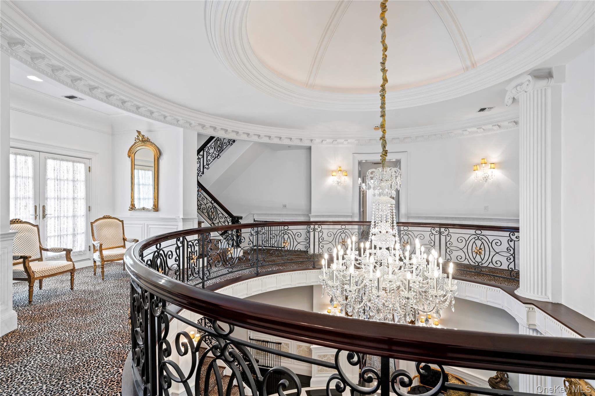 For the Discerning Client who seeks only the Finest. . . . Welcome to 8 Vista Lane in Brookville--where Timeless Design and Bespoke Materials are blended to create this Sophisticated Modern Luxury. A Grand Courtyard leads to the Entrance of this Spectacular Private Estate. The Tone is set as Guests are greeted in the Breathtaking 30'high Domed Circular Reception Gallery adorned with Magnificent Crystal Chandelier, Stunning Marble Floors, Marble Fireplace, Intricate Plaster Moldings & Delicately Hand Painted Gold Leaf Wall Accents. Grandeur continues to an Elaborate Formal Living Room with Mahogany Floors, Shimmering Designer Textured Walls, Built-In Bar/Wine Cabinet, French Marble Fireplace & 2 sets of French Doors leading to an enclosed bluestone Patio for Indoor/Outdoor entertaining ease. Elegant Dinner Parties can be hosted from the private Banquet Dining Room graced with Antique Crystal Chandeliers & wall Sconces surrounded by elegant Venetian Plaster walls with soft handpainted Topiary silhouettes. The spacious Family Room is complimented by beautifully detailed coffered ceiling, Magnificent stone Fireplace and custom Drapery covering 3 sets of French Doors that open to a covered patio with brick archways. The Dream Kitchen is a Gourmet's delight with the most exquisite custom High Resin Wood Cabinetry, Meile & Wolf appliances, a 350 Bottle Wine Refrigerator, custom Illuminated Glass countertops, heated porcelain floors & Breakfast Room overlooking lush greenery. A private Office/Bedroom with soaring Architectural ceiling & doors to a Juliet Balcony and rear Patio is set off a private Hallway. Intricate custom wrought iron railings with gleaming mahogany handrails adorn each of this Manor Homes 4 floors. A circular Hallway embraces the 2nd floor leading to the elaborate Primary Bedroom. This lavish retreat is the epitome of Luxury with custom built-in wardrobe closets, French Marble carved Fireplace, 2 separate Full Baths, one in Onyx, the other Marble with large custom walk-in closet, electronic blackout shades & expansive private outdoor patio. 3 additional large bedrooms, each with generous closets, private baths and electric shades complete this floor. The lower level is an open floor plan with play rooms, game room, gym, laundry and full indoor sports court. An entrance to the 4 car garage and stairway to rear property are accessed from this level. A life of privilege and a sanctuary of luxury await the next owners of this extraordinary residence set on two acres with pool/jacuzzi , tennis, built-in outdoor kitchen, bluestone patios & professional gardens. Jericho SD By Appointment