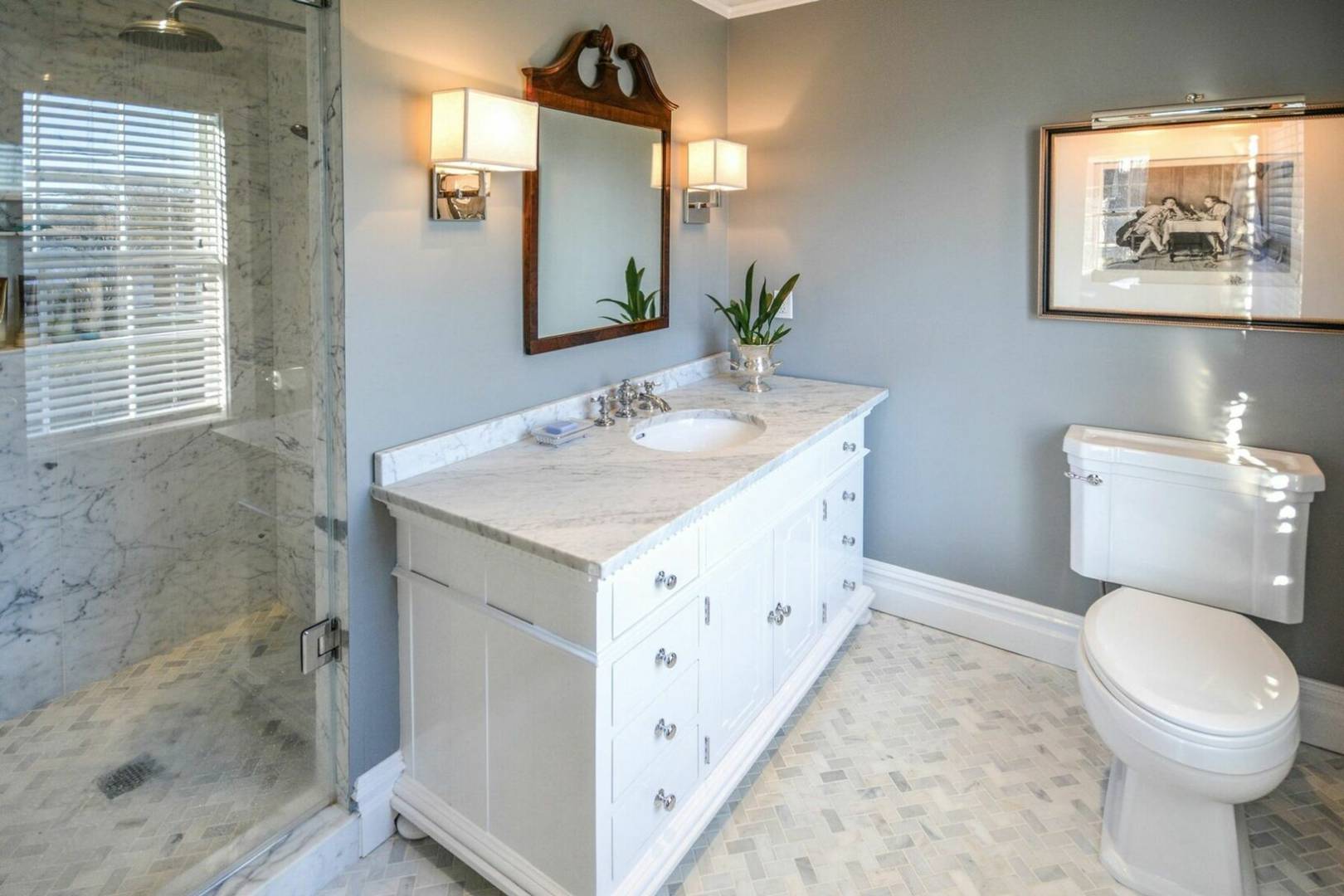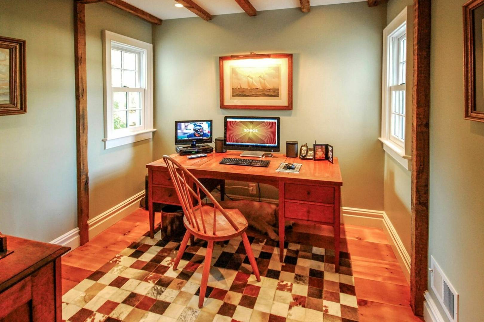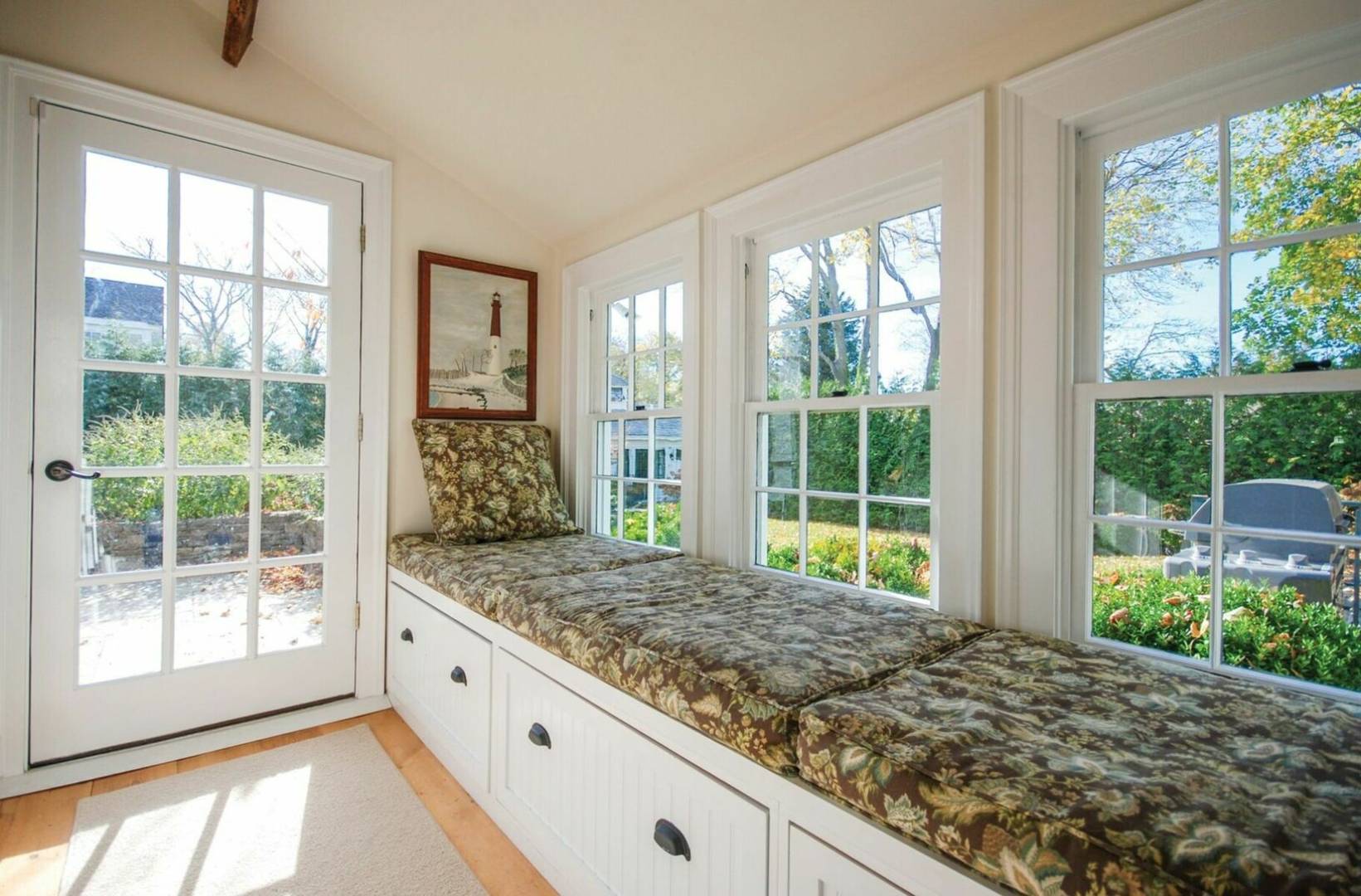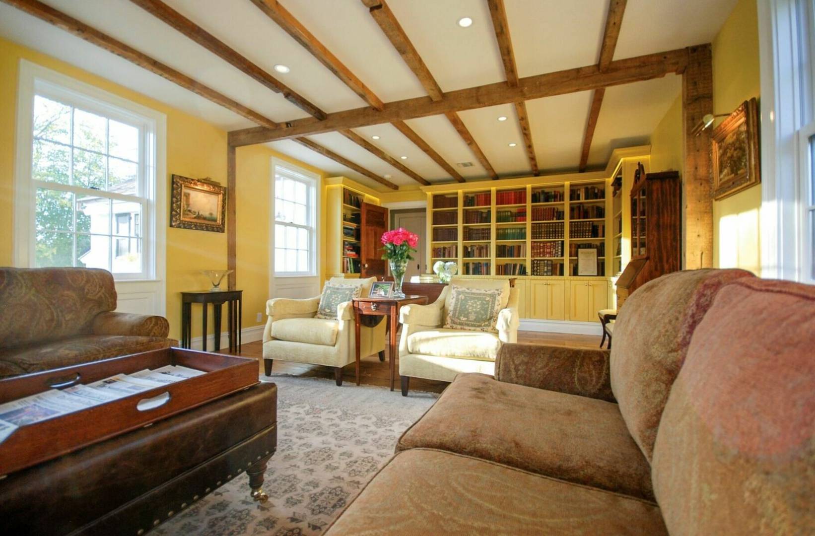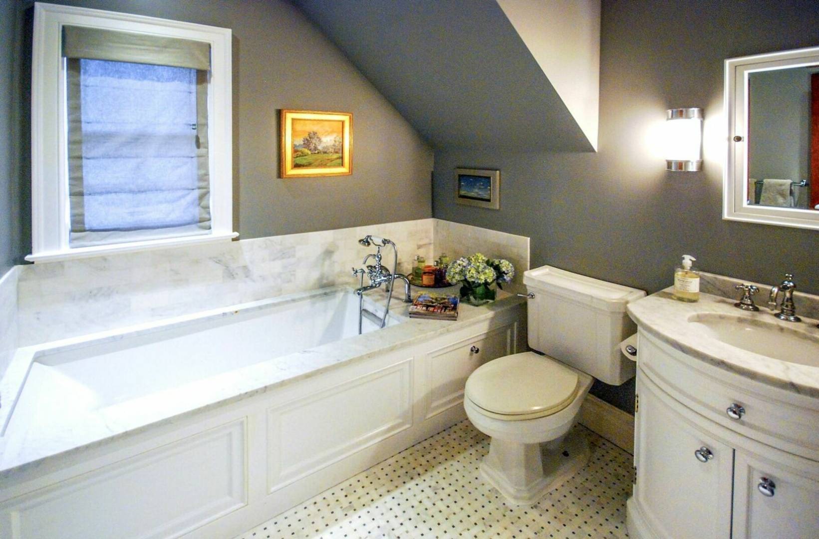 Charming historical 5 bedroom 4 bath home in the heart of Sag Harbor Village. Completely renovated with modern amenities. Beamed ceilings, chefs kitchen, beautifully appointed bedrooms, with five zones of air conditioning. Outside there is a stone terrace for dining, heated gunite saltwater pool and pool house with bath and loft.