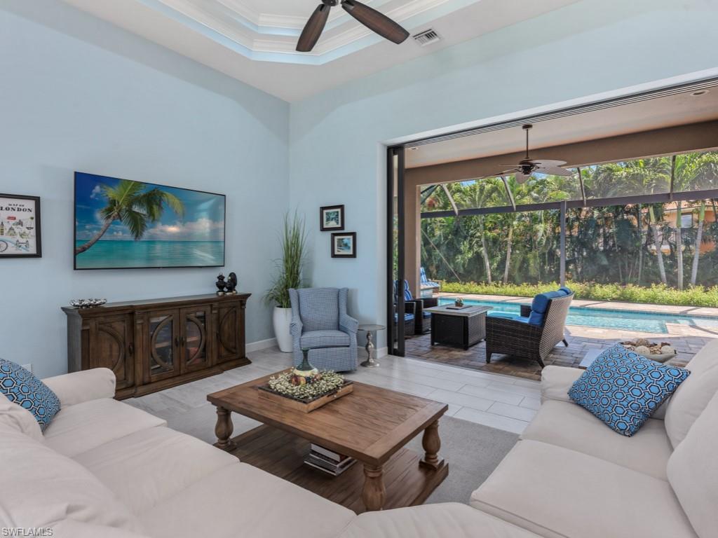 Escape to your own tropical retreat on sunny Marco Island! This inland gem is just minutes from beach access and offers the perfect blend of luxury, comfort, and convenience. Featuring 4 spacious bedrooms & 3 full baths, this upgraded residence showcases the expanded FCI Builder St. Bart’s floor plan with soaring ceilings and 10' pocketing sliders that bring the outdoors in. This great room floor plan has a gourmet kitchen with island, making it ideal for family gatherings or hosting guests. Built in 2016 on an extra deep parcel with a paver circle drive, this impeccably maintained home has new gutters, newer lanai cage & new A/C's. Plus, it is finished in fresh, neutral tones with elegant plantation shutters throughout. Enjoy true indoor-outdoor living with a private backyard, wide picture-window screened lanai, a heated pool & spa, summer kitchen, pool bath, & even an outdoor shower—perfect for entertaining or unwinding in your private mini-resort. Why wait to build when this stunning home is move-in ready now & already loaded with upgrades! Whether you're looking for a full-time residence or a luxurious vacation home, this property offers the ultimate Marco Island lifestyle. Don't miss the opportunity to make this exceptional home yours!