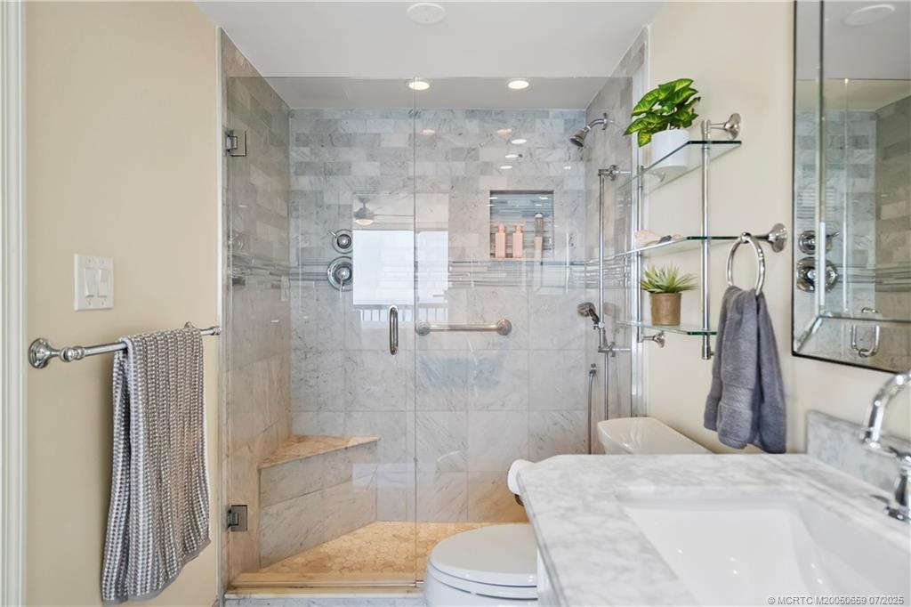 Oceanfr?nt ?uxury L?ving ?n Jen?en Beach. Enjo? bre?thtaking views of the Atlantic Ocean and Intercoastal Waterway from this stunning beachfront condo. Fully renovated 2-bedroom, 2-bathroom condo has a gourmet kitchen equipped with stainless steel appliances, quartzite countertops, stackable washer/dryer, and a convenient office nook. The luxurious Owner's Suite boasts an all-marble bathroom with dual sinks, a large walk-in shower, and an expansive custom walk-in closet. Islandia II offers resort-style amenities including: guard-gated access, two heated pools, a hot tub, fitness center with sauna, lighted tennis and pickleball courts, bocce courts, and a billiards room, a community room with a full kitchen, dedicated pet off-leash area, RV/trailer parking, and a car wash station. The building has completed the milestone report along with concrete and structural inspections. Located on Hutchinson Island near Downtown Jensen, Downtown Stuart, great local restaurants & shopping.
