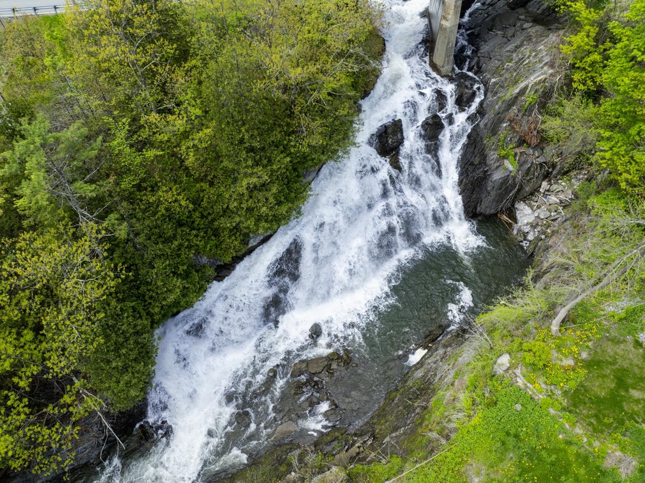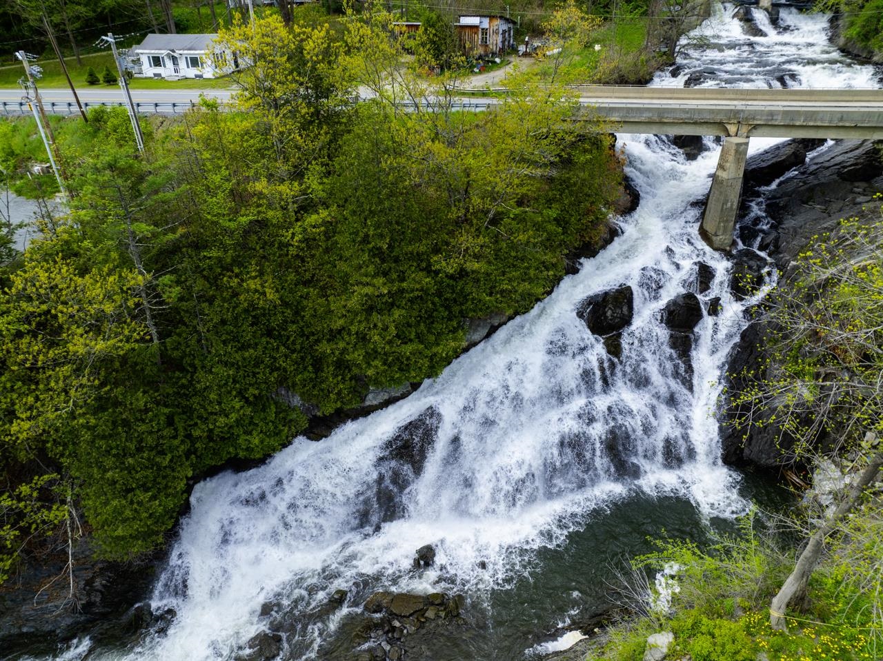 Historic house at the foot of stunning, huge Stevens River waterfall. Coined "Falling Water" by the architect owner, a spectacular site and a big house with significant square footage to work with. Currently an easily dividable 5BR (three up, two down) with unfinished basement apartment, a kitchen on main, partial 2FL kitchen and a place to install a kitchen in the partially finished basement/walkout apartment. With a whopping 750 gallons per day of septic capacity state WW permit, retool this into 7BR single family, a 3BR+2BR Accessory, or a 2BR+1BR+1BR triplex swith fantastic potential rental income to offset your carrying costs. New roof in 2023, hardwood floors to reinfinish, rare oak hot water baseboard covers, other beautiful touches to take to the next level. Wonderful workshop in the garage space with large attic for storage, this diamond in the rough has so much integrity. Industrial Morrison Custom Feeds is just south east but that factory view is outweighed by the oh-so-gorgeous waterfall and sound of water. Rough at the edges but liveable, this will be a wonderful reno project into a stately home or income generating multi-family. Leach field on the non-abutting . 44 acre or so lot in the field east of the house. Rarely does such an incredible location come on the market. You can even feel the waterfall spray on your face from the observation platform when the water is high. Exalt. Bring vision. Bring meditation.