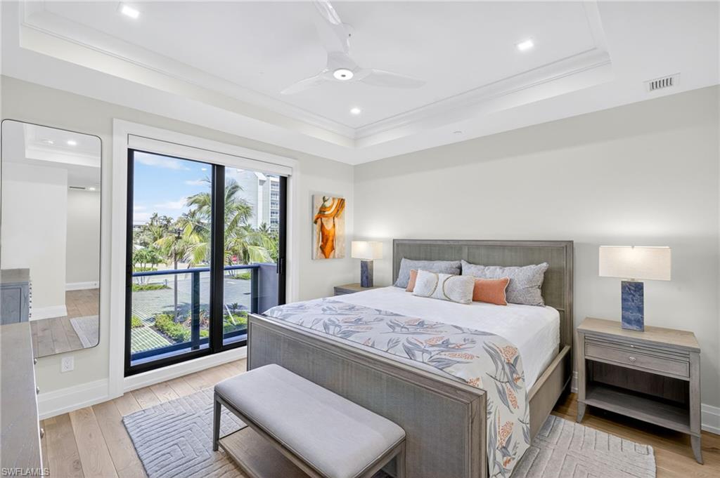 An expansive main balcony showcases tranquil bay views perfect for morning coffee or an evening cocktail, while guest suites feature their own private balconies—perfect for enjoying Naples’ famed sunsets. The primary suite is a true sanctuary, complete with balcony access, a spa-inspired bath with dual vanities, a glass-enclosed shower, soaking tub, and custom walk-in closets. A wet bar, powder room, and full laundry suite further elevate the home’s functionality and style.