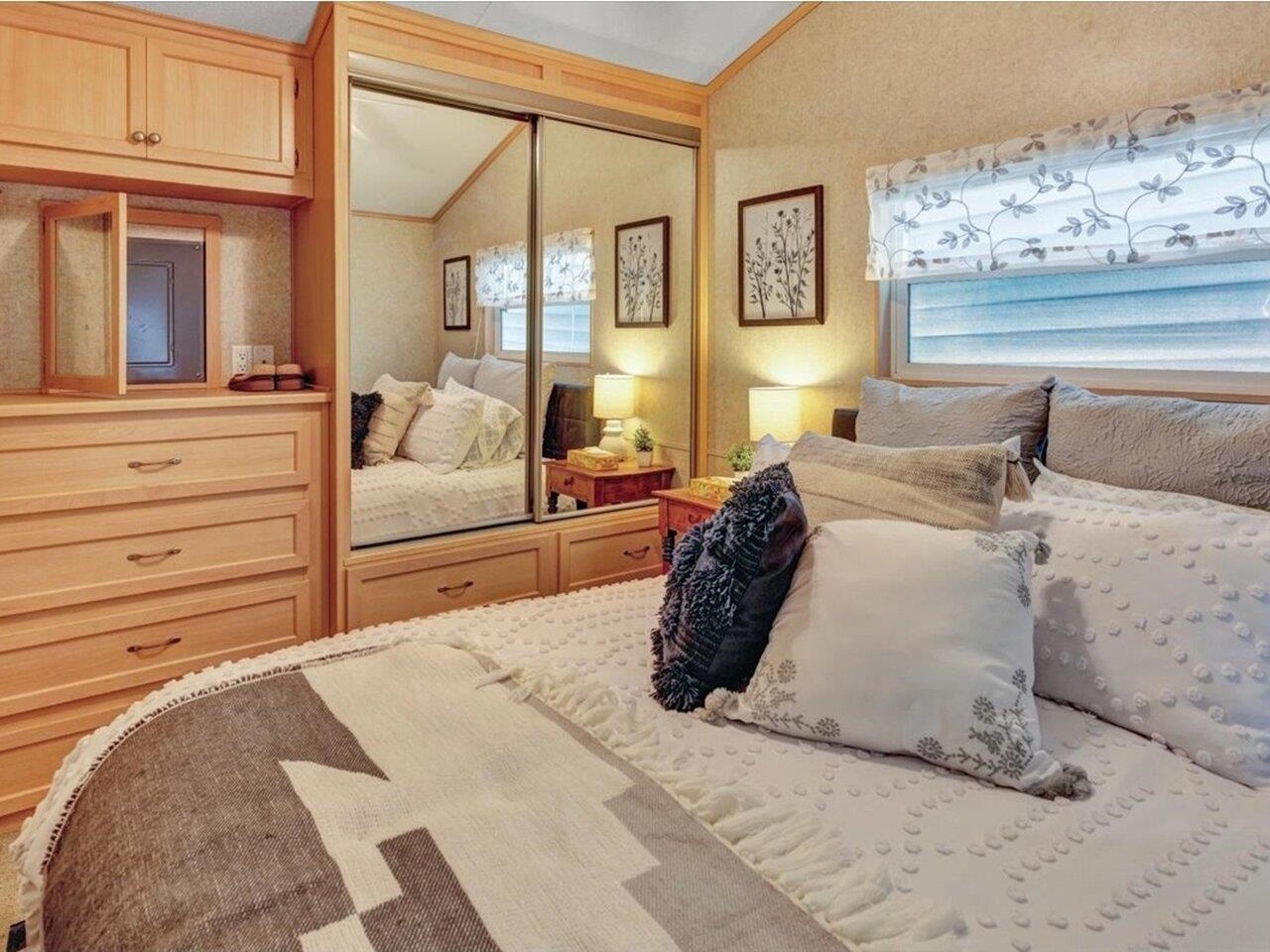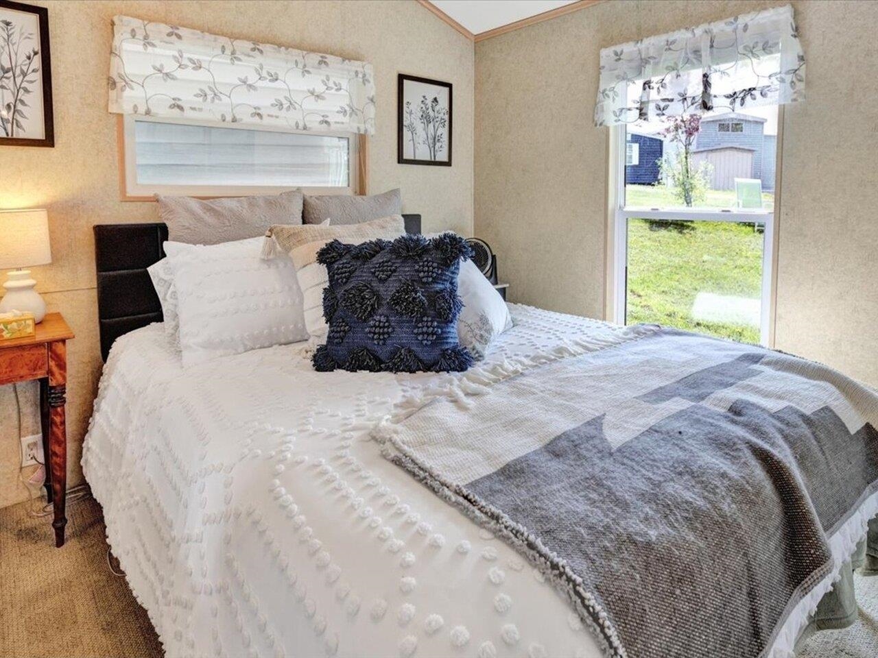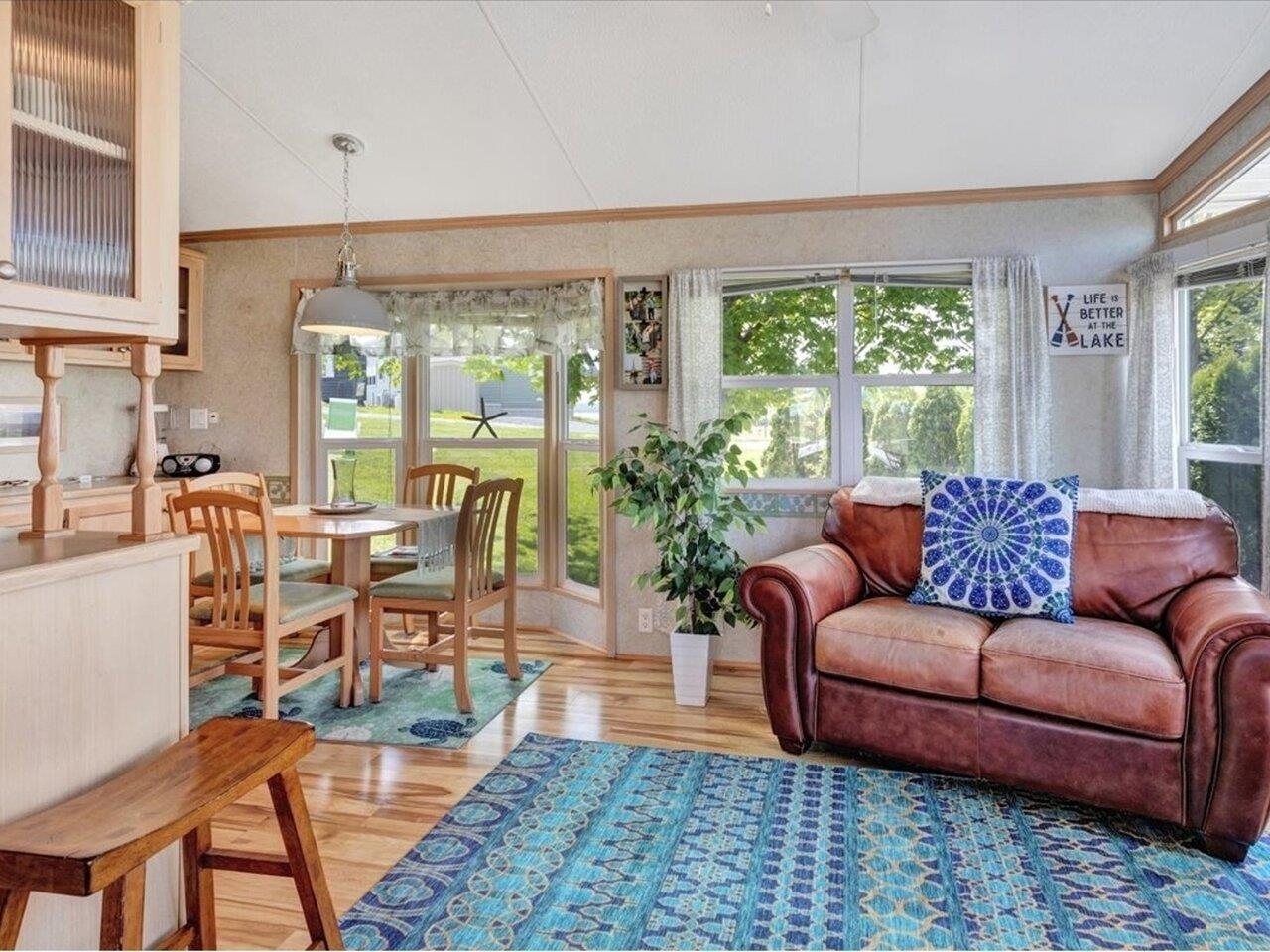 Welcome to this very cute and stylish 1-bedroom partially furnished seasonal cottage at Apple Island Resort-offering the perfect blend of comfort and charm in a beautiful lakeside community. This partially furnished retreat features new flooring and lighting fixtures added in 2024, giving the space a fresh and modern feel. Inside, you'll find a sunny living room with an electric fireplace, ideal for relaxing after a day spent out on Lake Champlain. The living room flows nicely into the dining area, where large windows offer peekaboo lake views. The kitchen is thoughtfully designed with a cute coffee bar area, extra counter space, and everything you need to enjoy casual island living. Stay comfortable with central air in the main cottage and a floor unit in the sizeable 3-season sunroom, which extends your living space and opens out to a sunny back deck—perfect for barbecues and summer entertaining. A good-sized shed out back includes a washer and provides plenty of storage for your seasonal gear. The beautifully landscaped yard features established perennial beds and an elevated fire pit area, where you can unwind and take in the lake views. As a bonus, a golf cart is included in the sale, making it easy to enjoy all the amenities of Apple Island Resort, from the golf course to the marina and beyond. This delightful cottage is a perfect home base for making the most of lake life! This seasonal lease fee for this cottage is $9, 047.
