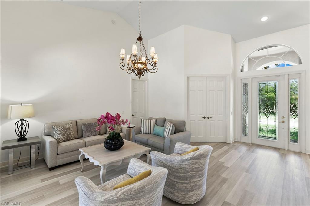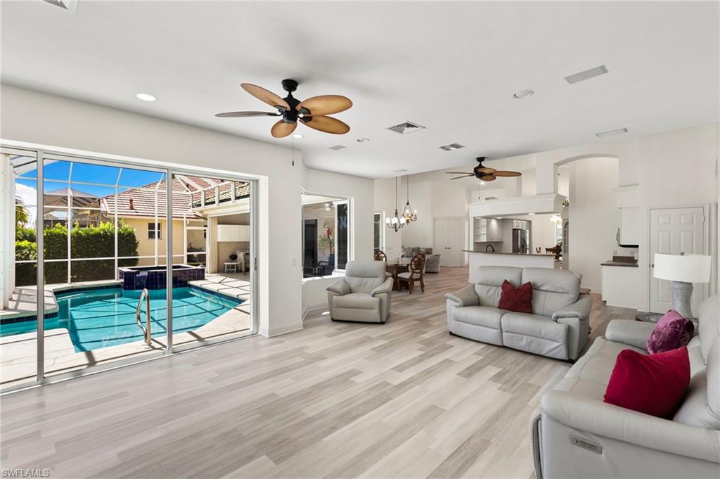 Tucked away on a rare . 4-acre corner lot, this spacious 4-bedroom + den, 3. 5-bath home offers the perfect blend of privacy, comfort, and indoor-outdoor living. With vaulted ceilings and a generous 3-car garage, the layout feels open, bright, and inviting from the moment you walk in. Inside, you’ll find flexible spaces designed for the way you live today. The den is ideal for a home office or cozy media room, while the walk-in master closet with built-ins adds a touch of everyday luxury. The kitchen features newer appliances—including a refrigerator, dishwasher, and microwave—and a new washer and dryer for added convenience. A whole home generator ensures peace of mind during any weather, while electric shutters provide ease and protection year-round. Step out to the heart of the home: an expansive lanai made for entertaining and relaxing. Enjoy the outdoor kitchen, rinse off in the outdoor shower, and take advantage of the dedicated pool bath after a swim or day on the water. For boating enthusiasts, the private dock and lift offer direct access to the area's scenic waterways—perfect for sunset cruises or a quick trip to nearby beaches and waterfront dining. With its prime location, generous lot size, and true Florida lifestyle features, this home is ready to welcome you to your next chapter.