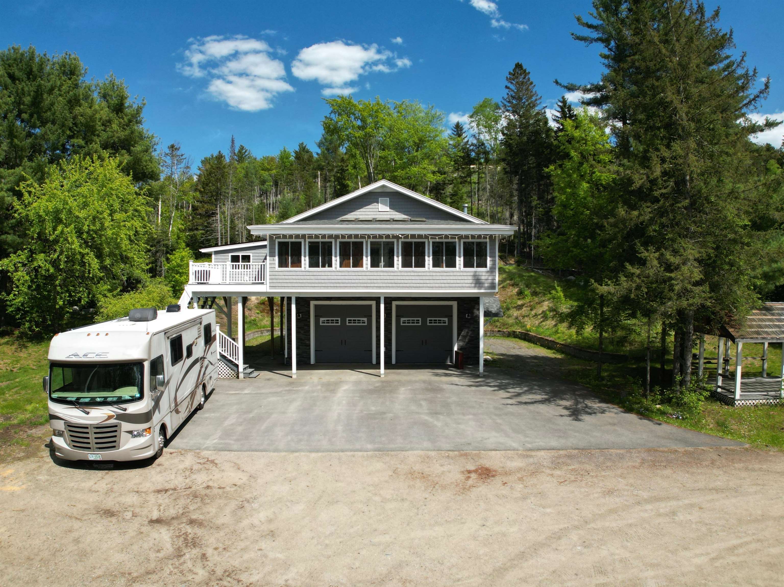 Charming 2-Bedroom Raised Ranch with Exceptional Amenities and Scenic Views Welcome to this beautifully maintained 2-bedroom raised ranch offering comfort, functionality, and space for all your lifestyle needs. Nestled in a peaceful setting just minutes from the river, this home boasts a cozy 3-season porch—perfect for relaxing and soaking in the views year-round. Step inside to an open-concept layout where a spacious living room flows seamlessly into a sun-filled kitchen featuring updated appliances, including a stove, refrigerator & dishwasher. The generously sized bedrooms offer large closets, including a primary suite with a private bath. Downstairs, the basement offers a bonus room and bathroom—ideal for extra living space, a home office, or a guest suite with just a few finishing touches. You'll also find an attached 2-car garage on this level for everyday convenience. A standout feature of this home is the 14' x14' fully insulated hot tub room, providing the perfect spot to unwind in every season. Need more space? The property also includes a heated 32' x 40' garage/workspace with room for 2+ vehicles, plus a 14' x 40' carport designed for RV storage. An additional drive-through extension at the back of the garage is ideal for ATVs—ride straight from your backyard to nearby trails! Enjoy outdoor entertaining in the large lighted gazebo complete with or simply relax in the yard surrounded by nature. For peace of mind, the home is equipped with security cameras.