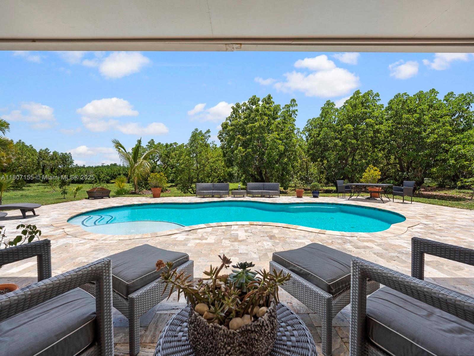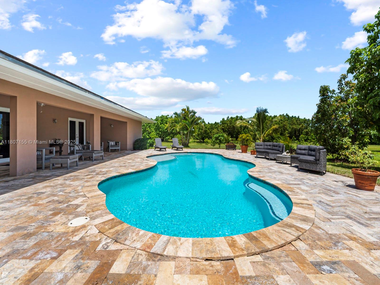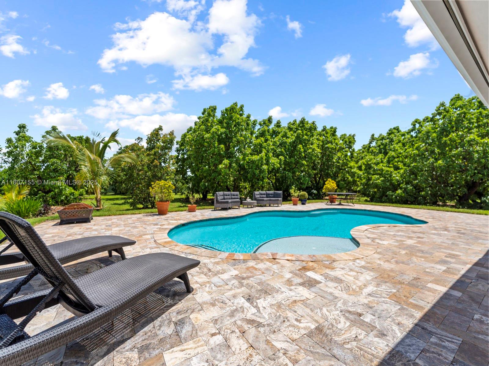 Escape the hustle and bustle of the busy city with this income-producing 5-acre property located on a private road. The stunning 4-bedroom, 2-bath custom-built home features an open floor plan, split bedrooms, impact windows and doors, a pool with a J&B saltwater system, travertine pavers, a security system with cameras, and underground utilities. This property offers a peaceful retreat from city life while still providing modern amenities and a luxurious living space. Property currently has agricultural exemption. A Must See, photos do not capture the beauty of this home and property!!