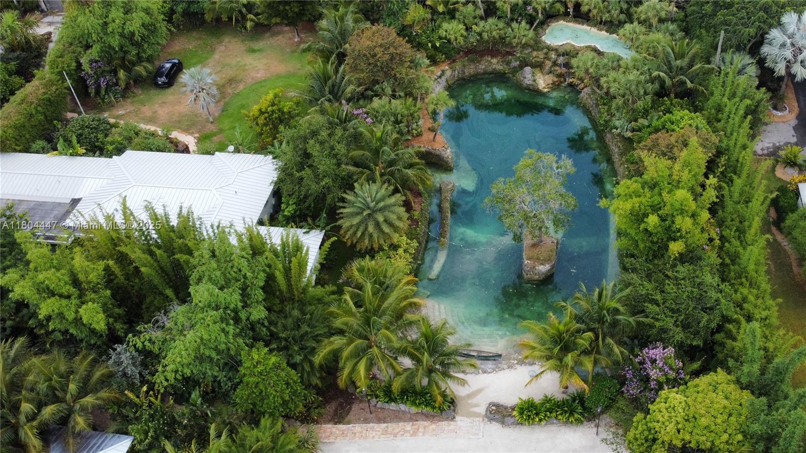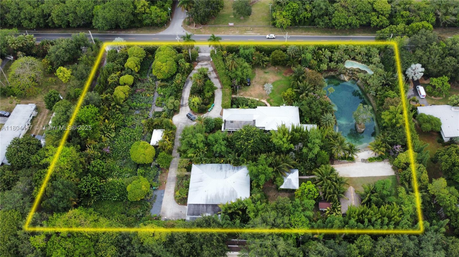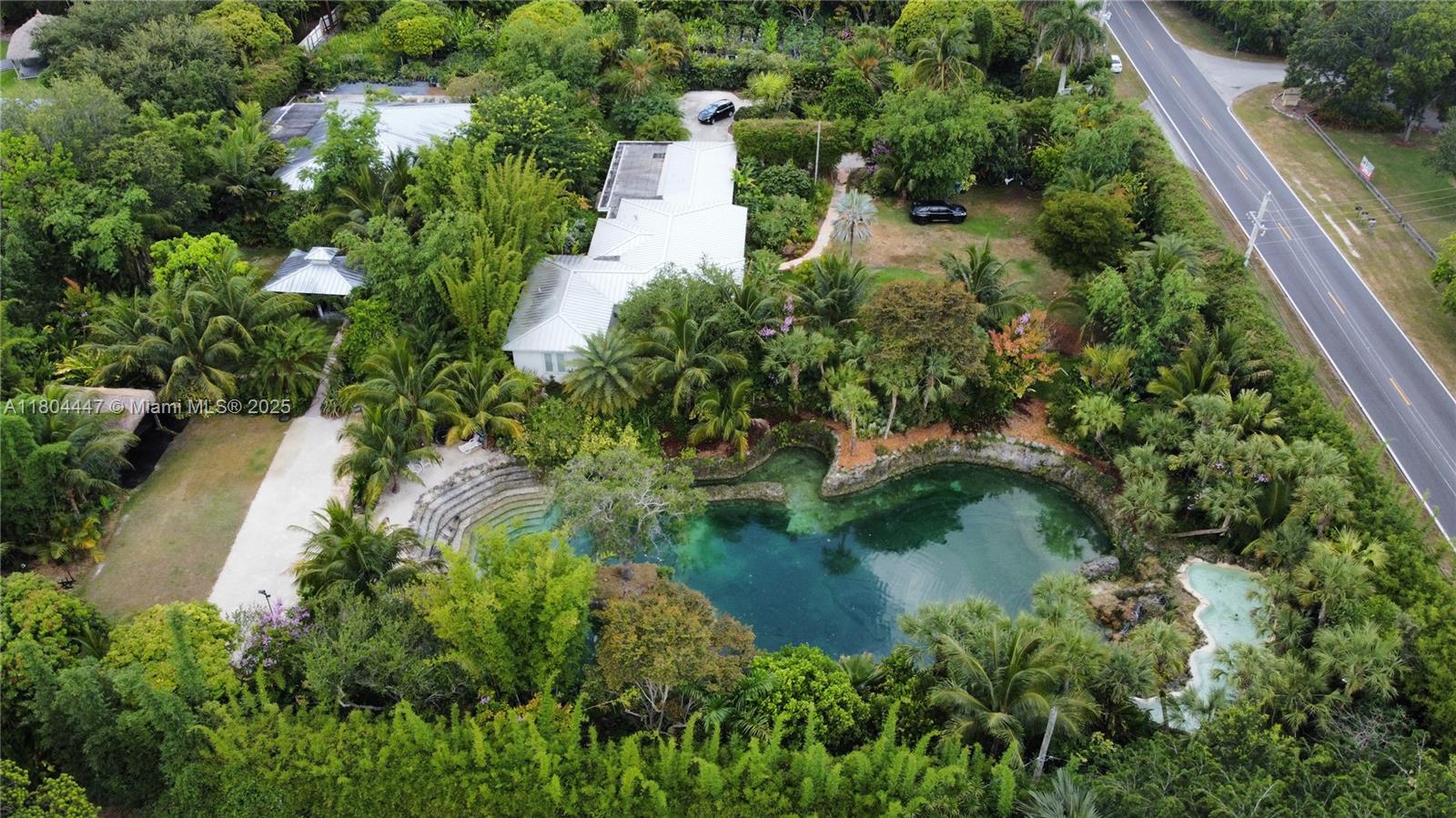 Prepare to be enchanted by this tropical oasis nestled in the heart of the Redlands! 2. 76 acres of serene beauty with an immaculately kept grotto, two private 3/2 homes and more! Go for a swim in the breathtaking grotto that features a spacious outdoor seating area, tiki hut, and gorgeous gazebo. Dazzle your guests with live music and entertainment in the amphitheater and stage area. Separate outdoor restroom with A/C and fireplace included. Front house features a 2 car garage, Florida room, and covered patio with an outside kitchen. 2nd house has a 1 car metal carport, tile flooring, addt'l room, and covered patio. This property is a beautiful space for outdoor ceremonies, weddings, photo/film shoots, or can serve as your own private piece of tropical paradise! This is a MUST SEE!