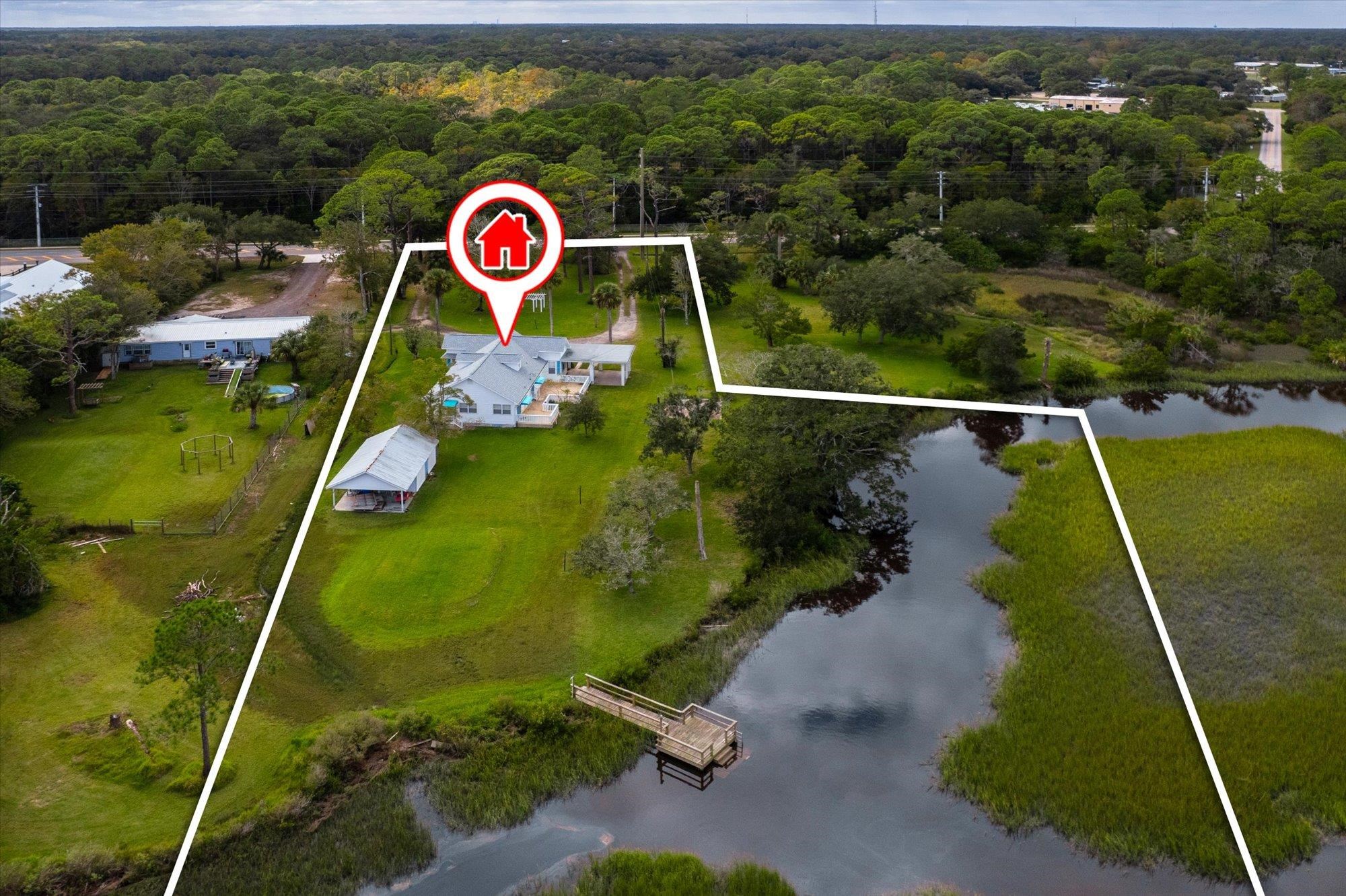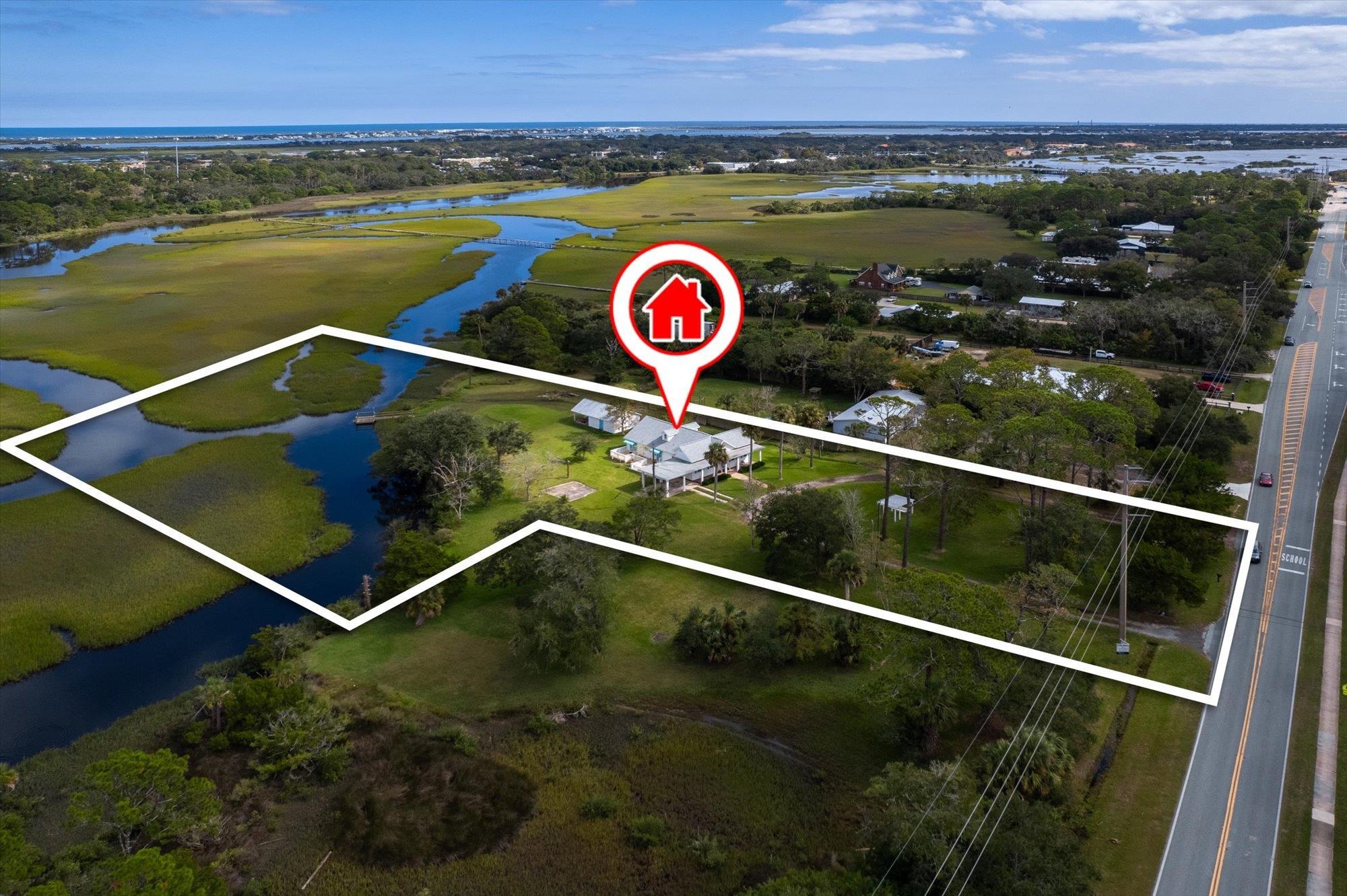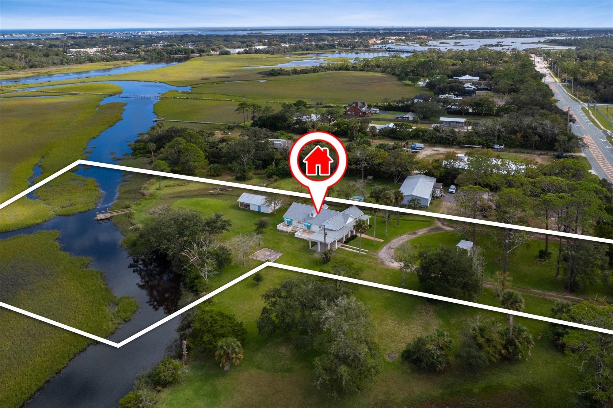 Welcome to your private waterfront sanctuary—an extraordinary opportunity to own over 3 acres of pristine Old Florida beauty just minutes from Historic Downtown St. Augustine and a short drive to the beach. Nestled along the peaceful marshfront of the San Sebastian River, this 1938 residence sits on 3. 09 acres. 3040 Lewis Speedway is offered separately as a deeded, buildable 1-acre parcel, offering future expansion, investment, or a multi-generational estate Blending historic charm with upgraded living, the 4-bedroom, 2-bath home showcases character-filled spaces and amazing natural views. A spacious living room with a rustic stone fireplace sets the tone for relaxed gatherings, while the renovated kitchen features a double oven, center island, and open flow to the dining and family rooms—designed for both entertaining and everyday ease. Step through double glass doors to a generous 45’ x 11’ deck, the perfect spot for sunrise coffees or evening grilling, all with panoramic marsh views as your backdrop. The private dock invites you to launch a kayak, cast a line, or simply soak in the quiet beauty of your surroundings. A separate workshop offers space for hobbies, boat and RV covered parking, creative pursuits, or extra storage. Whether you're seeking room to grow, space to build, or a peaceful waterfront retreat, this rare property delivers a timeless charm, growth potential, and a coveted location. Experience the best of coastal Florida living in a setting that feels worlds away—yet close to everything. Welcome home!