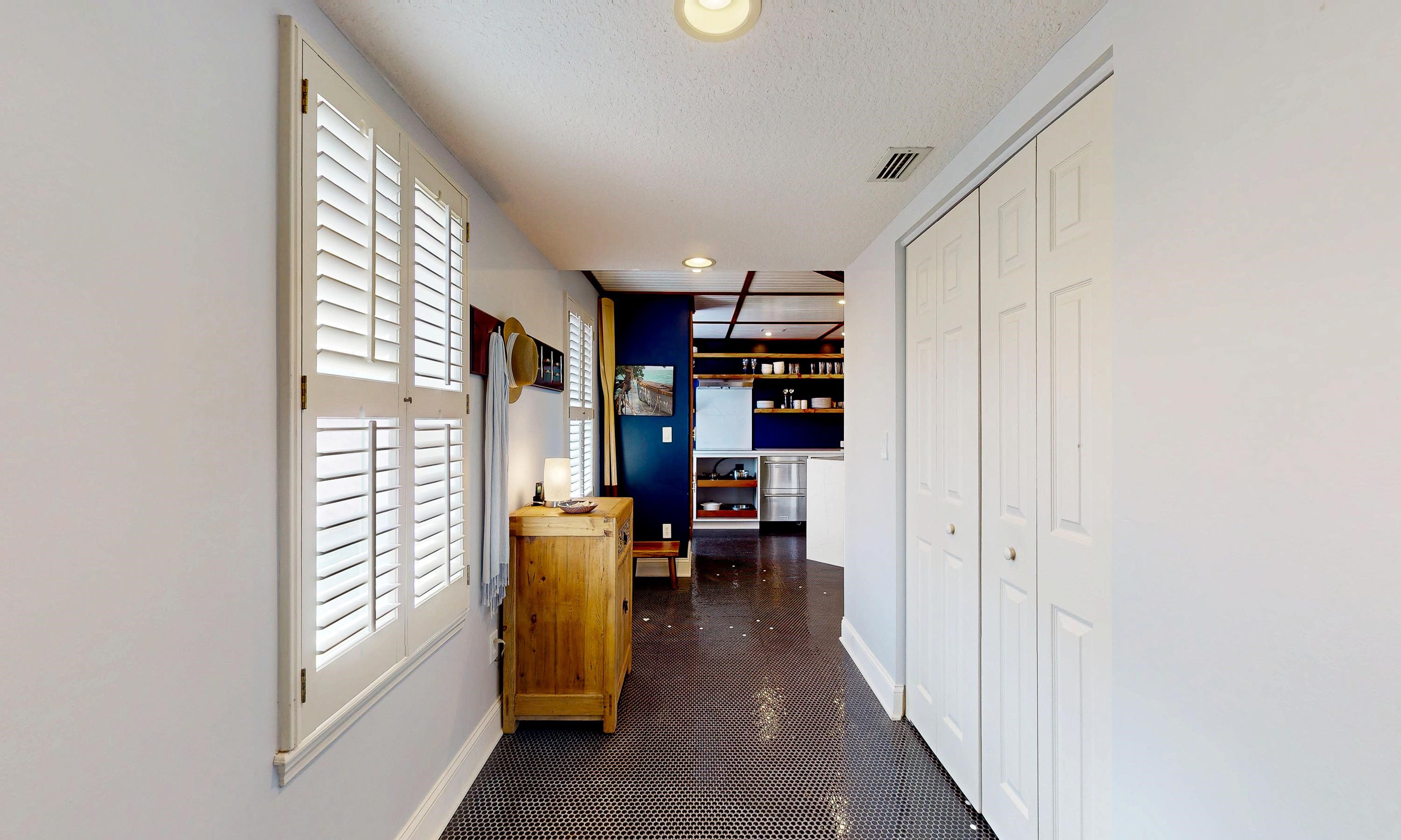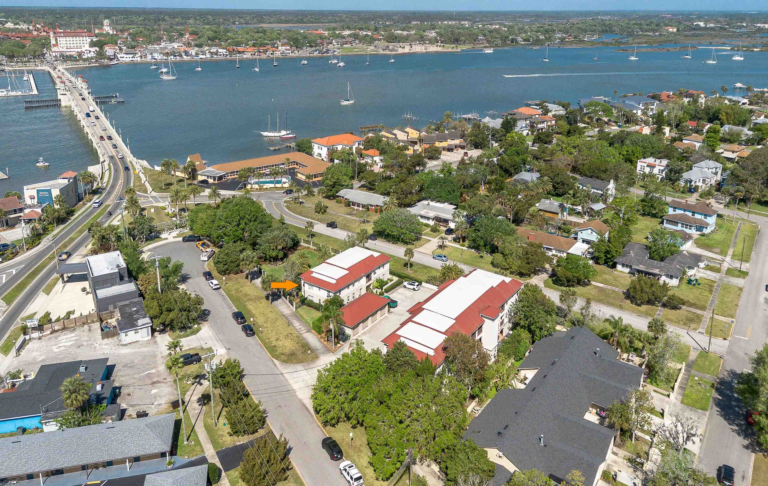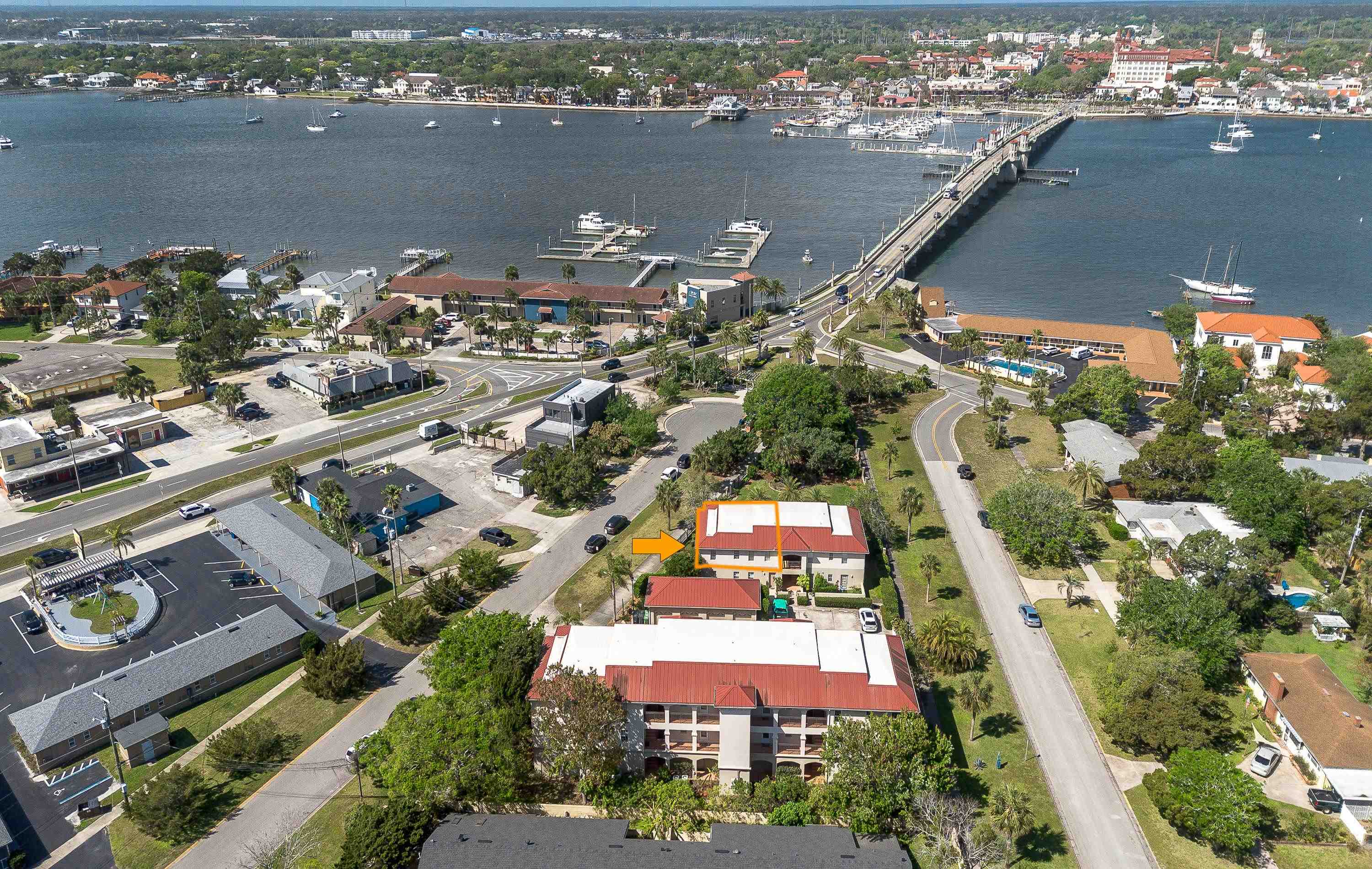 Positioned just beyond the iconic Bridge of Lions, this thoughtfully renovated residence offers a rare opportunity to enjoy walkable access to historic downtown St. Augustine—without the noise, congestion, or parking challenges that often come with living directly within it. Inside, the home balances timeless coastal character with modern refinement. The updated kitchen blends form and function with quartz countertops, Bosch appliances, rich walnut shelving, hardwood counters, soft-close cabinetry, and subtle nautical tile accents that reflect the area’s maritime heritage. Warm, curated lighting and rich hardwood flooring throughout create a relaxed yet sophisticated atmosphere. A split floor plan provides flexibility and privacy, ideal for hosting guests or creating a quiet retreat. The primary suite features a generous walk-in closet and a well-appointed en-suite bath with double vanities, a garden tub, and a separate walk-in shower. An oversized balcony overlooks a tranquil cedar garden, offering a peaceful outdoor space that feels tucked away while remaining incredibly connected. A private one-car garage adds everyday convenience. From this location, enjoy a short, scenic walk into the heart of St. Augustine’s historic district, where dining, shopping, galleries, and year-round events—including Nights of Lights—are all within easy reach. This is lock-and-leave living designed for buyers who value location, lifestyle, and character over excess. SHORT TERM RENTALS are not allowed!