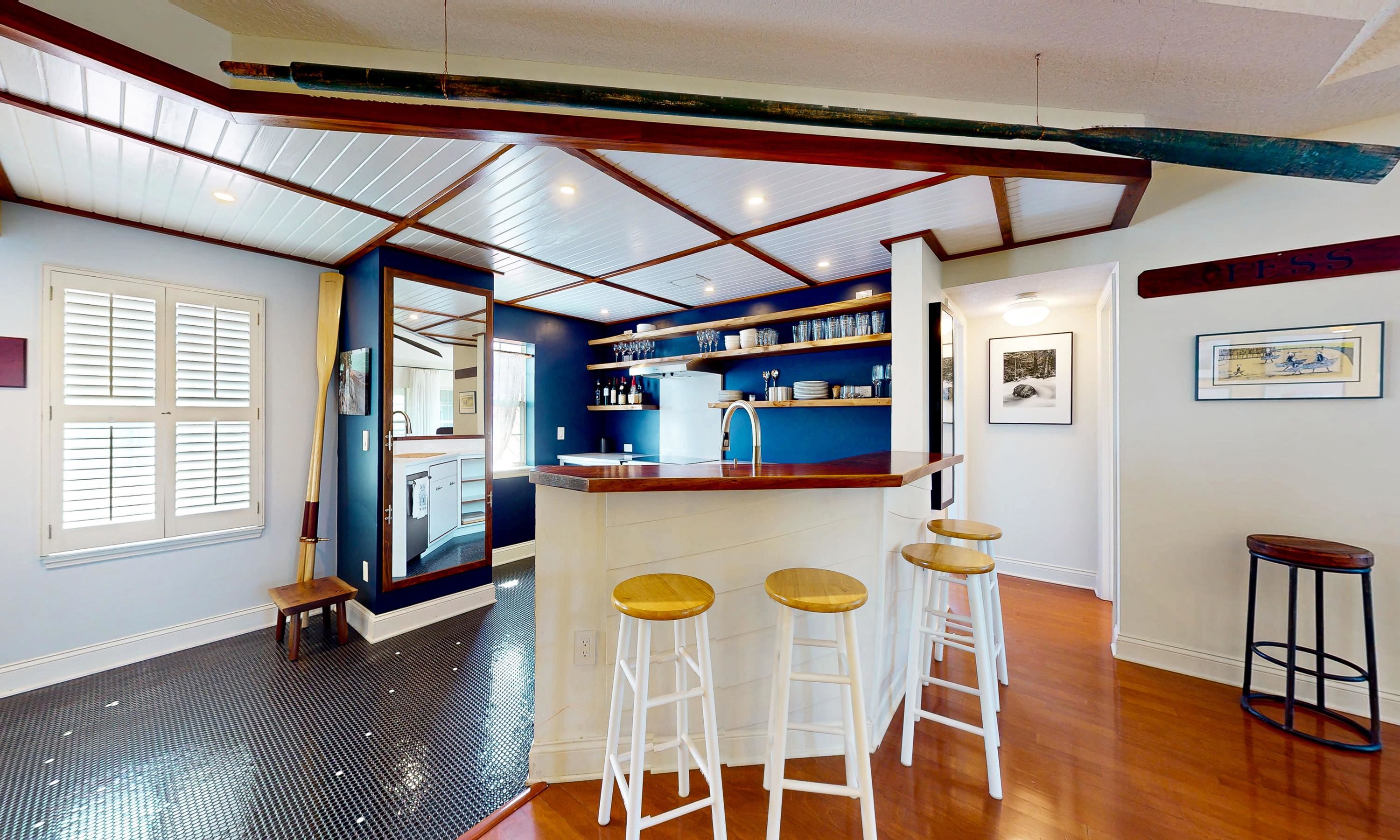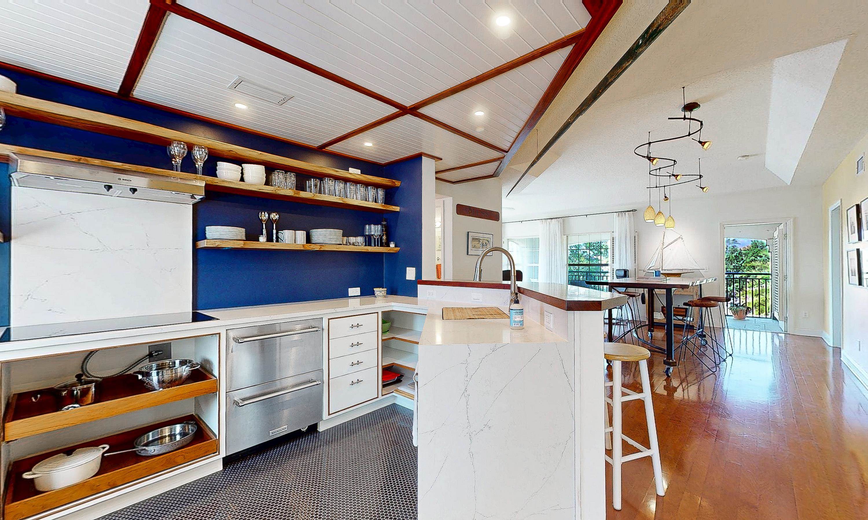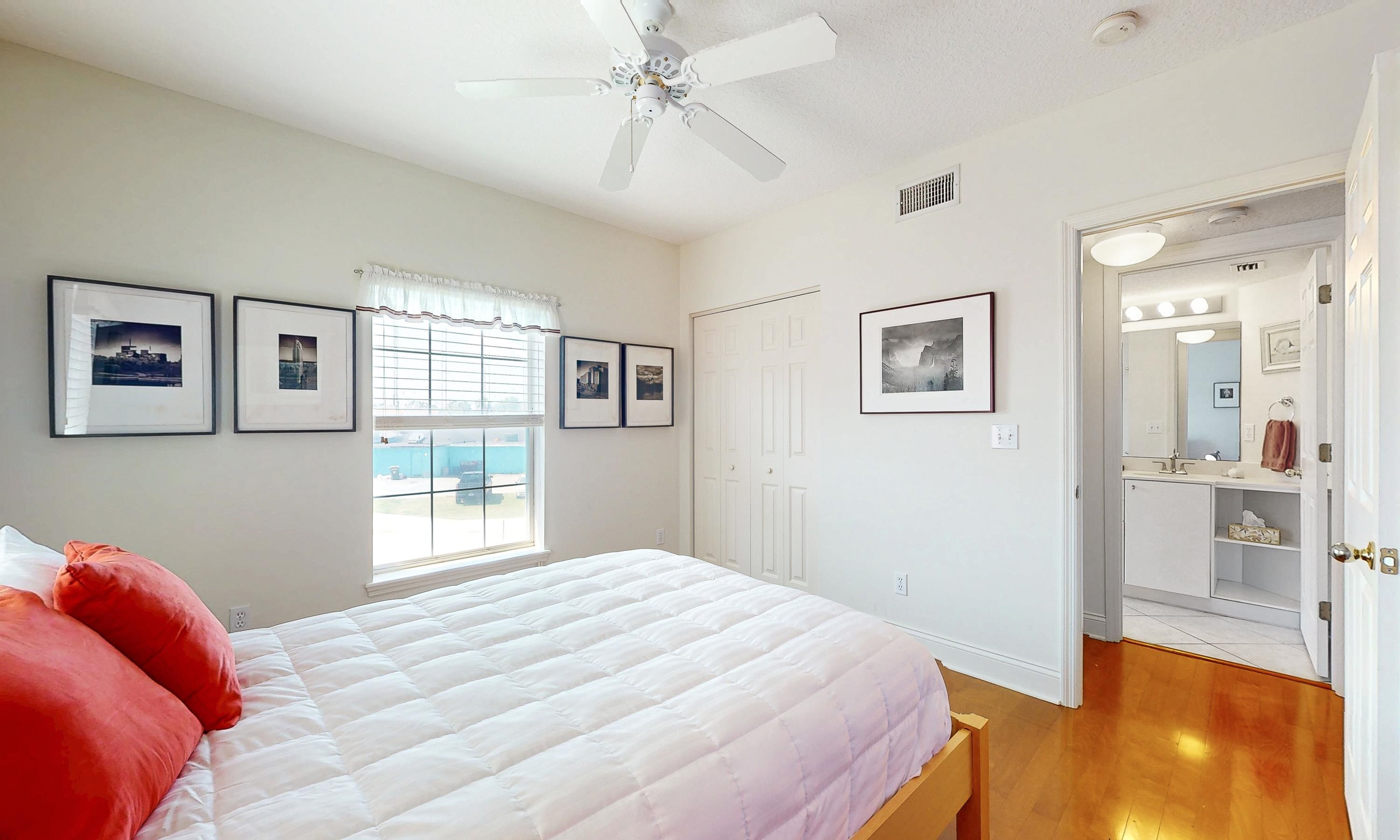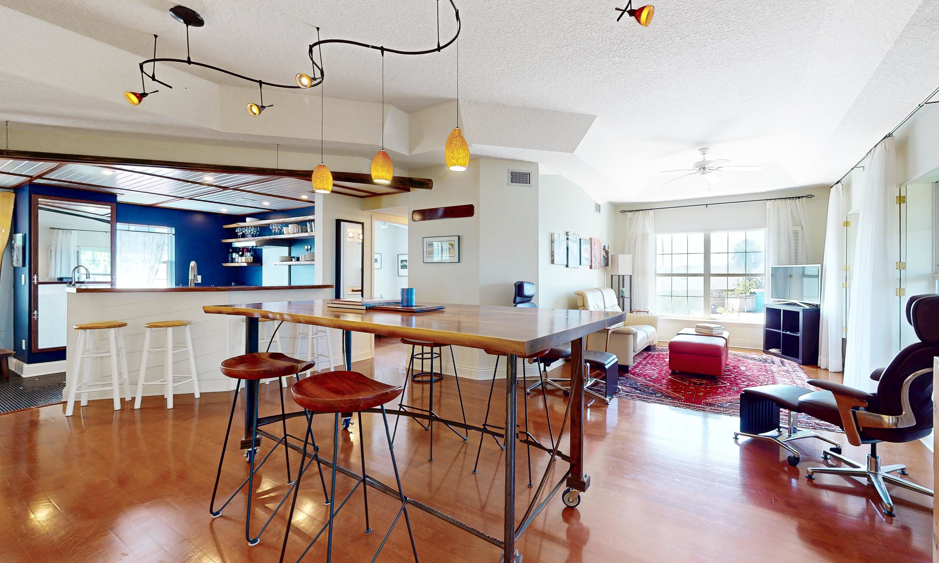 Positioned just beyond the iconic Bridge of Lions, this thoughtfully renovated residence offers a rare opportunity to enjoy walkable access to historic downtown St. Augustine—without the noise, congestion, or parking challenges that often come with living directly within it. Inside, the home balances timeless coastal character with modern refinement. The updated kitchen blends form and function with quartz countertops, Bosch appliances, rich walnut shelving, hardwood counters, soft-close cabinetry, and subtle nautical tile accents that reflect the area’s maritime heritage. Warm, curated lighting and rich hardwood flooring throughout create a relaxed yet sophisticated atmosphere. A split floor plan provides flexibility and privacy, ideal for hosting guests or creating a quiet retreat. The primary suite features a generous walk-in closet and a well-appointed en-suite bath with double vanities, a garden tub, and a separate walk-in shower. An oversized balcony overlooks a tranquil cedar garden, offering a peaceful outdoor space that feels tucked away while remaining incredibly connected. A private one-car garage adds everyday convenience. From this location, enjoy a short, scenic walk into the heart of St. Augustine’s historic district, where dining, shopping, galleries, and year-round events—including Nights of Lights—are all within easy reach. This is lock-and-leave living designed for buyers who value location, lifestyle, and character over excess. SHORT TERM RENTALS are not allowed!