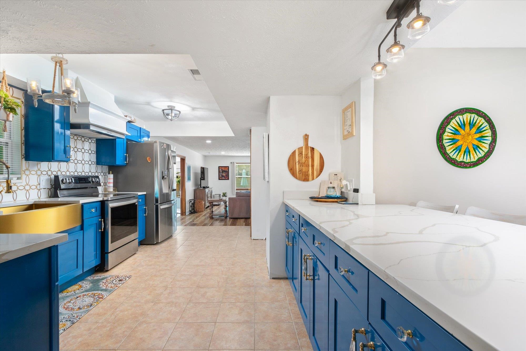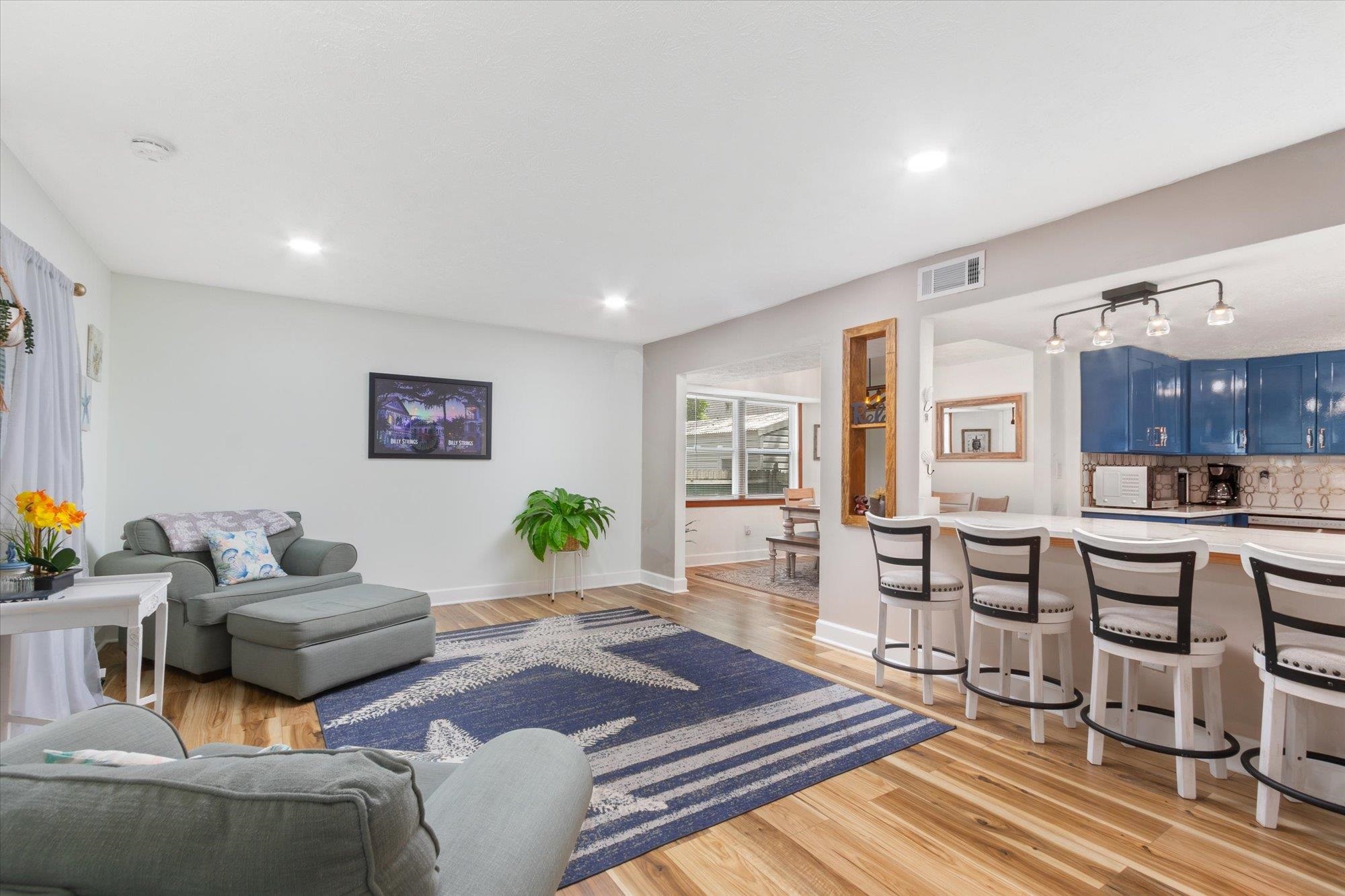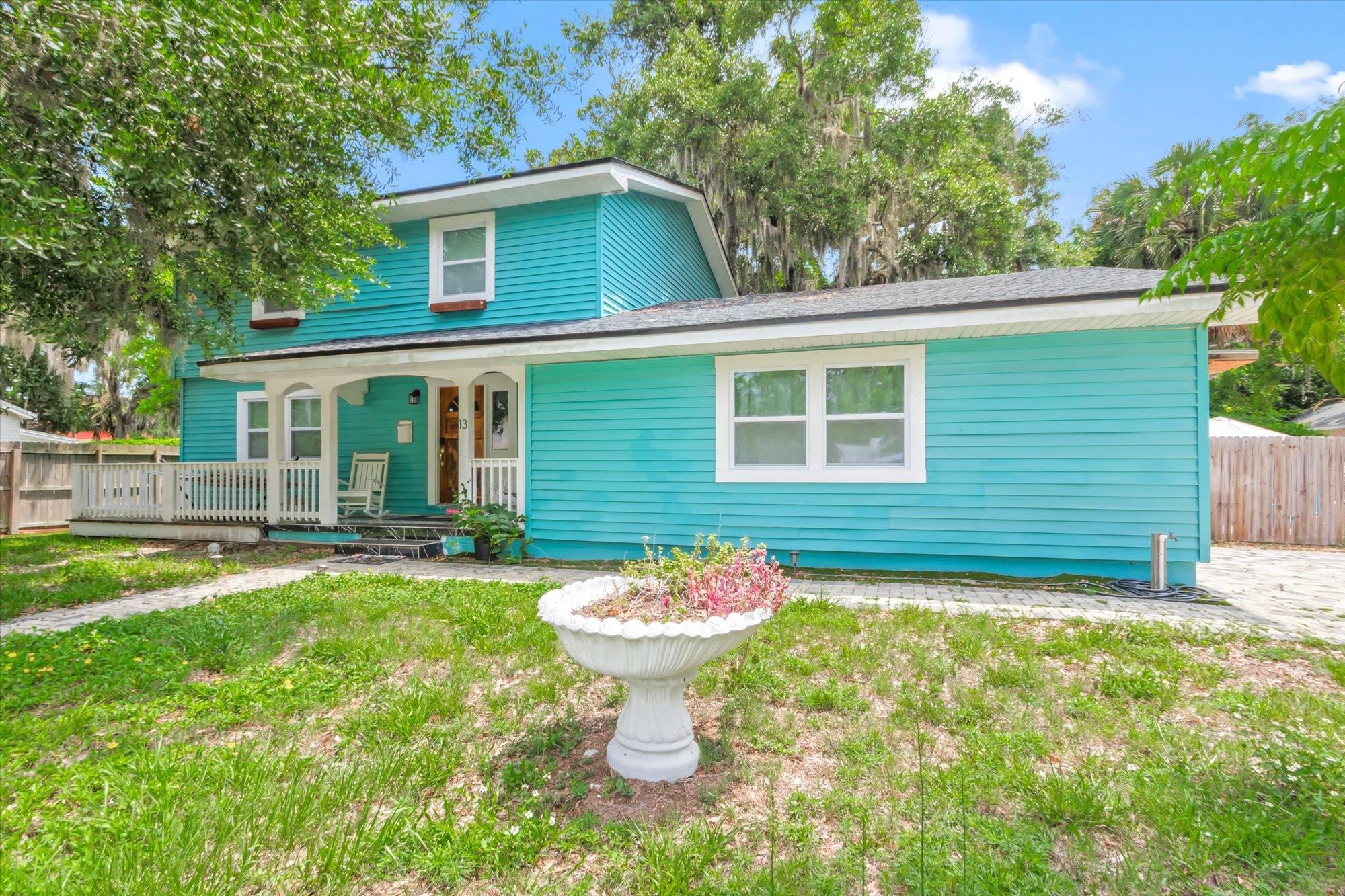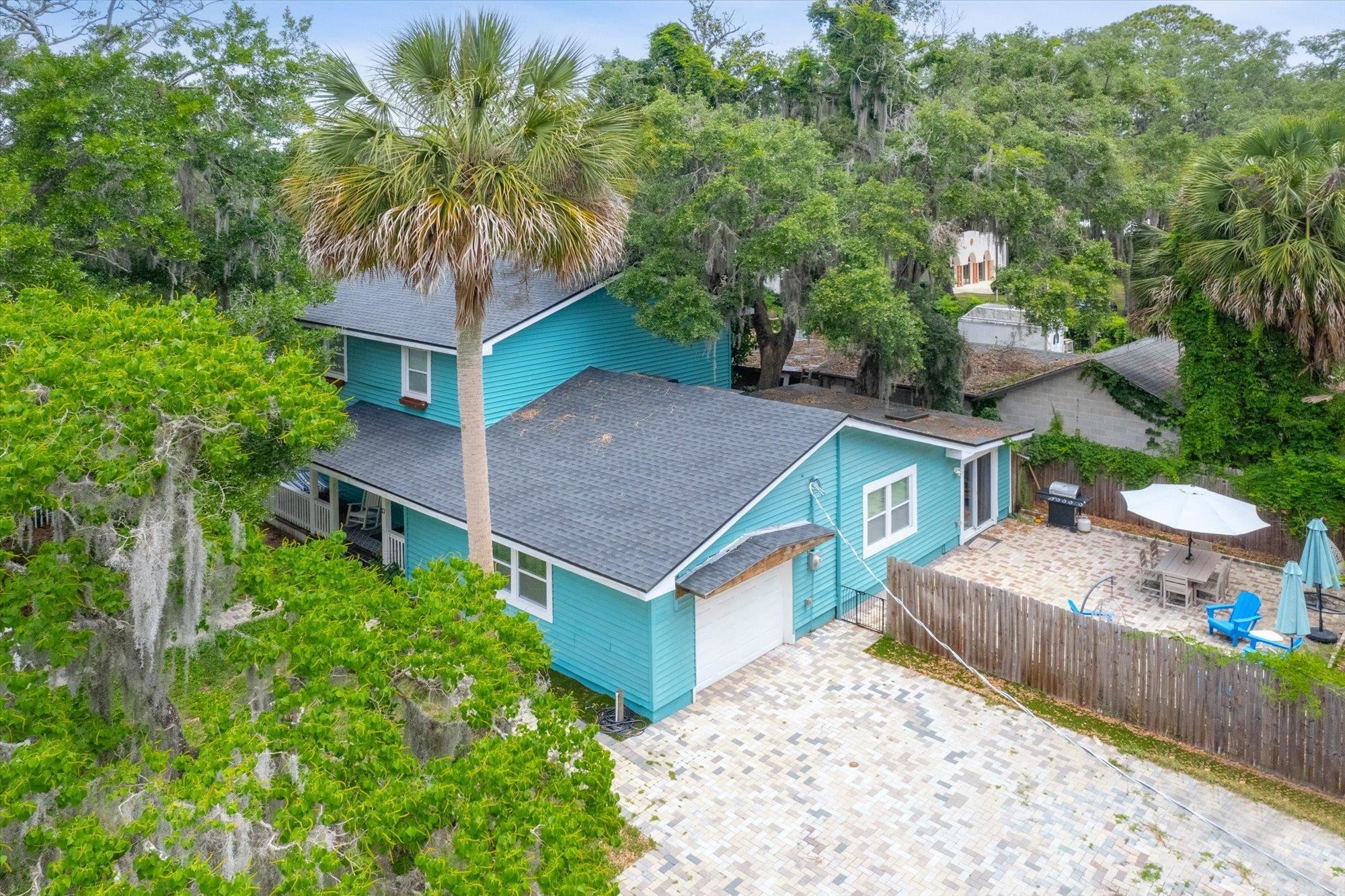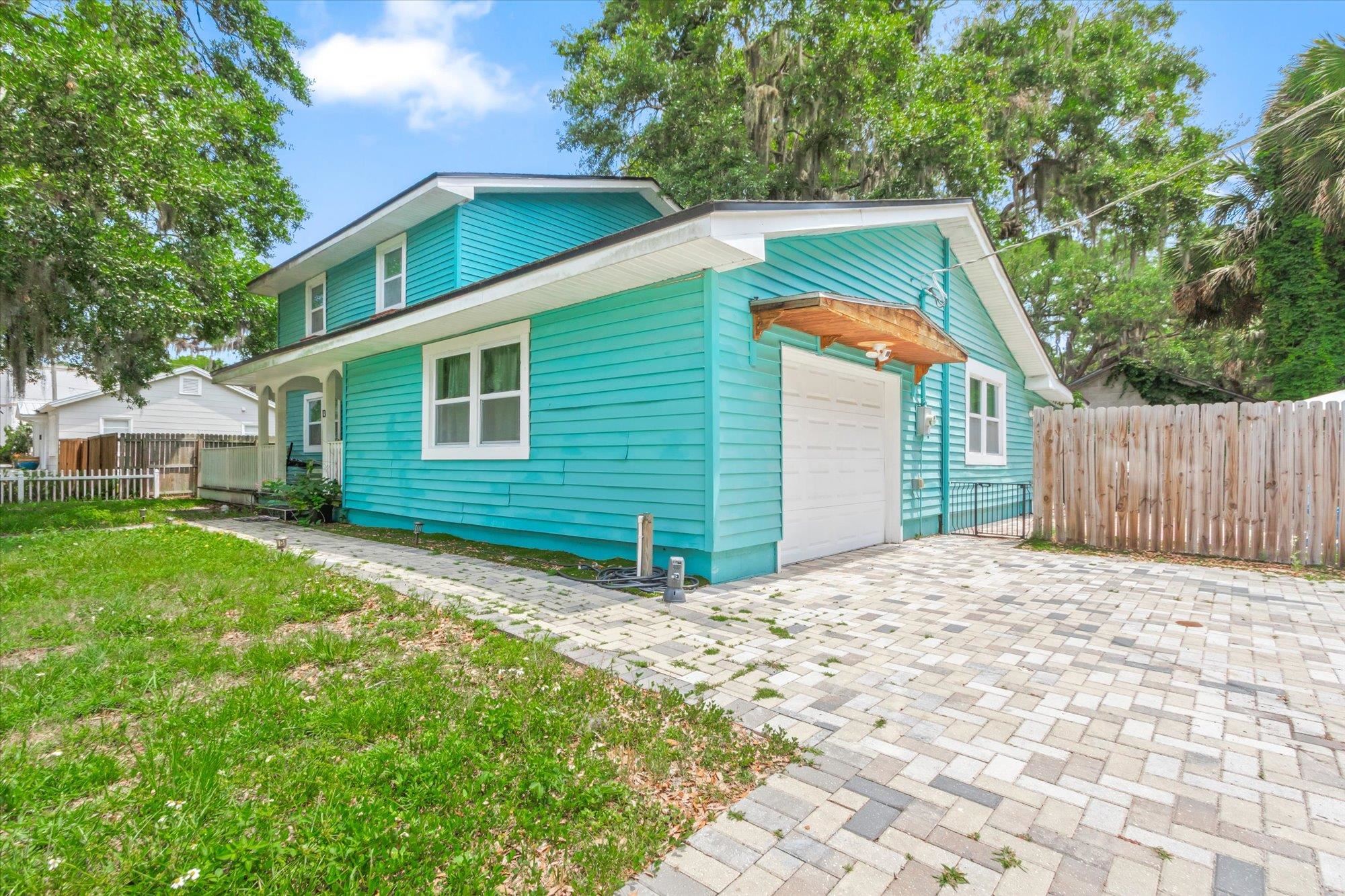 Located just minutes from the shores of Vilano Beach and walking distance to Historic Downtown St. Augustine, this spacious 4-bedroom, 2. 5-bathroom home offers 2, 164 square feet of thoughtfully designed living space with no HOA restrictions within the highly sought Fullerwood district. Step inside to a welcoming living room at the entry, perfect for greeting guests or enjoying a quiet moment. The heart of the home lies at the back, where the kitchen, dining room, and dual family rooms create an ideal layout for both everyday living and entertaining. The kitchen features striking blue cabinetry with gold accents, stainless steel appliances, and a breakfast bar for casual dining. Just off the kitchen, a cozy family room flows into a sunken second family room—offering added space for relaxing or hosting. Upstairs, you’ll find all four bedrooms, including the primary suite complete with a private en suite bath featuring a walk-in shower. The additional bedrooms offer flexibility for family, guests, or home office needs. Outdoors, enjoy the best of Florida living with a paver patio on one side and a convenient outdoor shower on the other—perfect for rinsing off after a day at the beach. Whether you’re looking for a full-time residence or a beach-close retreat, this home combines style, space, and location in one exceptional package. Enjoy!