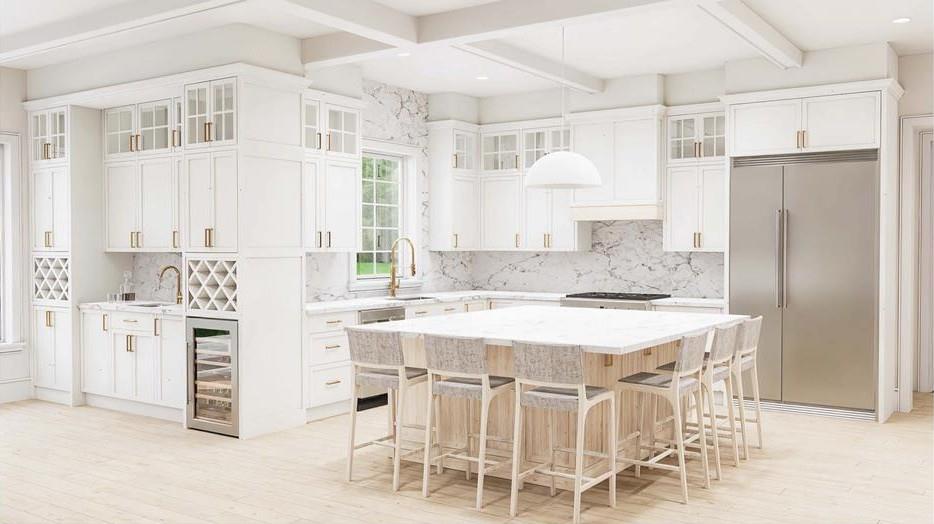 TO BE COMPLETED FALL 2025. The Laurel Collection by Marrcon. New Luxury Construction located in the heart of the North Fork's Town of Southold. The Laurel model is situated on . 80 acres & boasts 3, 960SF of living space with 4 bedrooms and 4. 5 baths. . The Laurel combines clean lines of modern design with the allure of the Hamptons. This home comes with Authentic Western Red Cedar Shingle siding and a stucco accented stair tower that makes the grand foyer rise into the second story. There are 9ft high ceilings on the first and second floors in addition to vaulted and coffered ceiling details with 8-1/2” white oak floors throughout. Enjoy two first-floor primary bedroom suites w/ generous walk-in closets and private access to the masonry patio opening to the backyard pool and garden. The great room contains 46” linear gas fireplace & is open to the well-appointed Kitchen which includes custom inset cabinets, marble countertops, and high-end GE Monogram appliances with a wet bar. The second floor has two guest bedrooms both ensuite with marble baths, and custom vanities. The second floor also contains a beautiful family room and wet bar with access to a large balcony includes IPE decking and a stone fireplace overlooking the backyard. The basement can be finished to suit which includes 9’ ceilings. Step outside to the entertainment-ready backyard featuring a 20X40’ heated gunite saltwater pool with a Napa Stone marble patio. The secluded backyard includes custom-designed landscaping and masonry by our renowned Landscape Architect.