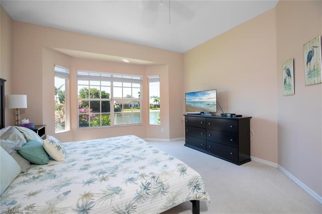 Lake view villa in the heart of Naples is on a quiet street in the Walden Shores neighborhood of Walden Oaks. This 3 bedroom/ 2 bath home has vaulted ceilings, is comfortably furnished, and features water views from the large living/dining area, the inviting primary suite, as well as the private screened lanai. There is also an attached two car garage for your vehicle. Walden Oaks amenities include a clubhouse with resort style pool, pickleball/tennis courts, and a walking path around the perimeter of the community.