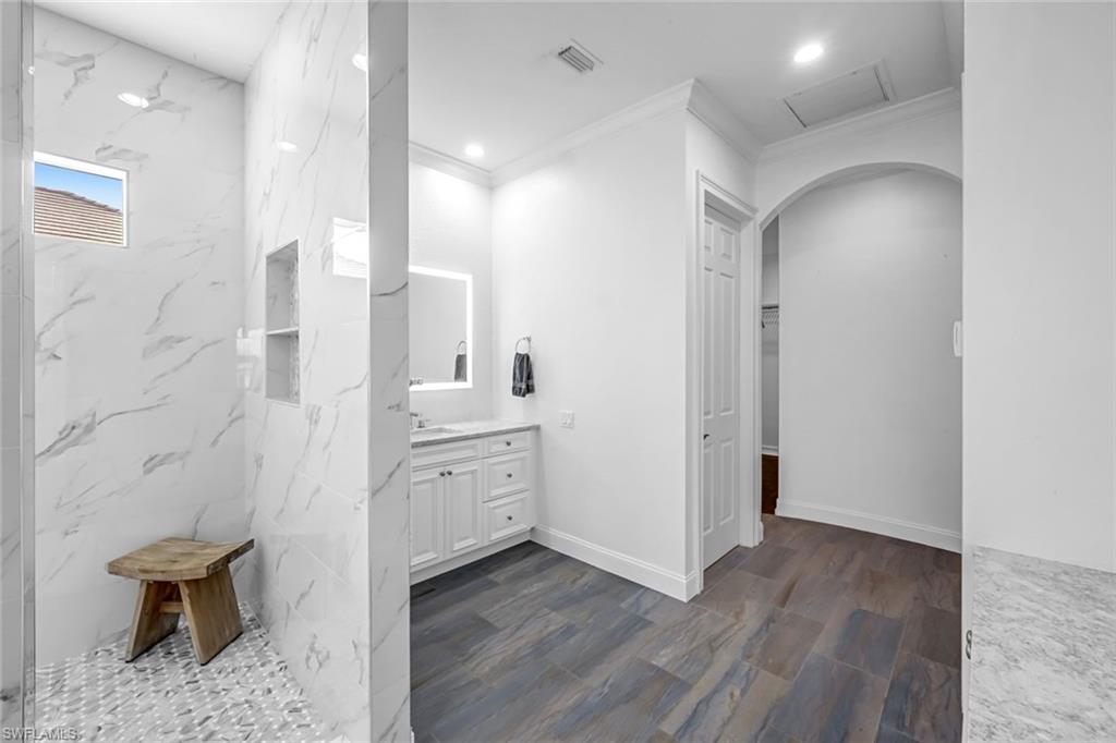 Welcome to a rare offering in the prestigious, guard-gated enclave of Barefoot Beach—where luxury living meets effortless coastal elegance. This charming waterfront estate in Southport captures the essence of refined Florida living, with direct Gulf access and timeless design details throughout. Step through a dramatic two-story grand foyer into light-filled interiors that blend coastal charm with modern sophistication. The chef’s kitchen is a culinary masterpiece, featuring premium appliances, custom cabinetry, and seamless flow into a spacious family room designed for elevated entertaining. Host elegant dinners in the formal dining room or enjoy casual gatherings in the expansive outdoor living area. Outdoors, indulge in resort-style living with a private pool and elevated spa, fully equipped outdoor kitchen with built-in BBQ, granite countertops, wine cooler, and big screen TV—all set against sweeping views of the bay. Your private boat dock with lift makes it easy to explore the Gulf in style. Inside, unwind in the formal living room by the fireplace, retreat to the reading room or executive office, or entertain in the game room designed for leisure and luxury. With four bedrooms and beautifully appointed baths, this home offers the perfect blend of comfort and privacy. Newly landscaped grounds enhance the home’s curb appeal, while the proximity to world-renowned Barefoot Beach ensures the ultimate in beachfront living. Ideally situated between Naples and Fort Myers, residents enjoy immediate access to fine dining, upscale shopping, and top-tier medical facilities. This is more than a home—it’s a lifestyle. Discover unparalleled waterfront elegance in one of Southwest Florida’s most exclusive communities.