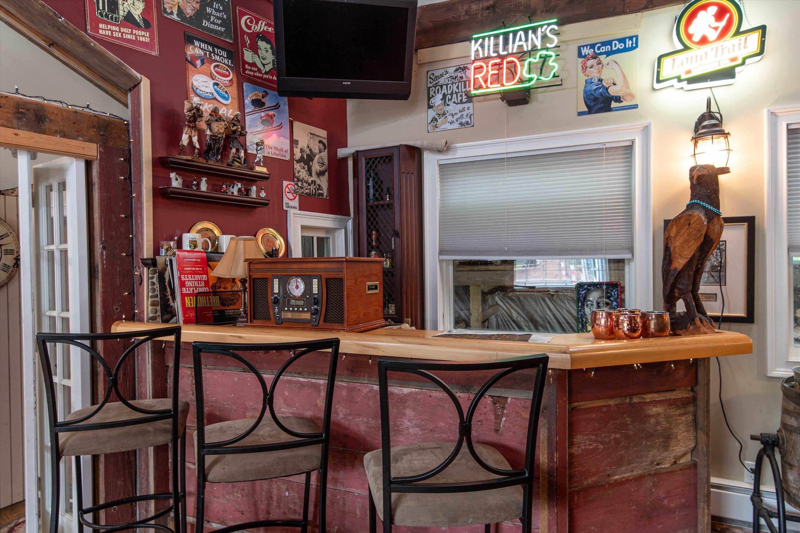 Located in the heart of downtown Wilmington and just minutes from Mount Snow and Harriman Reservoir, this exceptional mixed-use property offers incredible flexibility, income potential, and style. Currently operating as a successful VRBO rental that sleeps 12, this all-season retreat includes multiple living areas, a hot tub, sauna, and a stunning vaulted post-and-beam loft with a bar, pool table, and additional sleeping space—perfect for hosting, relaxing, or entertaining guests. All contents of the residence are included with the sale. At the front of the building, approximately 800 sq ft of high-visibility commercial space is occupied by an established business, making this property ideal for investors, entrepreneurs, or those looking to combine lifestyle and income. Great location for a re-locating professional. With a prime location within walking distance to restaurants, shops, and trails; convenience is unmatched. The property underwent an extensive transformation by the owner who is also an award winning architect, blending rustic Vermont charm with modern comfort. Exposed beams, wide plank floors, deck and multiple bedrooms create a warm and inviting atmosphere across multiple spacious living zones.