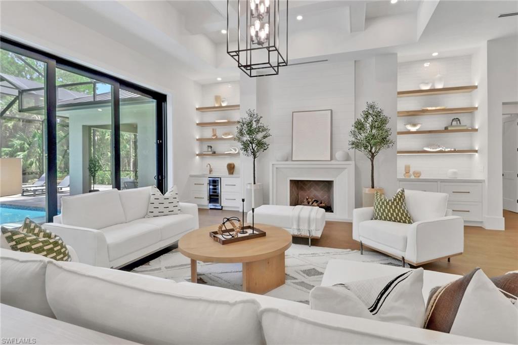Nestled on 2. 5 acres of 100% upland in Golden Gate Estates, this home offers luxury, privacy, and functionality. Featuring an open layout with soaring ceilings, modern finishes, and a living room with a custom feature wall, gas fireplace, wet bar, and built-ins. The kitchen includes a hidden prep area and walk-in pantry. The study with closet works as a guest room. The owner’s suite has a spa bath, outdoor shower, and direct access to the screened pool with fireplace and grill. No HOA and plenty of land to expand.
