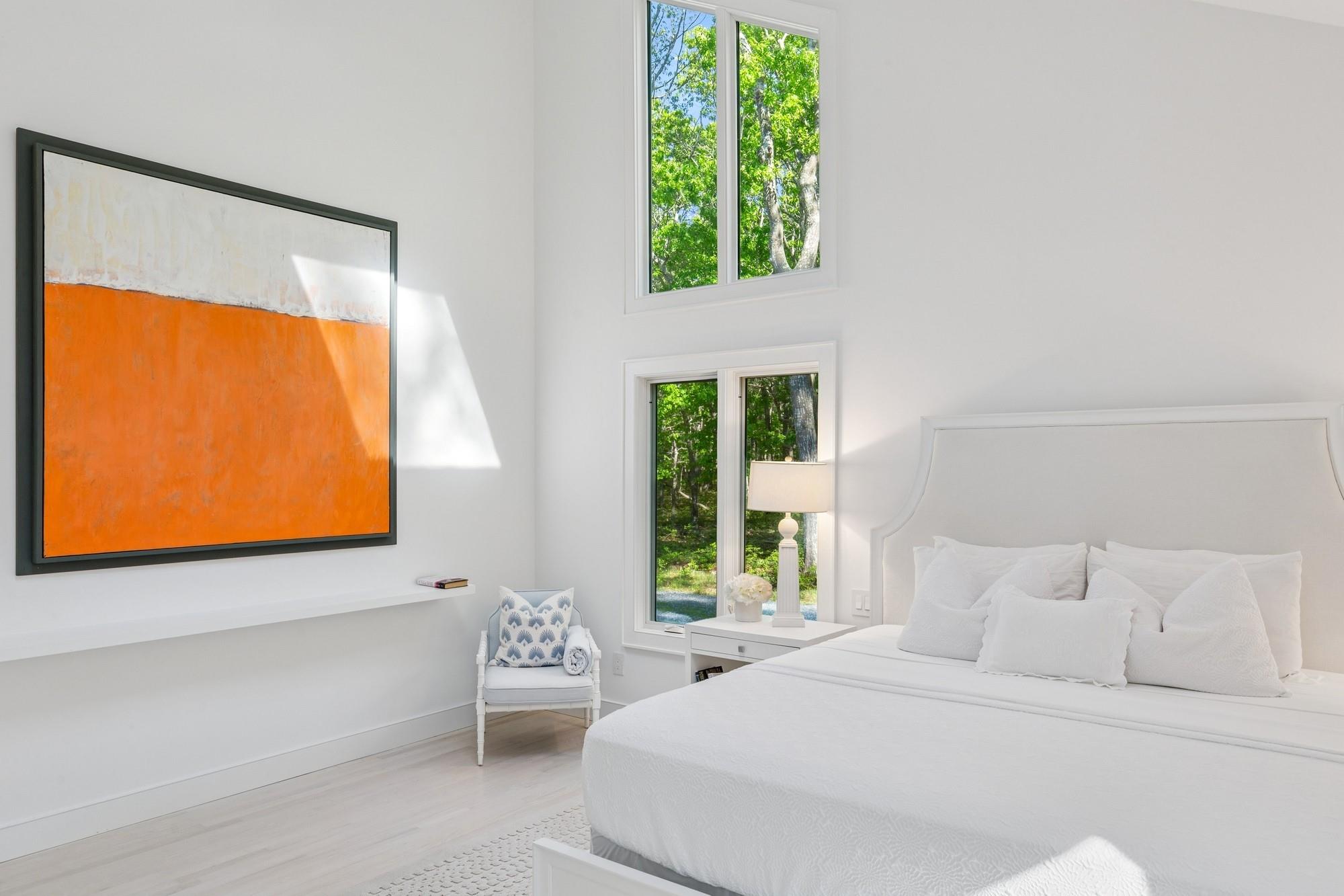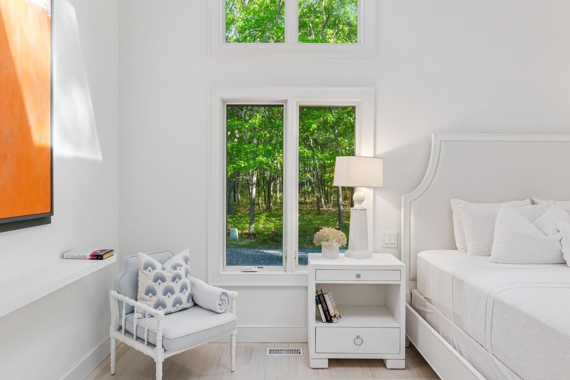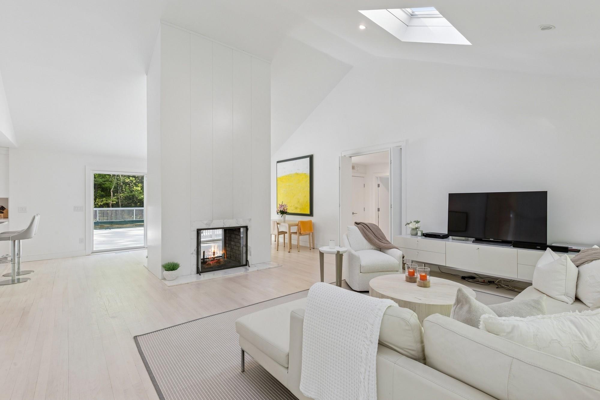 Stylish Sagaponack Summer Rental Crisp and clean as a freshly starched and ironed white shirt! Sitting on over one very private acre in the highly desirable neighborhood of Sagaponack, less than 10 minutes to the ocean (and only 2 minutes to Wolffer's!) is this renowned Interior Designer's own immaculate recently renovated (looks like new construction) contemporary home with cathedral ceilings, dual-sided fireplace, a kitchen with all new Thermador appliances and Coastal Cabinets, an impressively large en-suite primary, two additional bedrooms, one of which can flex to an office. Beautiful and elegant outdoors, perfect for day and night with an expansive pool deck, in-ground heated pool, gorgeous new dining table and pool chaise lounges, and new au natural outdoor shower. Indoors and outdoors, day and night, the perfect home to relax and entertain, all summer long.