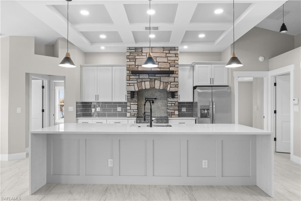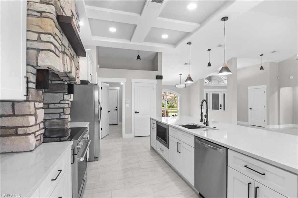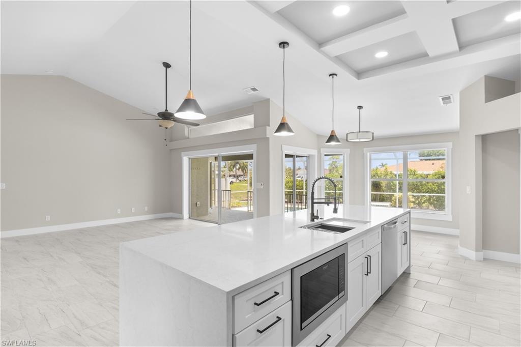 This remarkable just remodeled home in highly sought after Palaco Grande neighborhood is truly the benchmark of excellence featuring breathtaking kitchen with wood cabinets with 36 inch stove with beautiful stone hearth, quartz countertops, high end, stainless steel appliances, all beautiful brand new tile floors beautifully remodeled bathrooms is a must see , new roof 2022 . High efficiency AC system replaced three years ago, Gulf Stream Pool heat pump replaced 3years ago, new paint inside and out . This home has endless upgrades too many to list, City, water and sewer assessments paid in full . , And with its gorgeous neighborhood and prime, location, quick access to the veterans Bridge, gives you quick access to all the attractions of Cape Coral and Fort Myers, every amenity and adventure is within reach. , this home offers luxury and comfort you’ve been looking for.