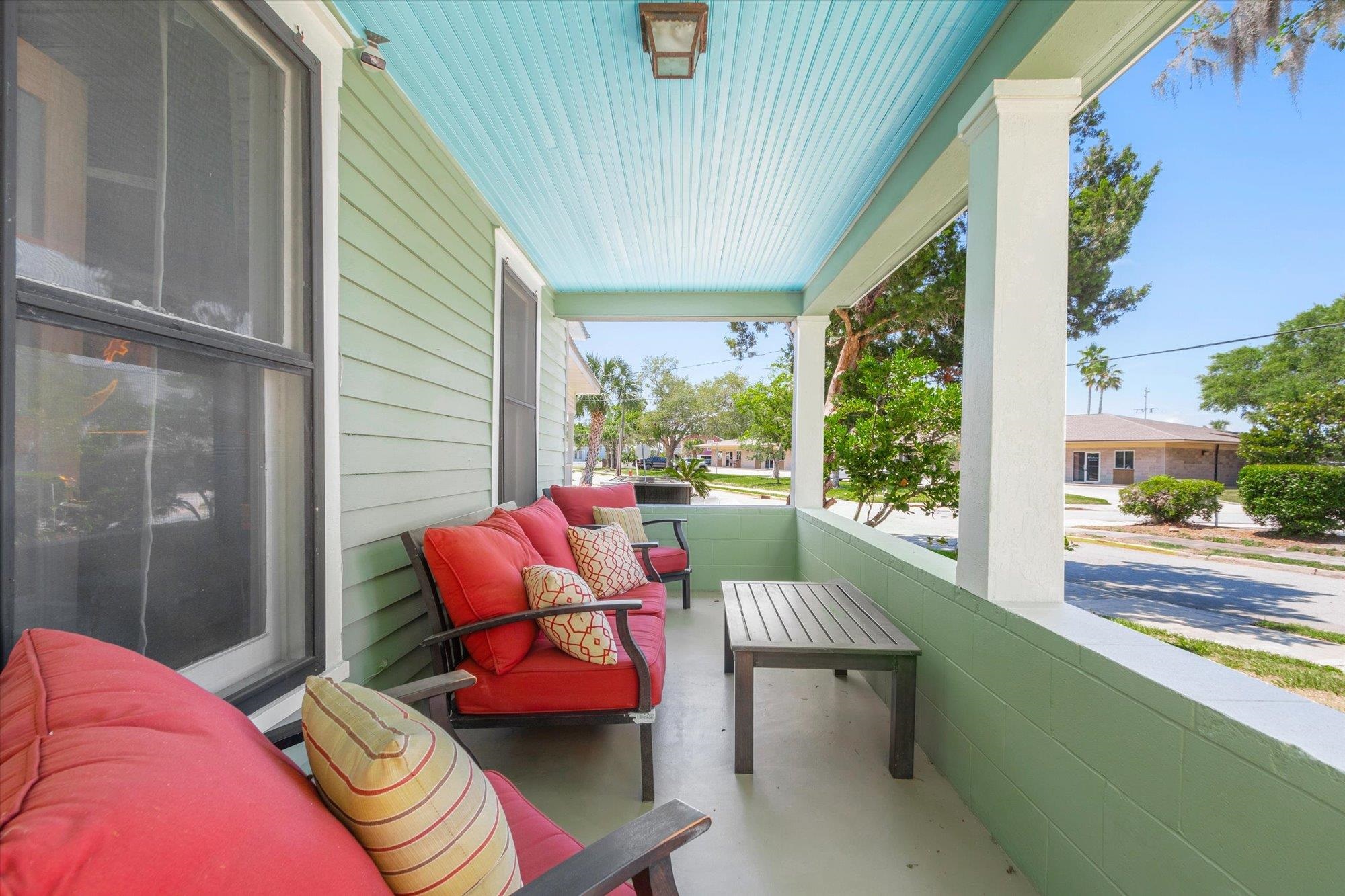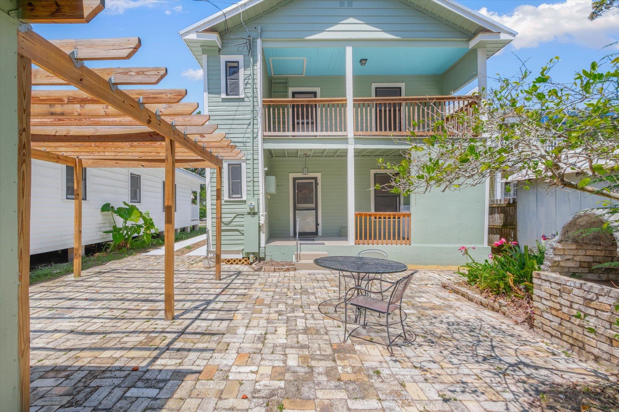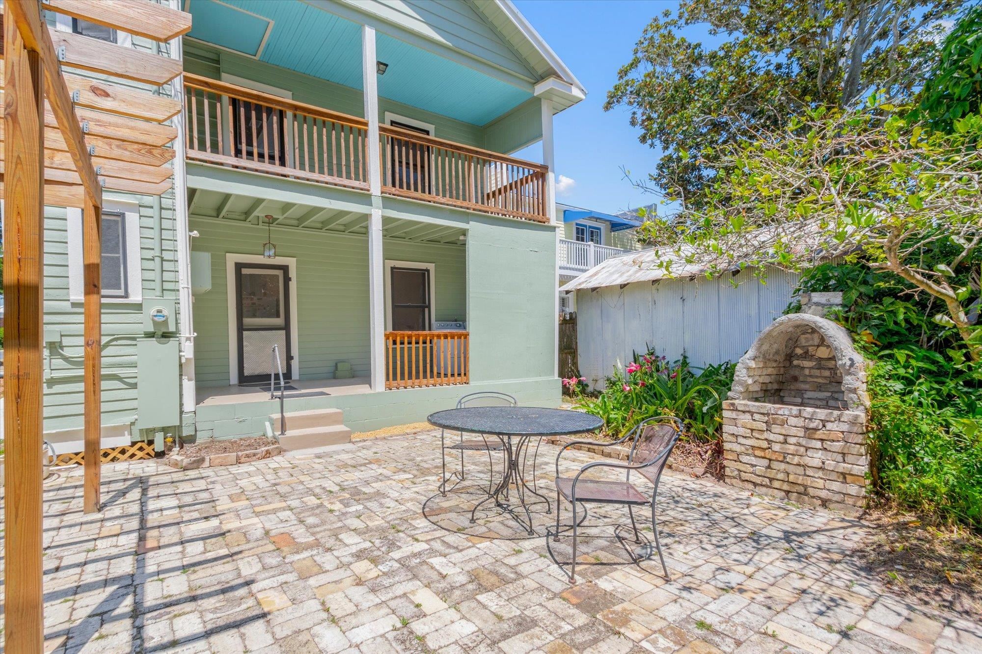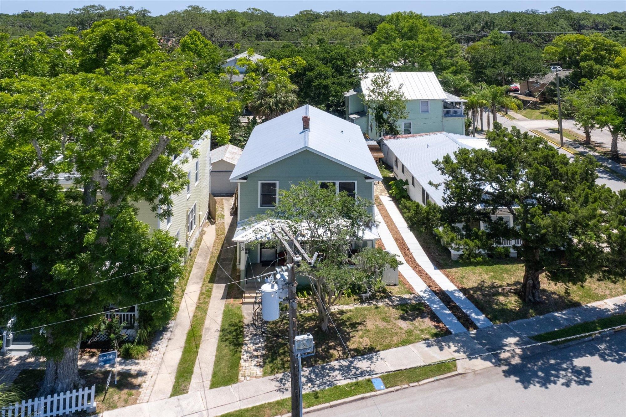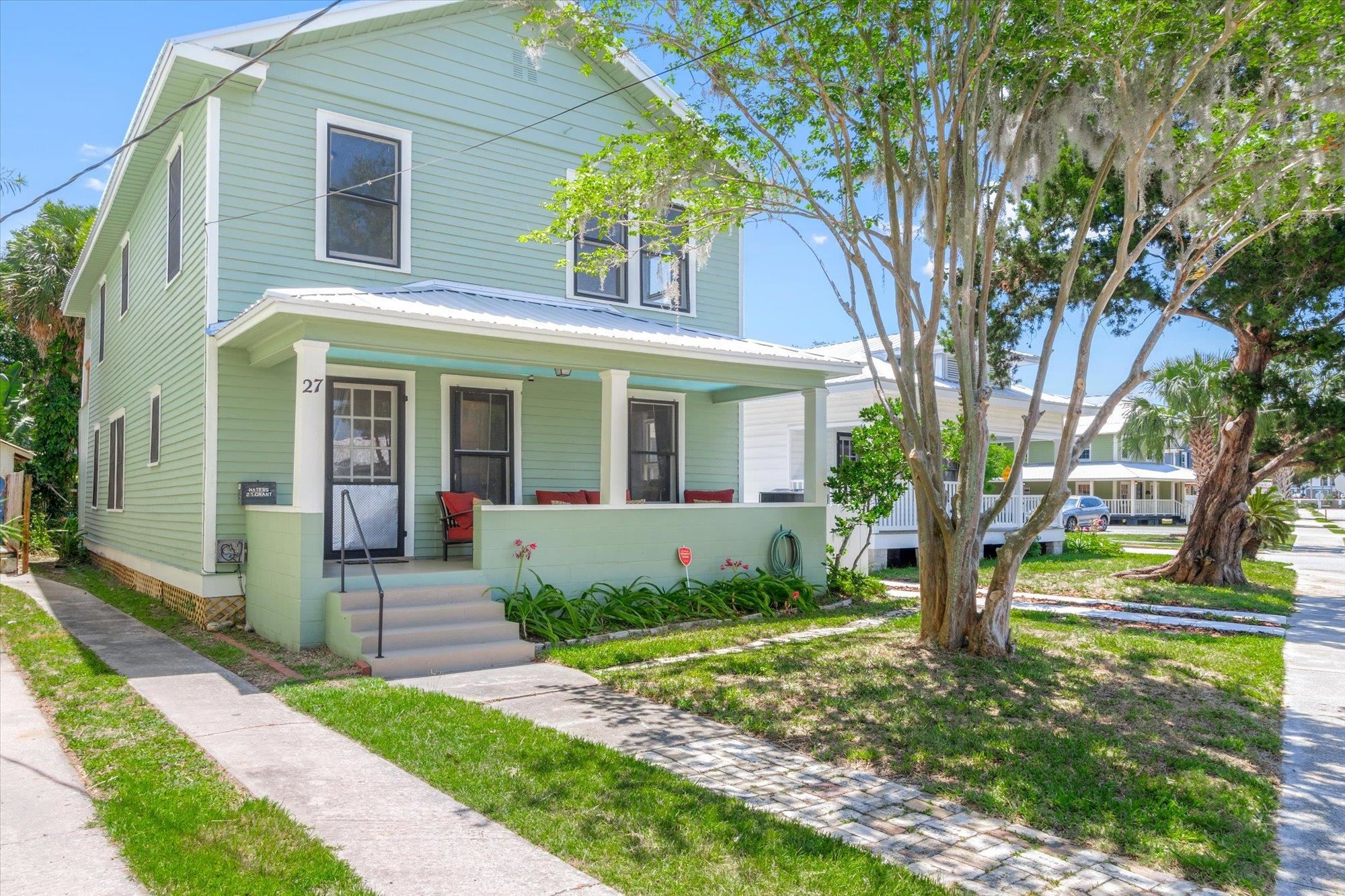 Welcome to this beautifully restored 1904 home in the heart of Historic St. Augustine, where vintage character and modern comfort live in perfect harmony. This four-bedroom, two-bathroom residence exudes warmth and charm from the moment you arrive, beginning with a classic front porch—perfect for morning coffee or relaxing evenings in the breeze. Inside, original wood flooring adds rich character throughout much of the home, complemented by thoughtful renovations that honor its historic roots. The inviting living room flows effortlessly into a formal dining room, creating the perfect space for entertaining or everyday living. Toward the back of the home, a full bath and well-appointed kitchen offer direct access to the rear porch and a paver-lined courtyard—an idyllic setting for al fresco dining or evenings under the stars. Two guest bedrooms are located on the main level, while upstairs, a spacious central landing leads to the private owner’s suite, complete with its own sitting area and access to a charming balcony. Across the hall, a generous family room provides flexible living space, alongside a cozy sitting room that connects to the fourth bedroom. A second full bathroom is located just beyond. Significant recent updates include a new metal roof, updated flooring, full rewiring and replumbing, structural pier enhancements, new ductwork, insulation, and fresh interior and exterior paint. A private driveway leads to a trellis-framed parking area at the rear of the property, offering both convenience and curb appeal. Just minutes from the beaches, historic downtown, local dining, boutique shopping, and everyday conveniences. Whether you're looking for a full-time residence, a weekend retreat, or a prime investment with nightly rental potential, this home offers a rare opportunity to own a piece of St. Augustine’s history—restored with care and ready to enjoy. Welcome home.