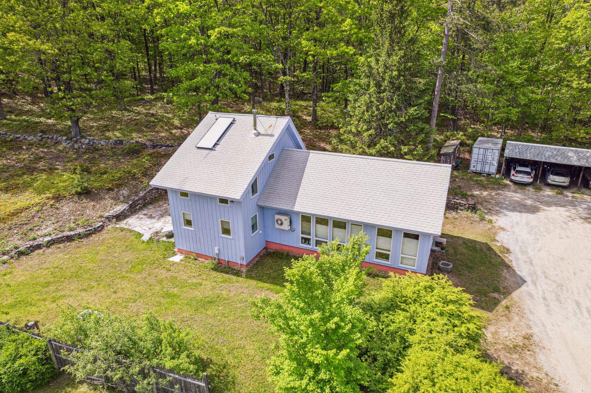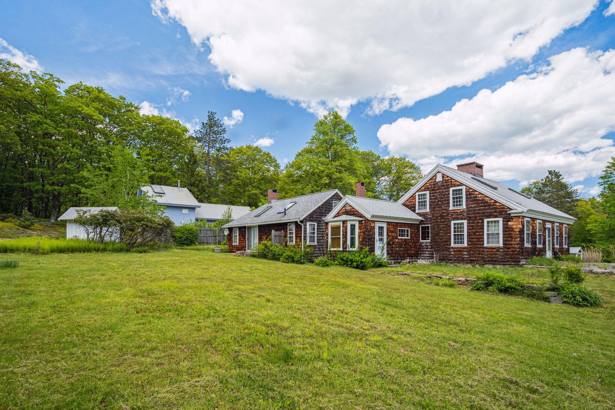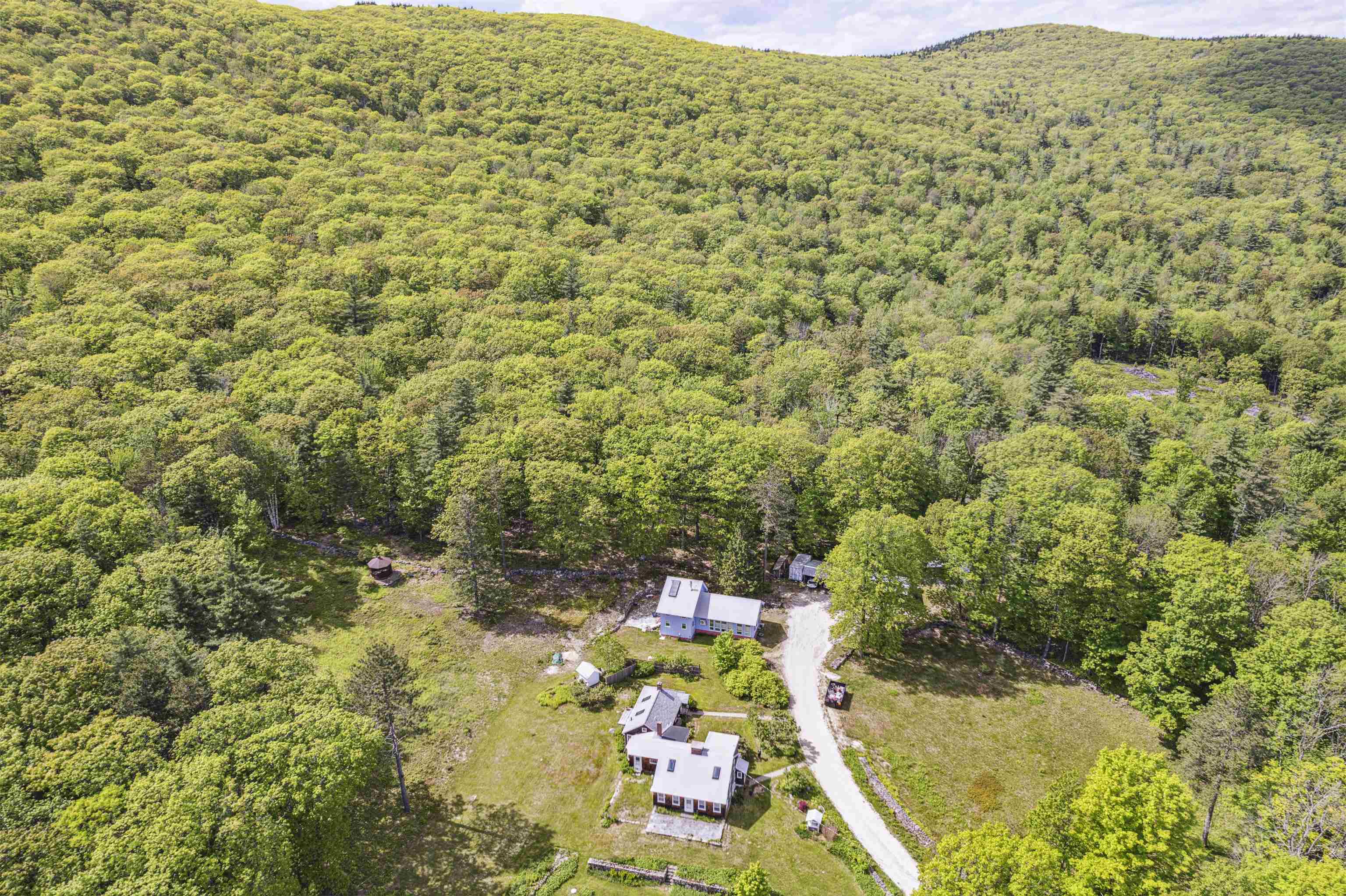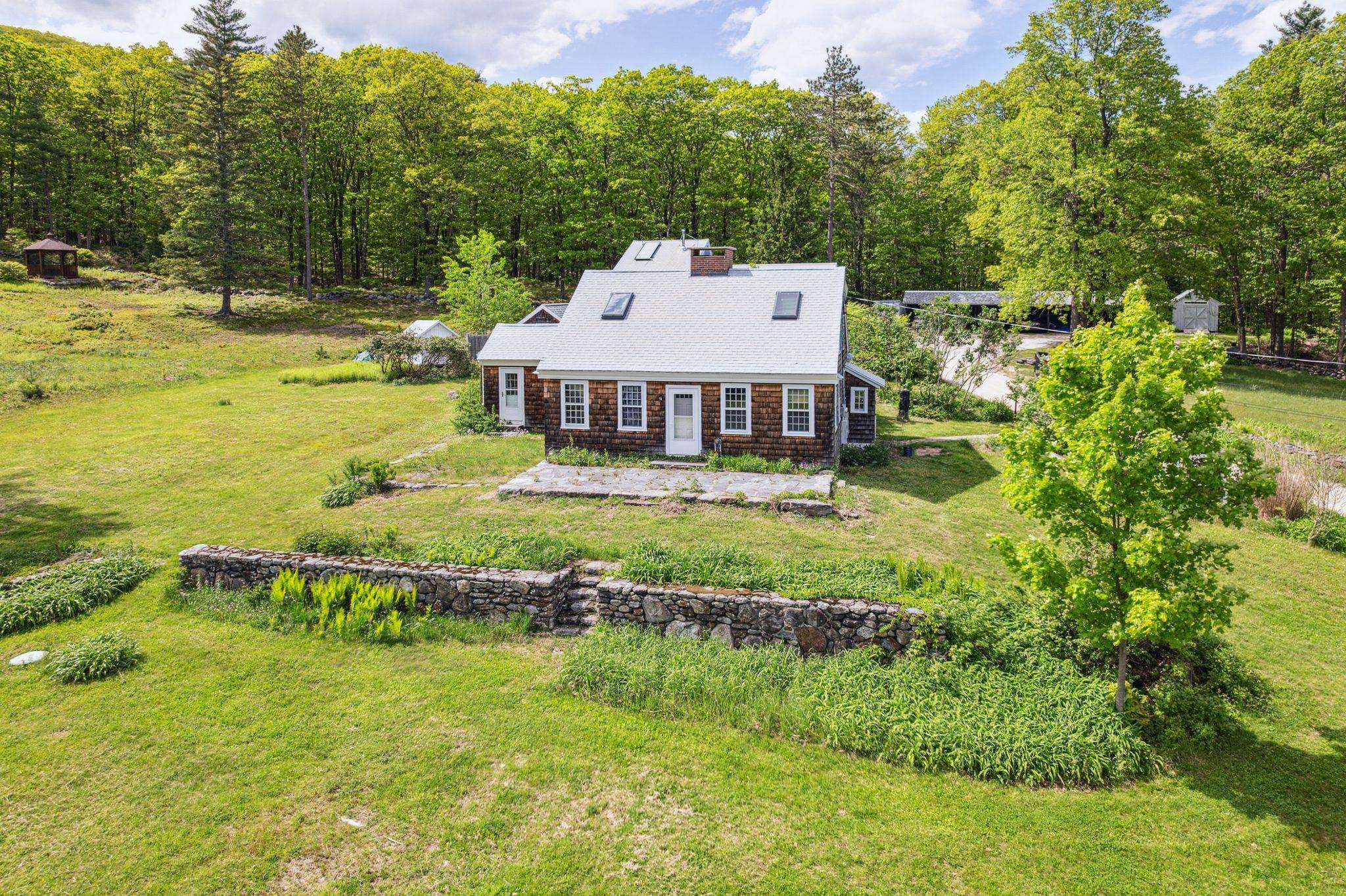At the quiet end of a town maintained gravel road, tucked away in a protected setting, lies a truly one-of-a-kind 313 acre property offering sweeping southern and southeastern views -- on a clear day, even the Boston skyline shimmers in the distance! The property has been in the same family for generations as a cherished family retreat. A 1936 Cape looks out over field and treetops to the expansive view. The living and dining room stretch across the front of the house, designed to frame the view and capture warm southern light. It offers three bedrooms and two baths, with additional space in the ell, which has been used as a studio apartment. In 2011, a beautifully designed, passive solar, energy efficient residence was built. It's perfect for guests or extended family! Both homes are equipped with automatic standby generators and share a well and septic system. There's ample storage in outbuildings plus storage for six vehicles. The land itself is a treasure. With all but 3. 6 acres under conservation easement, one is surrounded by thousands of protected acres. The property includes part of the Temple Mountain ridge, including its highest point, Holt Peak. The historic Wapack Trail runs along the ridge, part of one of the Northeast's oldest interstate hiking routes.