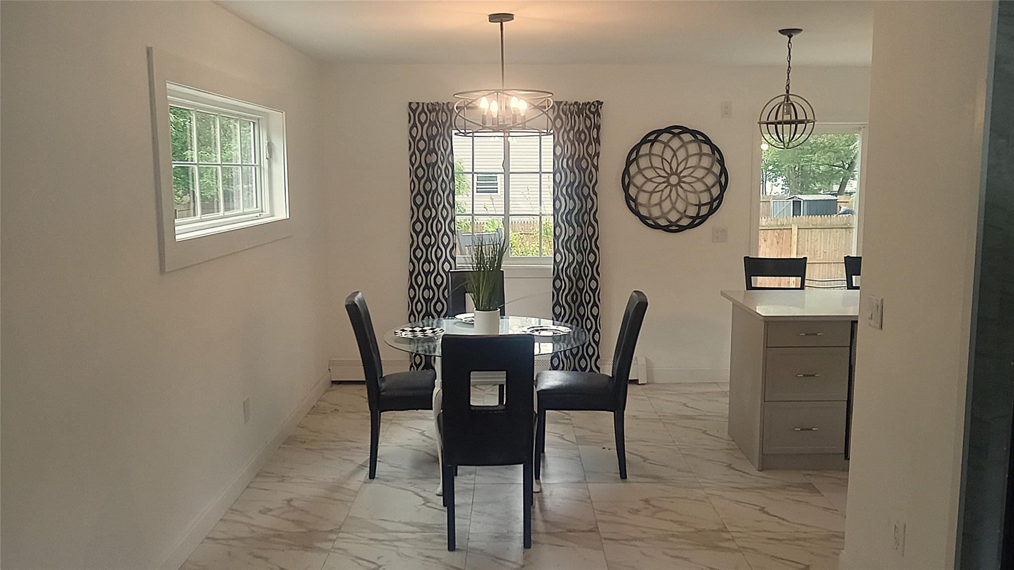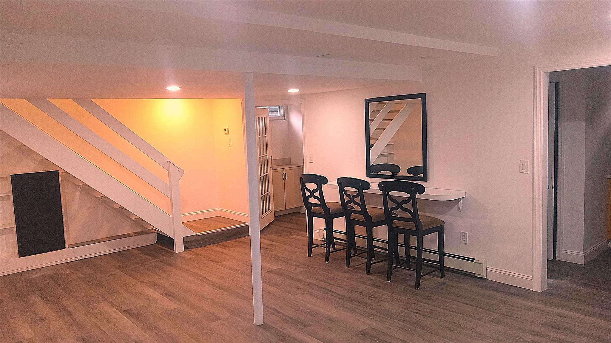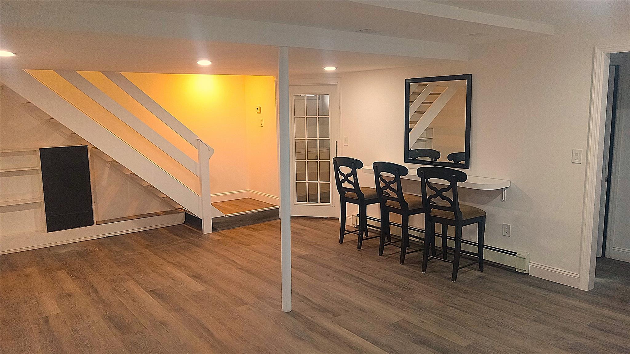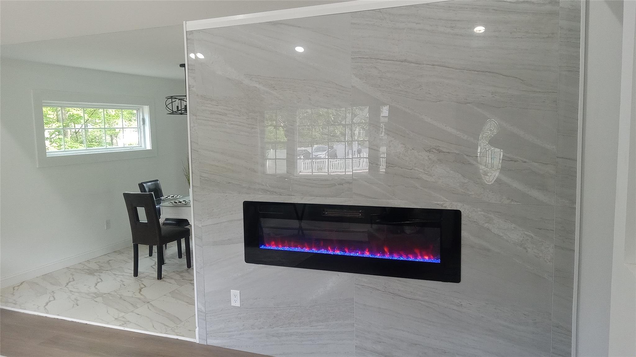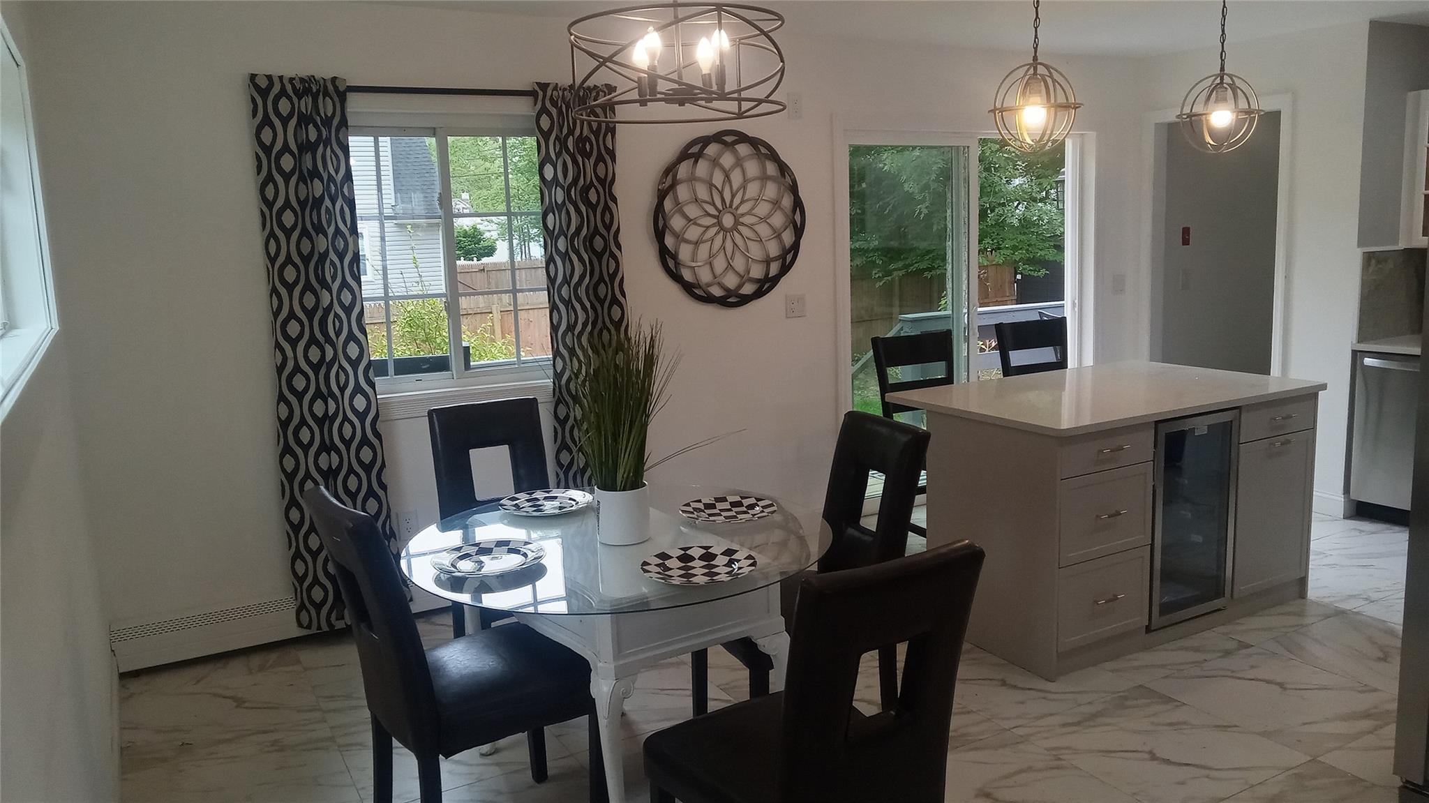 Beautiful light and bright 3 bedroom 1 full and One half bath. New roof new furnace/boiler new oil tank. Kitchen with center island with wine cooler new stainless steel appliances quartz countertops porcelain tile floor New Pella sliding door and loft style window. New porcelain tile bath. Living room with cathedral ceiling new recessed lighting and Marble wall with LED fireplace with heat with built in ac wall unit 12000 btu Full size basement with den LED fireplace with heat, Laundry room with new washer/dryer bar area with full size refrigerator also guest room and storage area.