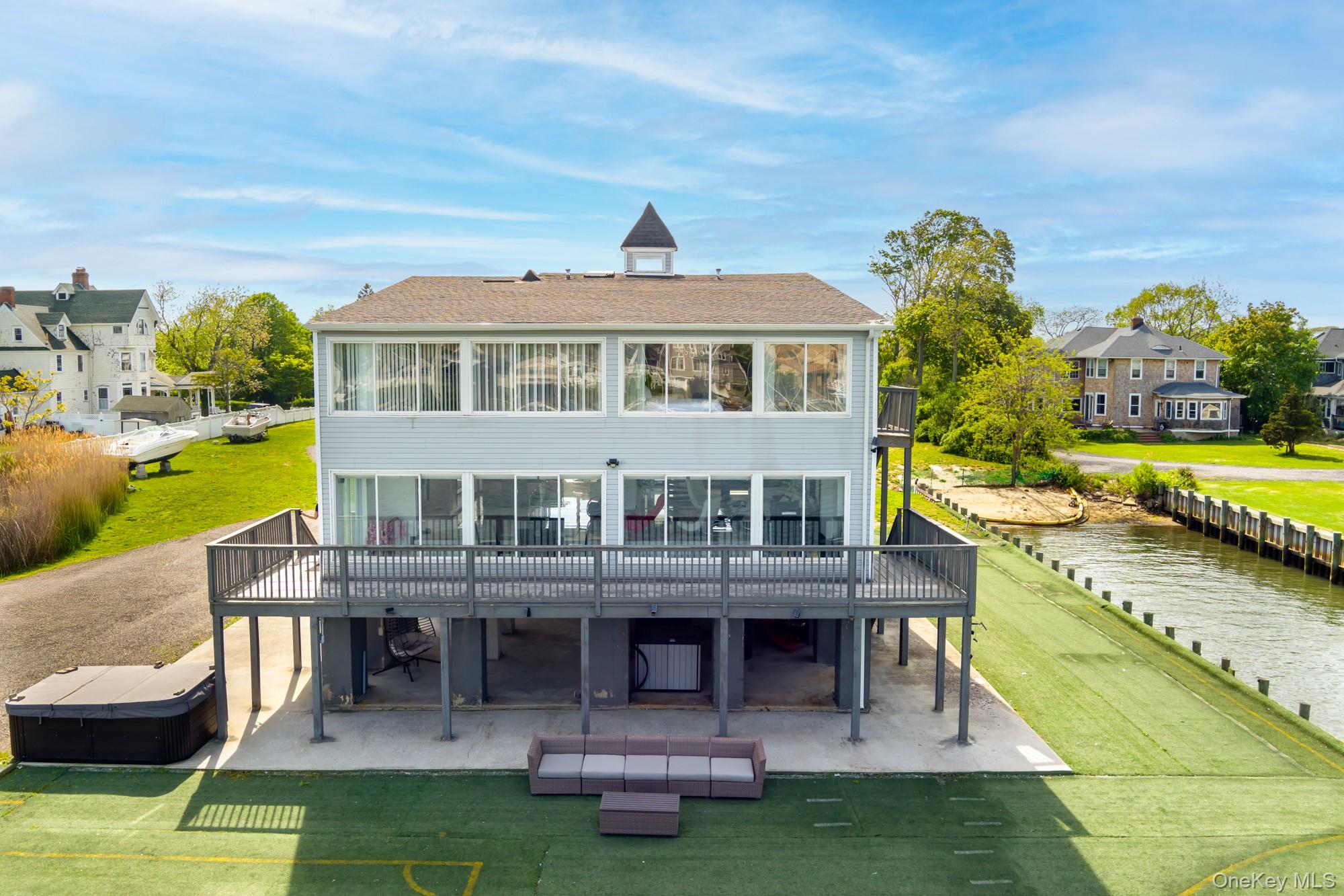Welcome to 200 Clocks, a rare waterfront opportunity offering 200 feet of bulkhead and boat slips on three sides, just minutes from Breezy Point Park and the open bay. Set on 1. 8 acres, this parcel includes a stunning 3, 710 sq ft modern luxury home and approved subdivision plans for two lots—ready to be finalized at buyer’s request, if desired. The 3-bedroom, 3. 5-bath home was raised and completely rebuilt in 2017 and is the ideal setup for year-round living, a summer getaway, full-season rental, or high-yield short-term rental investment. Each bedroom has its own private, spa-like bathroom, and the open-concept living space features a large kitchen island, solid-surface counters, and sleek tile floors throughout. The layout is perfect for entertaining, with areas staged as a game room, living room, dining space, and home gym—all with views of the canal and surrounding water. The home is fully furnished, move-in ready, and positioned to generate income immediately. Enjoy a boater's dream lifestyle with bulkhead and dockage, access to nearby yacht clubs, and the ability to boat or drive to waterfront dining. Whether you're an end user looking for a luxurious escape or an investor exploring income potential or development options, this is an unmatched opportunity. Purchase as one expansive estate or explore options to buy Lot A (home + 1. 02 acre) or Lot B (vacant . 66 acre).