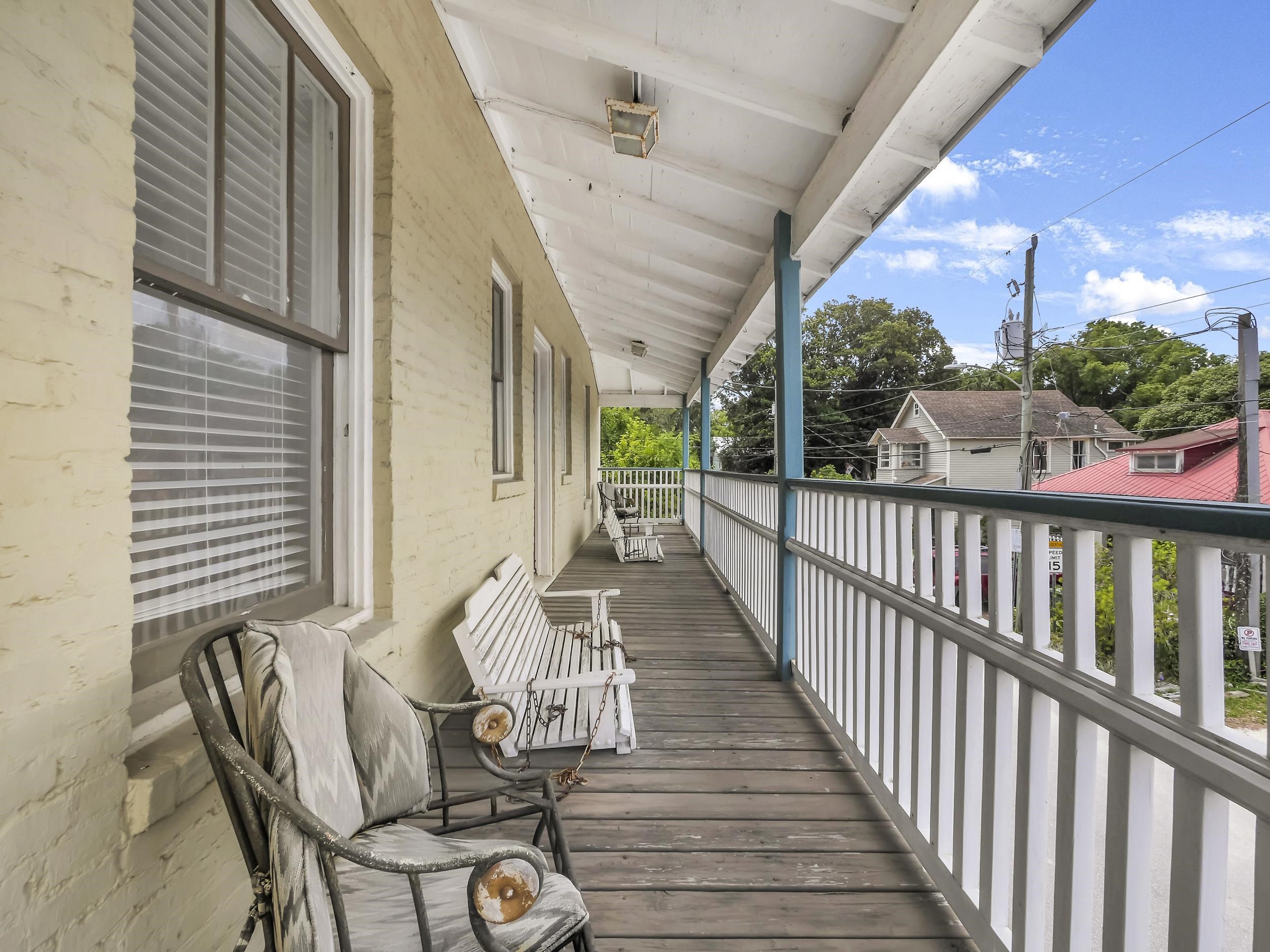 Unlock the potential of this distinctive CM-2 zoned property, offering a rare blend of charm, functionality, and flexibility in one of the most rapidly developing areas of historic St. Augustine. With 5, 746 square feet of space, this building is perfectly suited for a wide range of uses—whether you're envisioning a restaurant, café, boutique hotel or motel, retreat/recovery center, retail space, or something entirely unique. The 1st floor features a spacious layout ideal for offices, retail, or studio use, complete with a commercial-grade kitchen, ADA-compliant bathrooms, and rich architectural character including exposed brick walls and original windows. Upstairs, you’ll find 7 guest rooms, 2 full baths, and a thoughtfully designed multi-bathroom with 2 showers, 2 toilets, and 4 sinks, along with a full kitchen and a balcony overlooking Davis Street. Additional highlights include 2 private courtyards, 23 on-site parking spaces, and certified sprinkler fire suppression system. Located directly next to the vibrant West King Street corridor, surrounded by thriving local favorites like Muggsy’s Bar, BOG Brewery, Blue Hen Café, and Buena Onda Café, and many more. This is a rare opportunity to invest in a highly adaptable property in one of St. Augustine’s most exciting and fast-growing neighborhoods. Whether you're expanding a current business or launching a new concept, this space is ready to bring your vision to life.