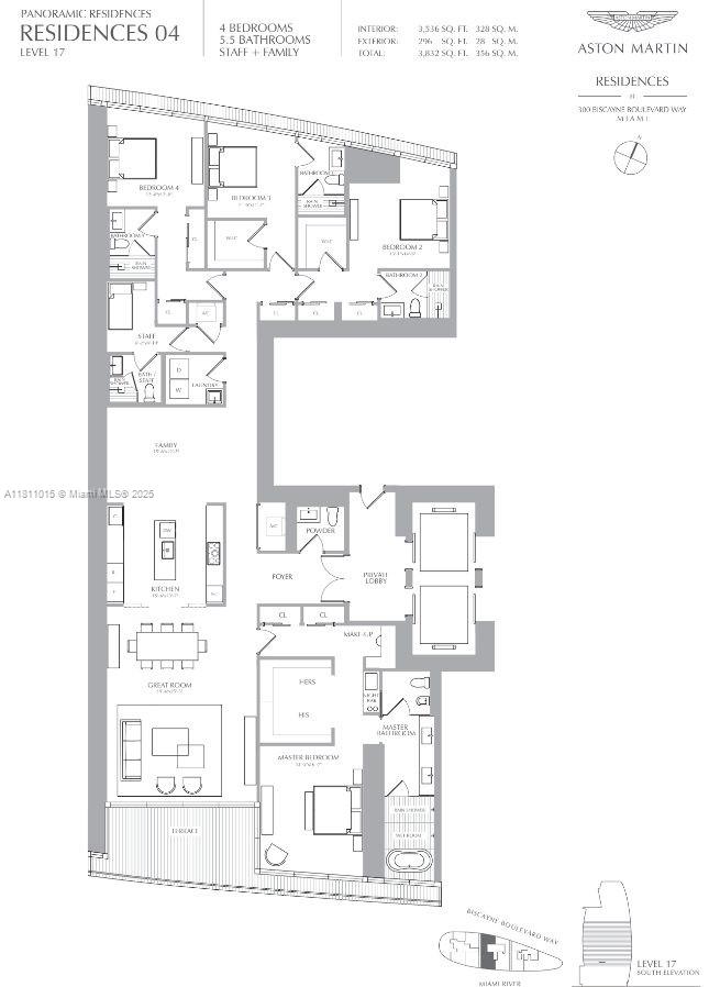 Pinnacle of elegance at Aston Martin Residences, where excellence meets high-end living. 4 Suites/Den/En suite Staff Quarters/powder room on 3, 225SF of refined interior space, floor-to-ceiling windows & breathtaking views of Biscayne Bay. Interiors adorned w/ Thassos marble flooring, gourmet kitchen w/ Bulthaup cabinetry, Gaggenau appliances & a layout that combines flow, light, & function. 43, 000SF of world-class amenities including a marina w/ dockage, Sky-level infinity pool, Spa, indoor pool, gym, 2 movie theaters, virtual golf, art gallery, kids’ & teens’ room. Designed w/ Aston Martin’s iconic style, this location offers a blend of urban convenience & waterfront luxury, an unparalleled lifestyle in Miami’s most exclusive new address. Pics are virtually designed by UNA Home Design